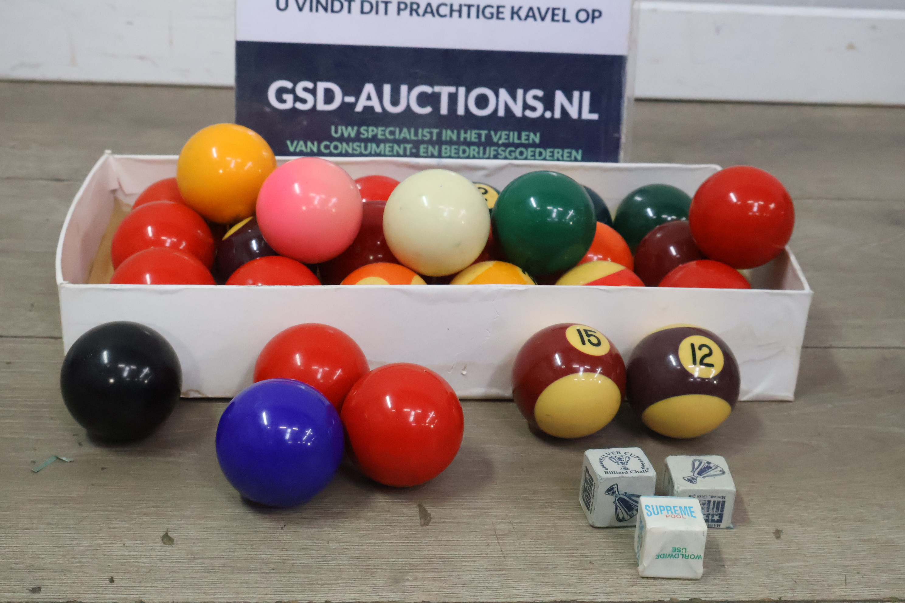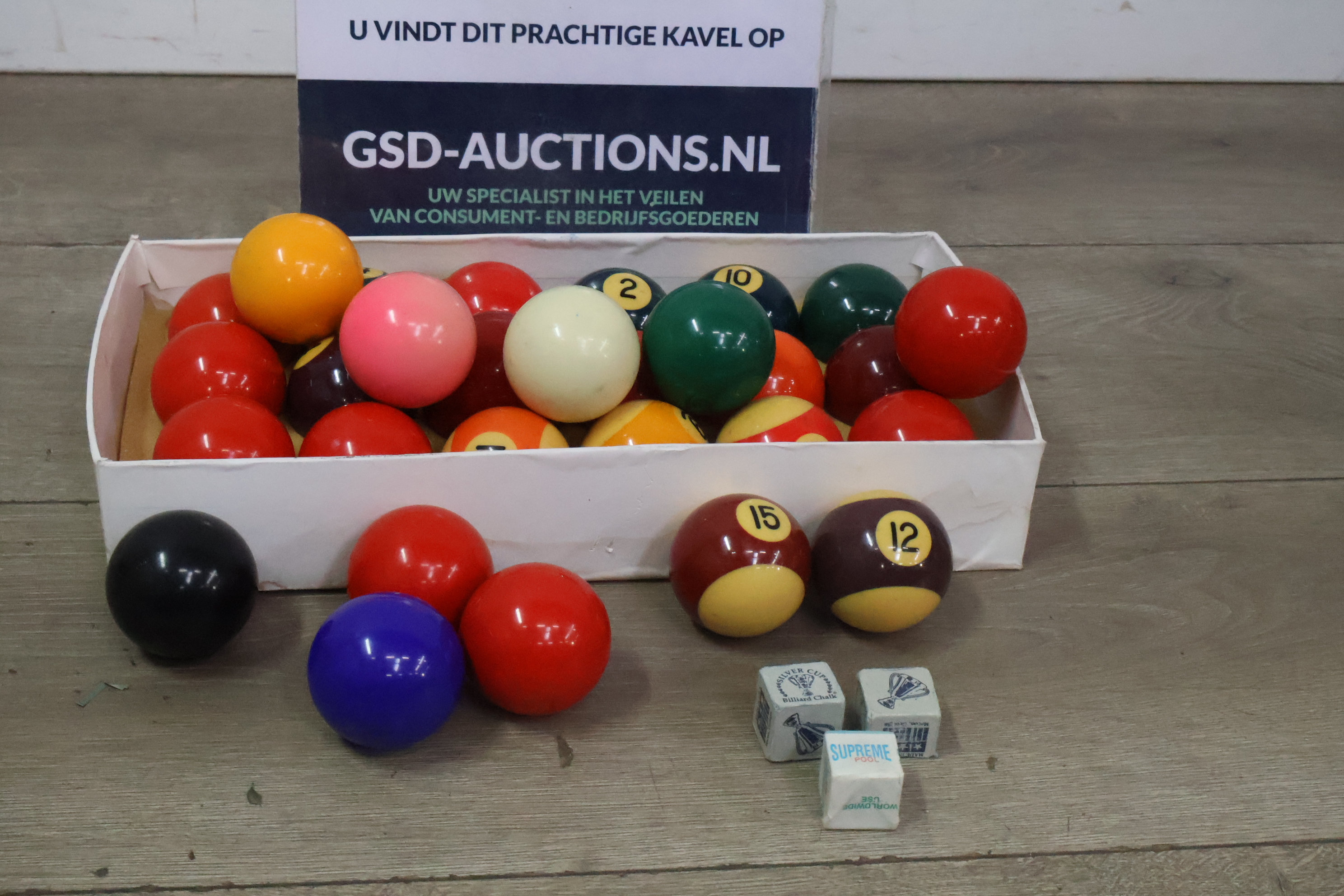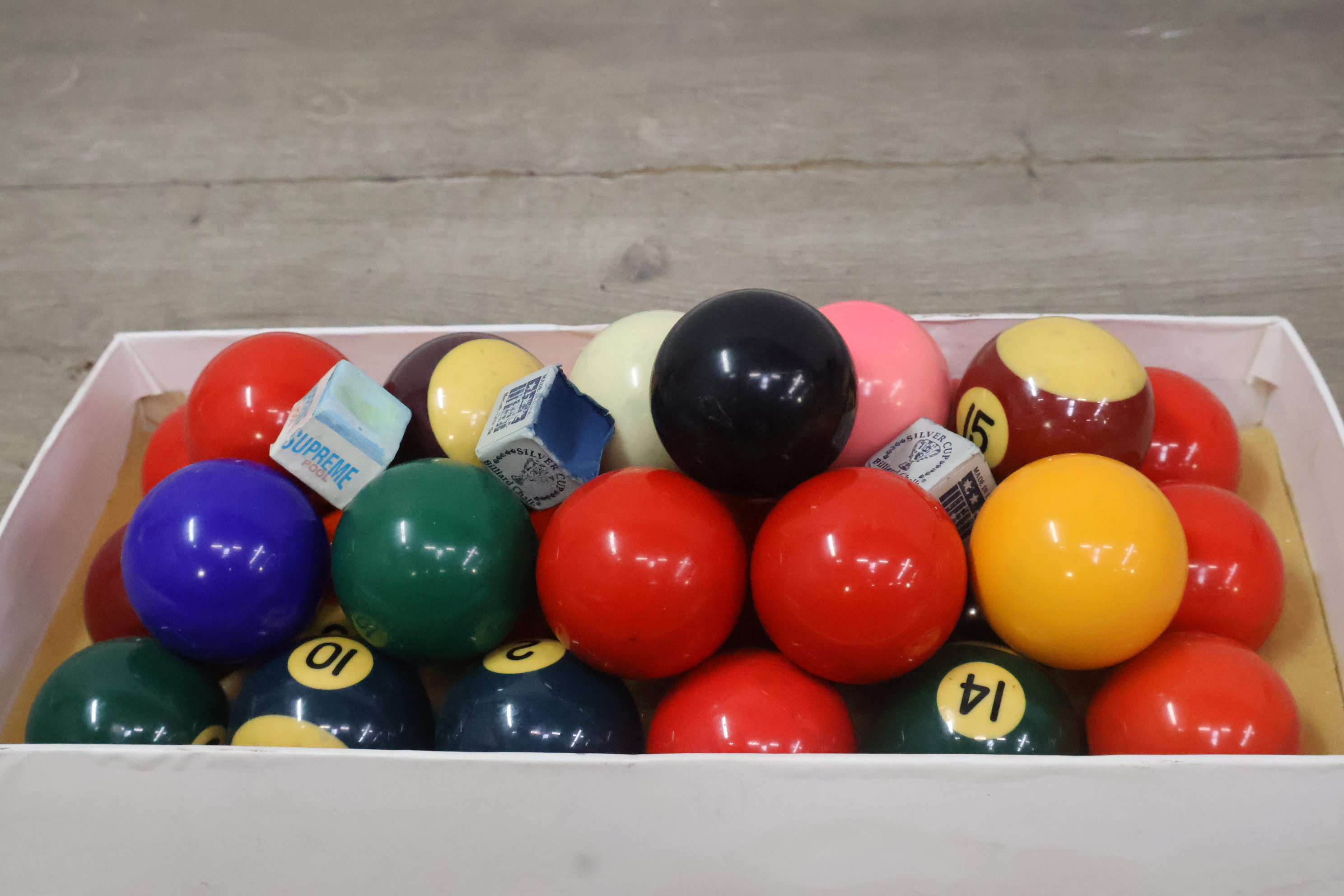 Biljartballen 29 stuks met krijtjes 3 stuks