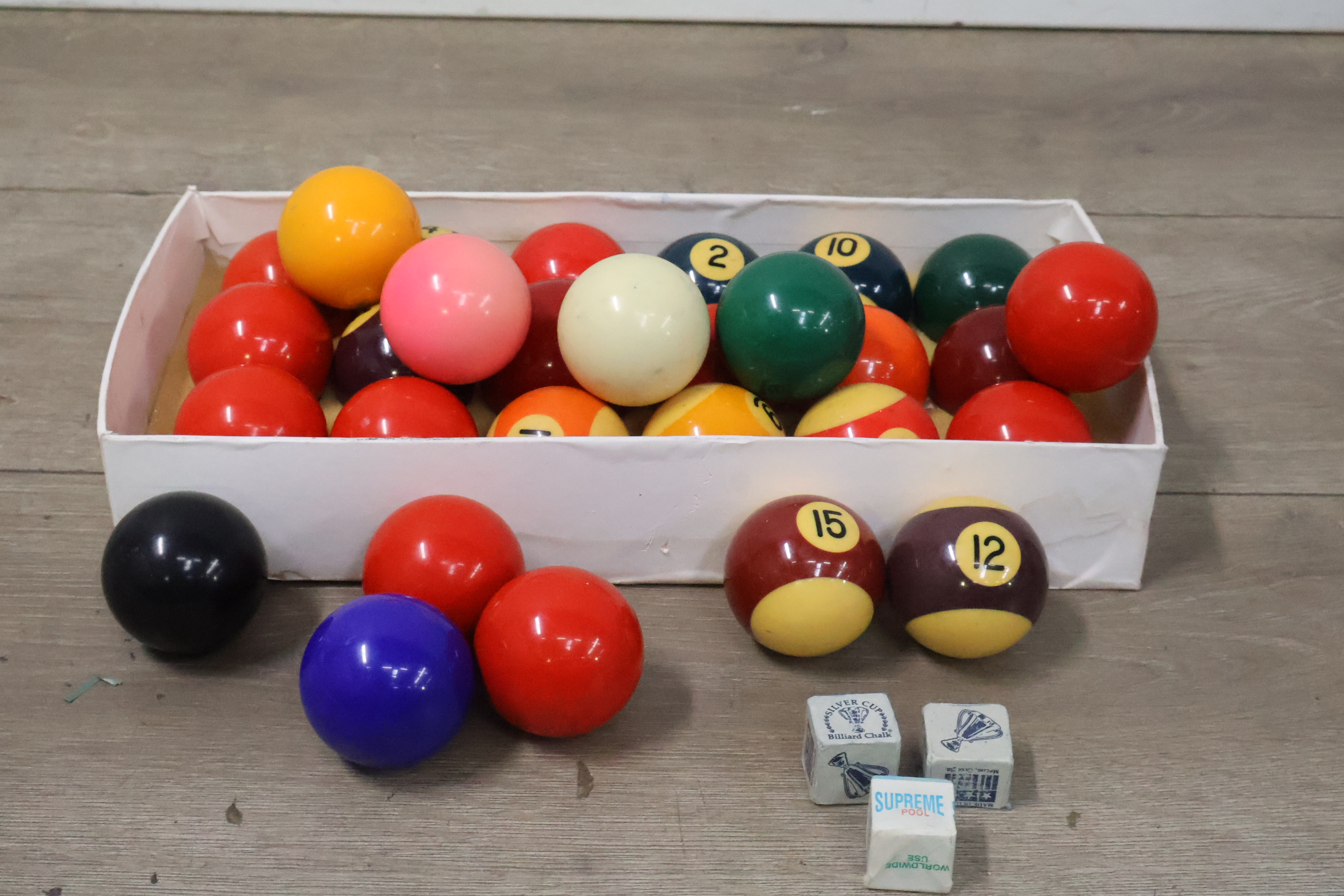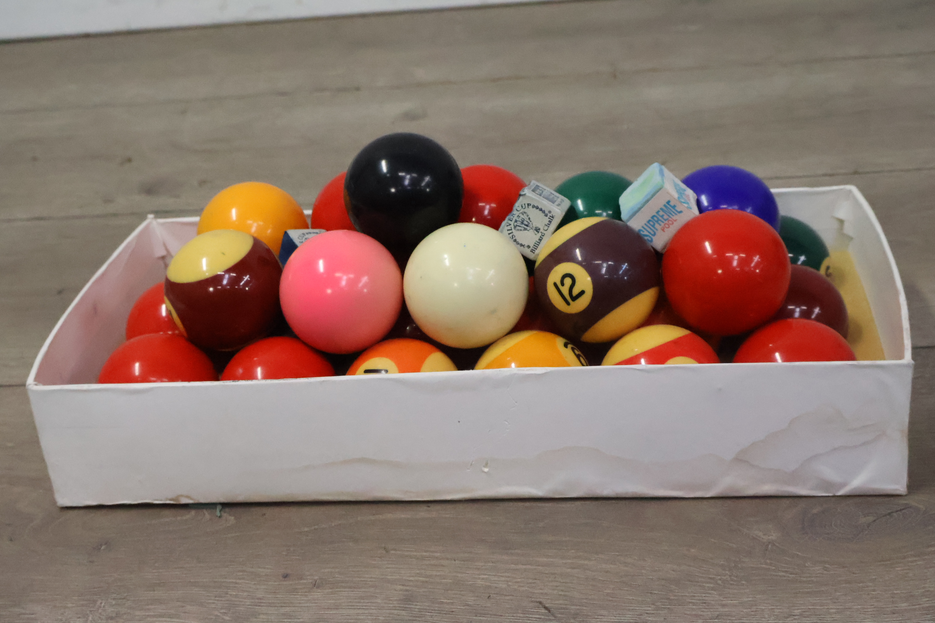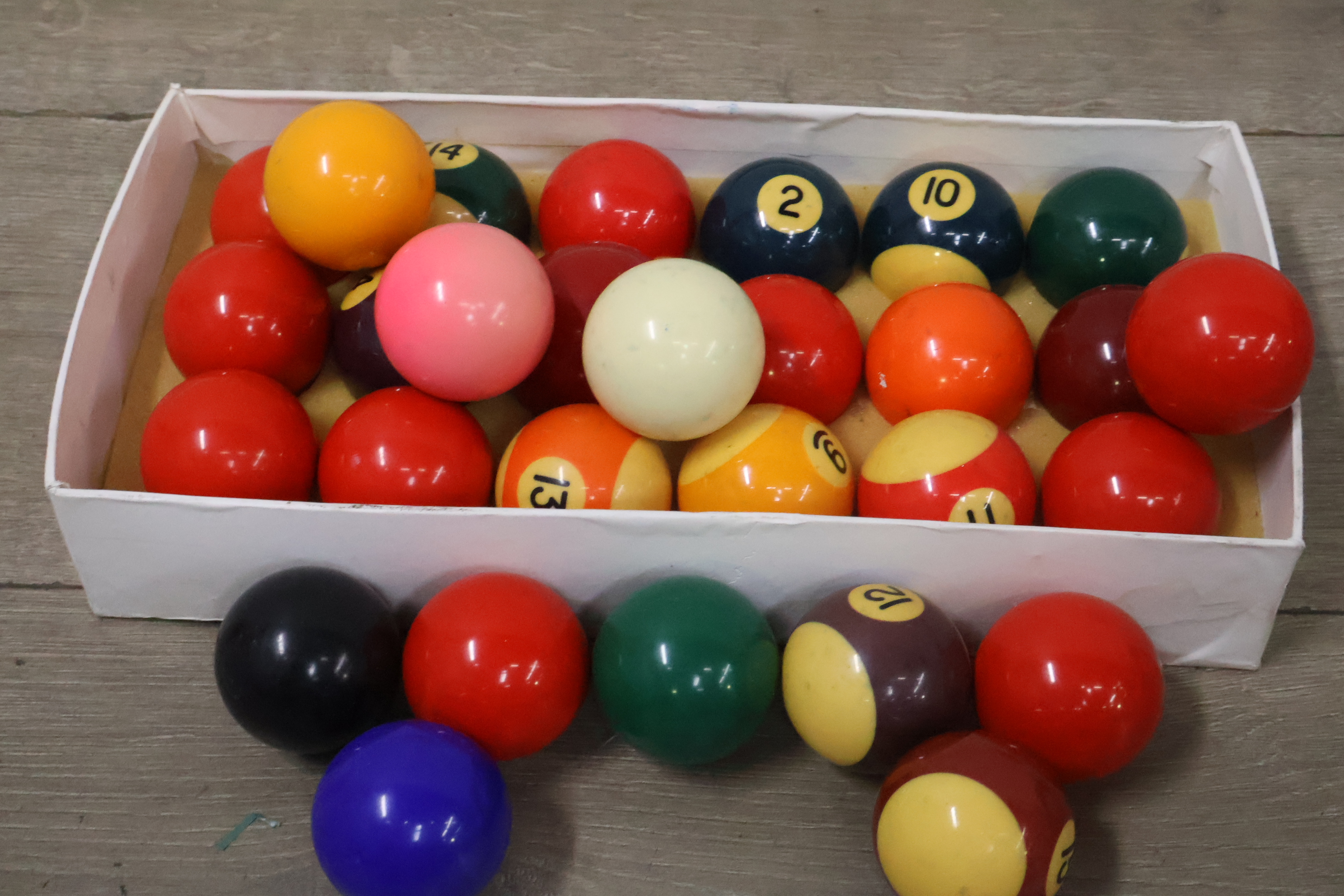 Biljartballen 29 stuks met krijtjes 3 stuks