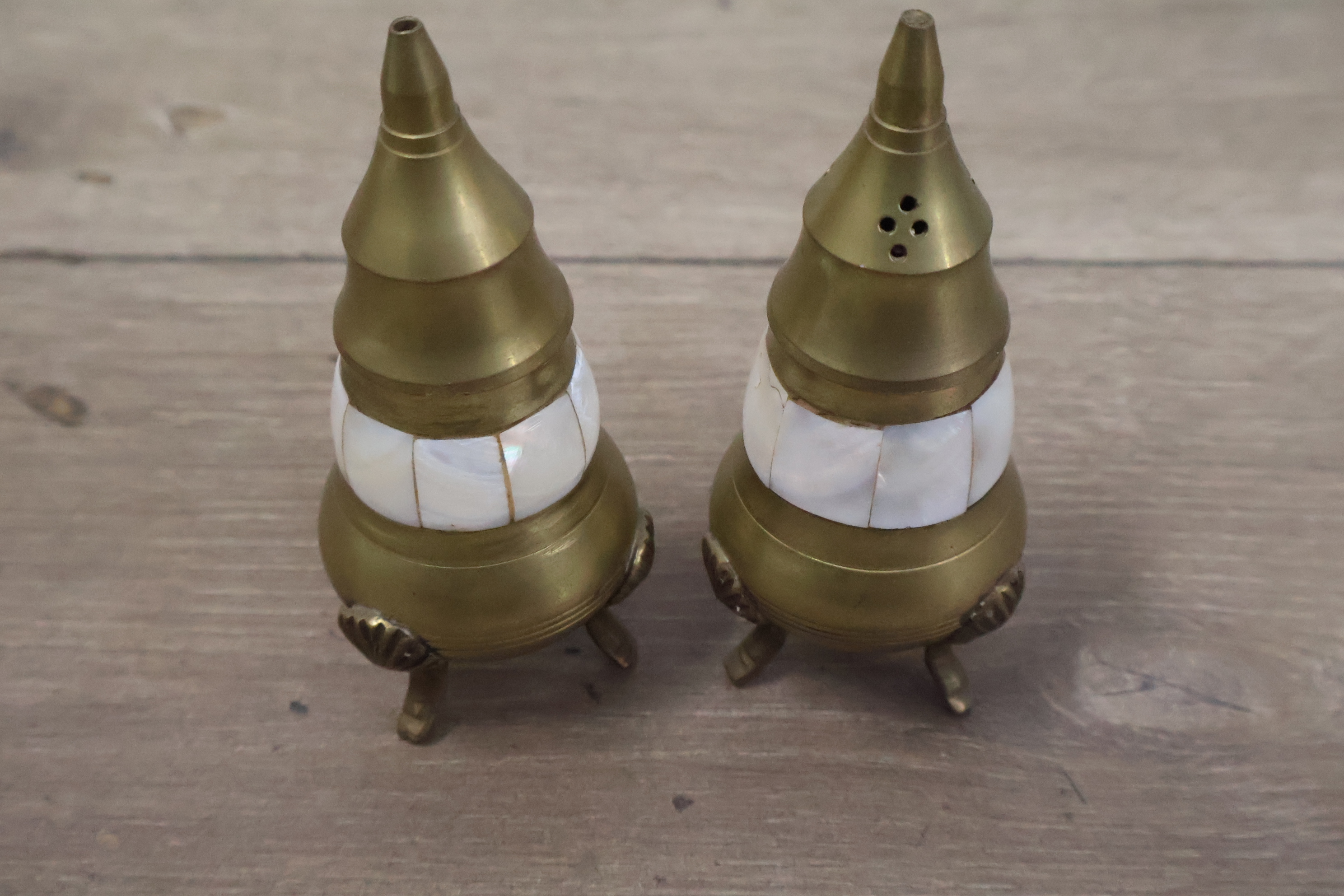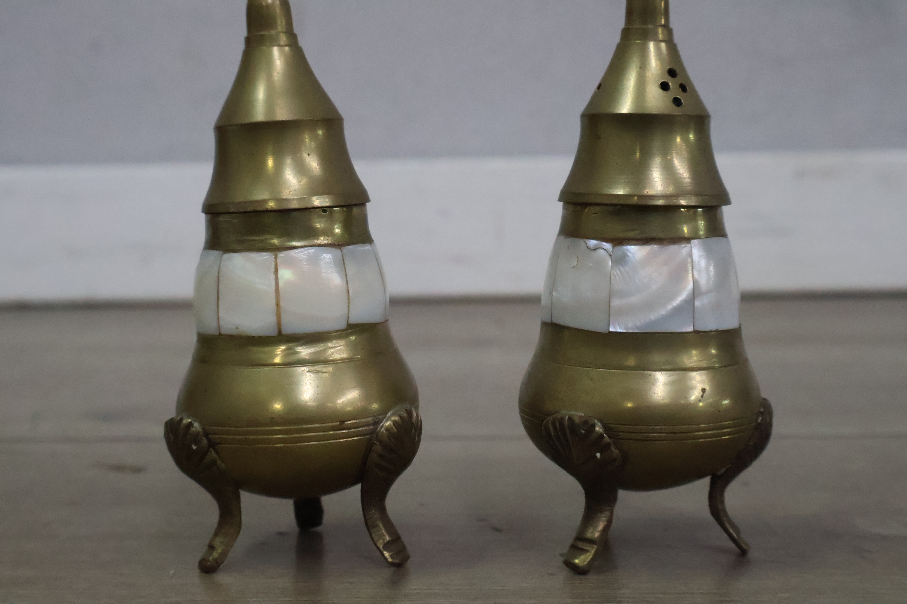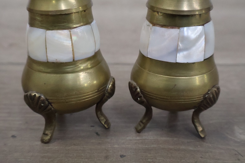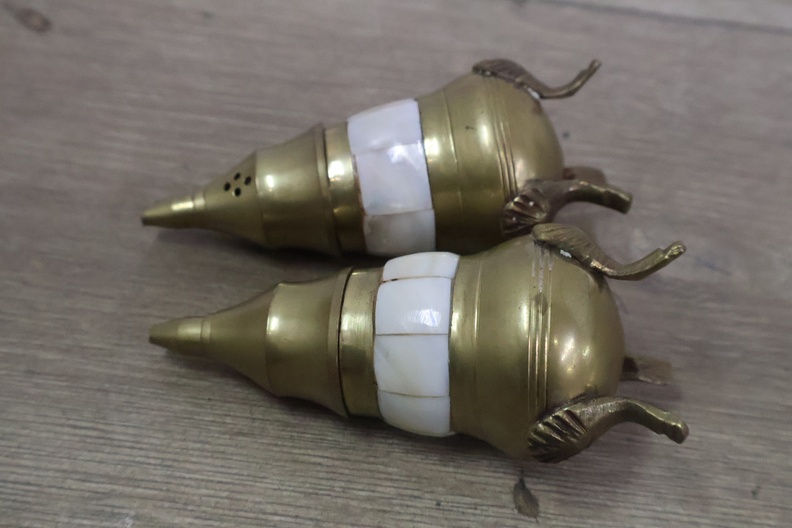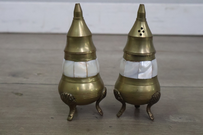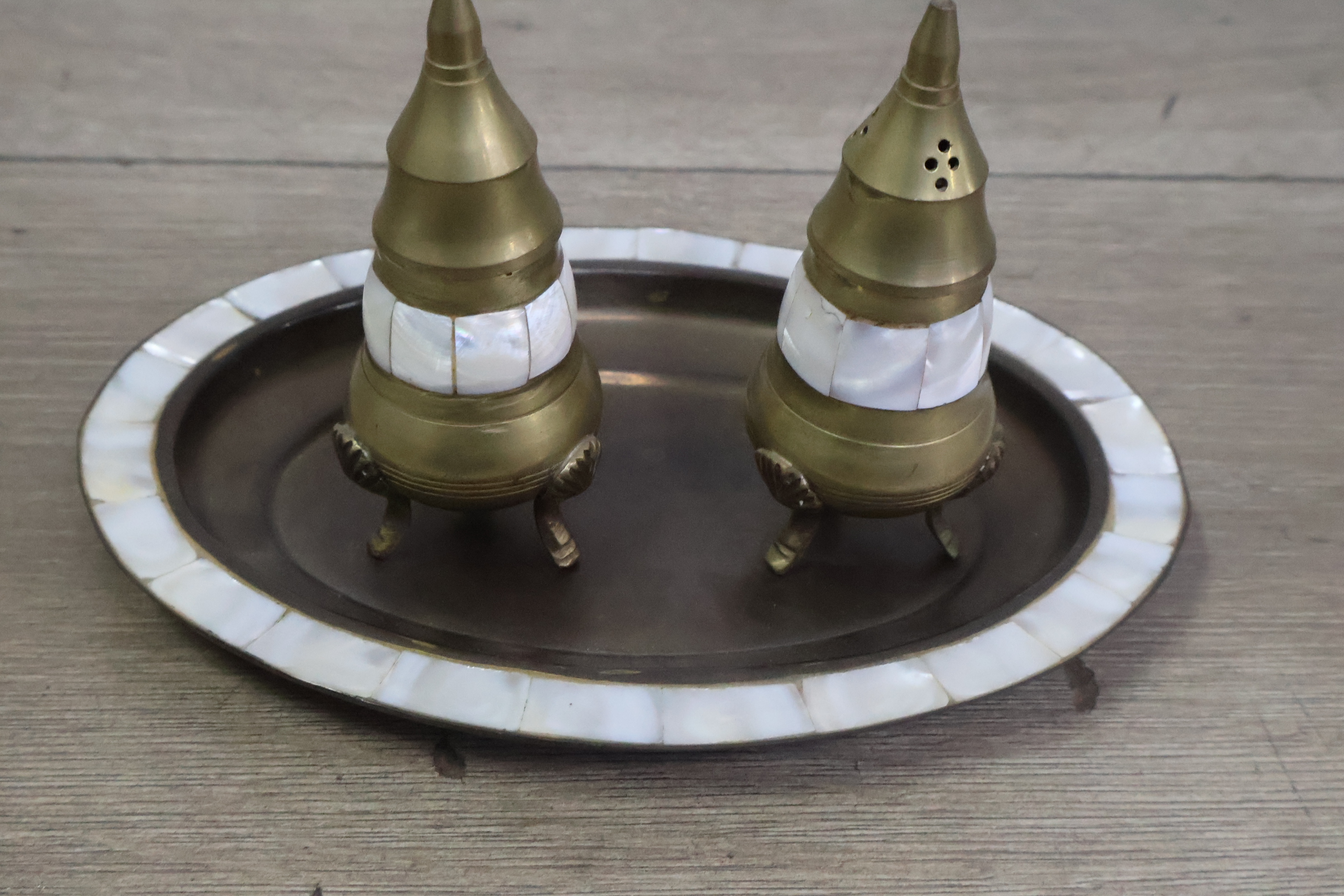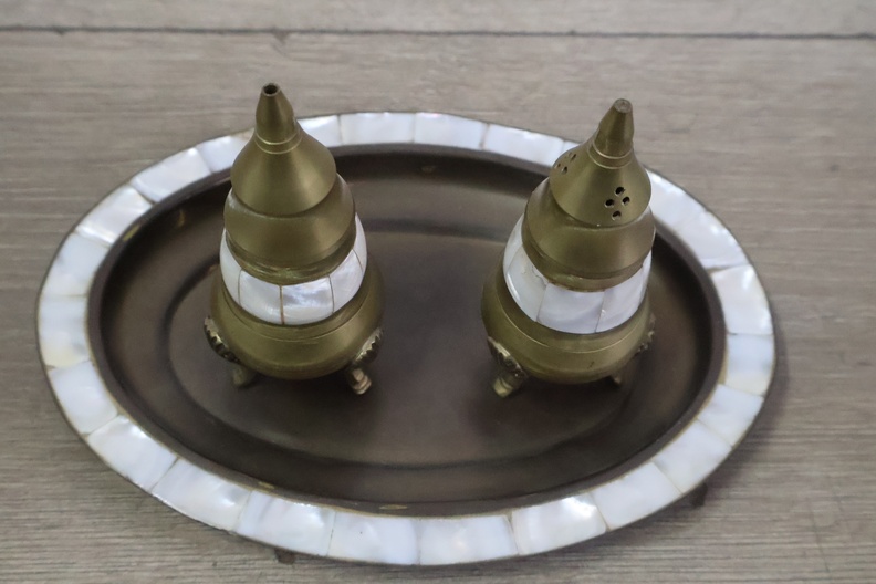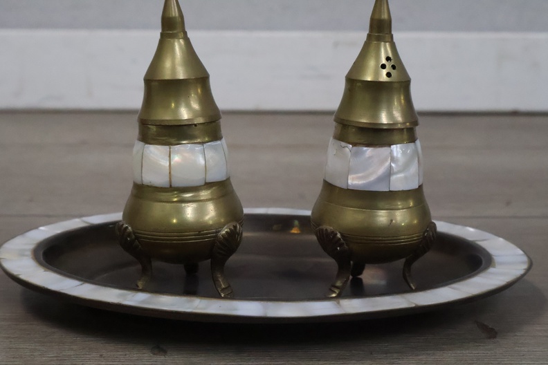Vintage peper en zoutvaatjes op een dienblad