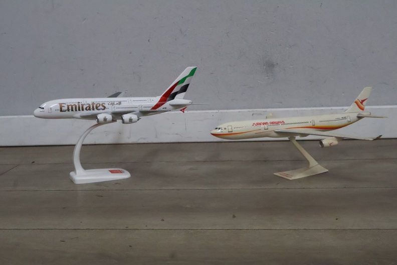 Vliegtuigmodellen van Emirates en Surinam Airways