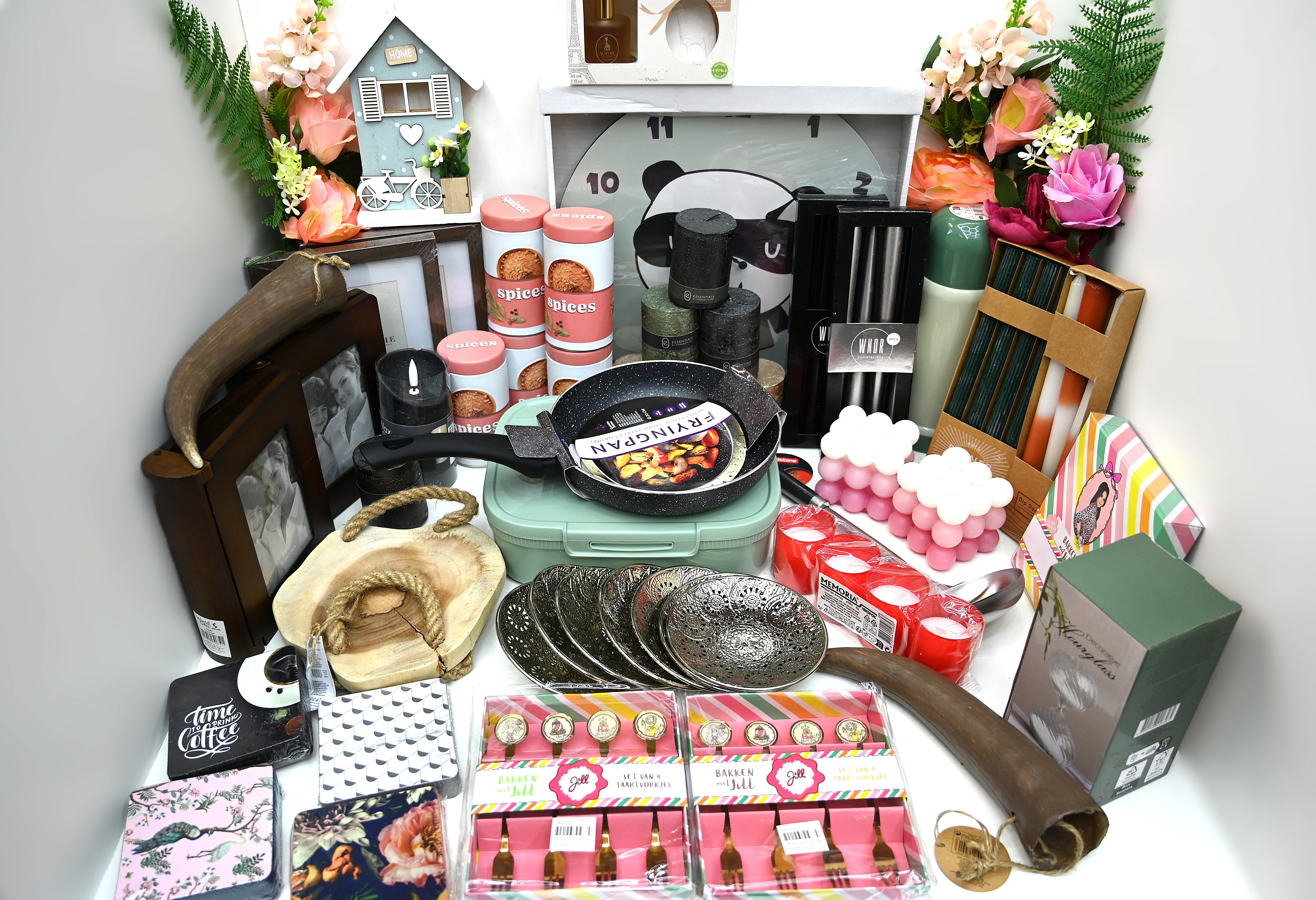 Mix-doos “Wonen” -Decoratie -Kaarsen -Keuken -Badkamer -Kleden -Servies -Nep planten en meer Dit is een impressie van wat er in de mix in de dozen zit, elke doos is anders.