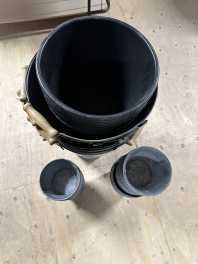244. Zinken emmertjes en plastic potten