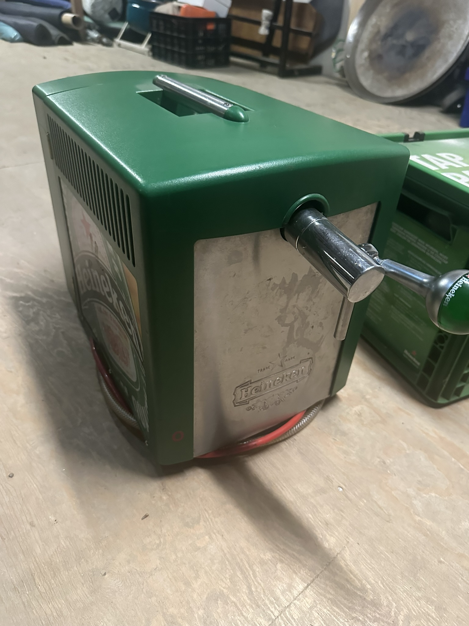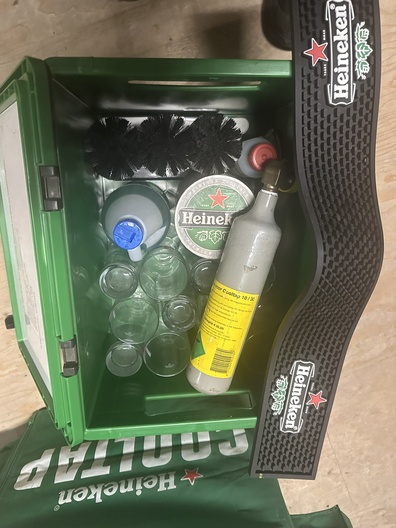 Een defecte Heineken tafeltap met toebehoren zoals glazen en viltjes. Probleem is onbekend.