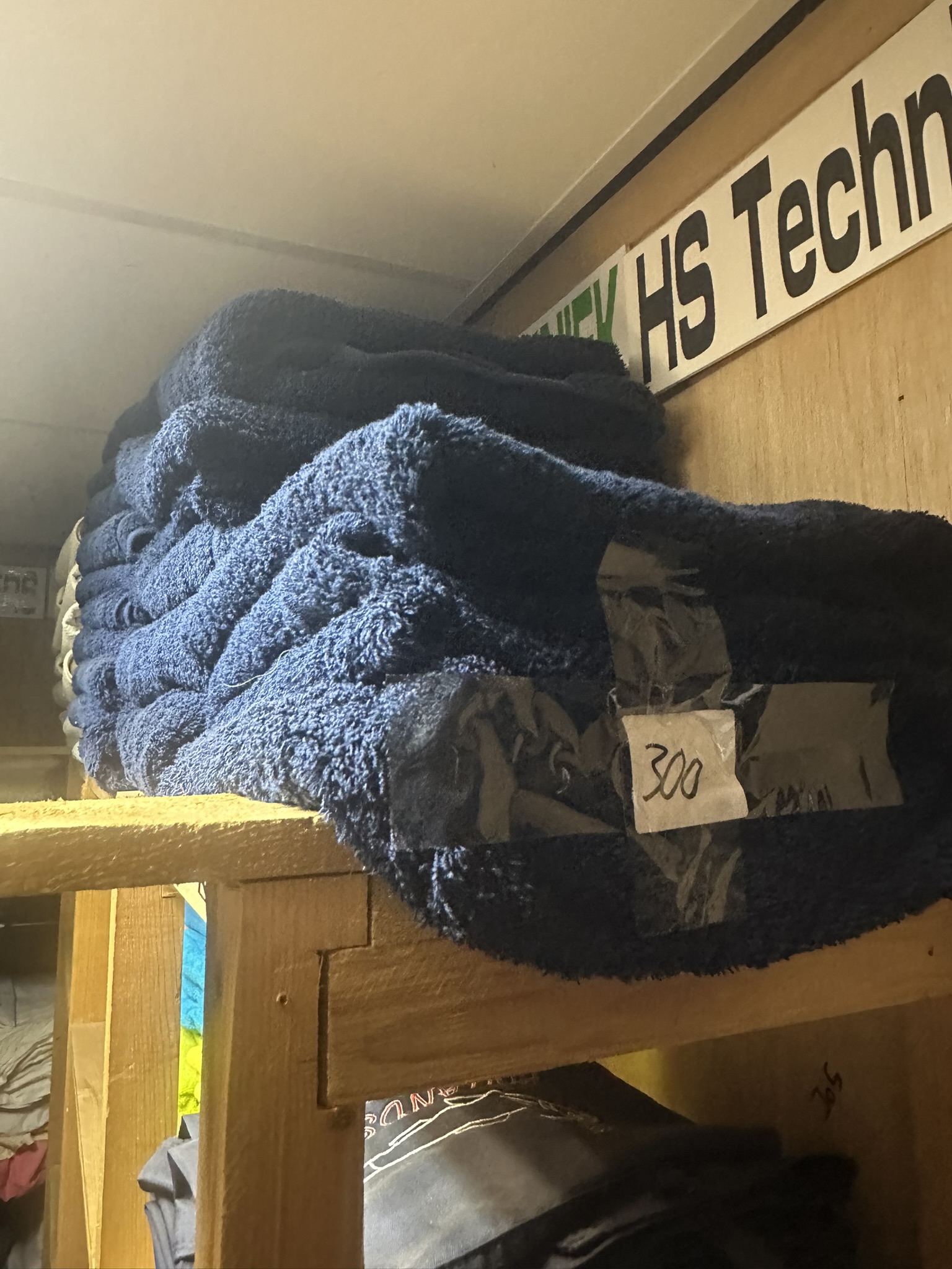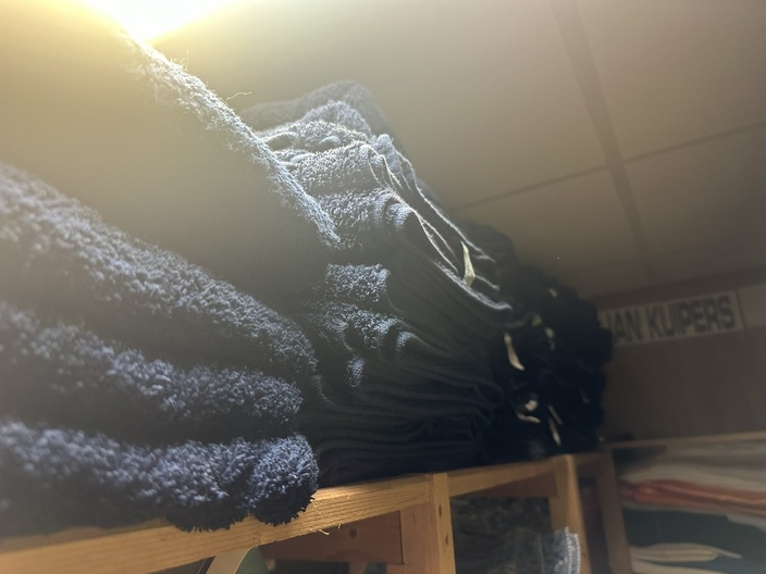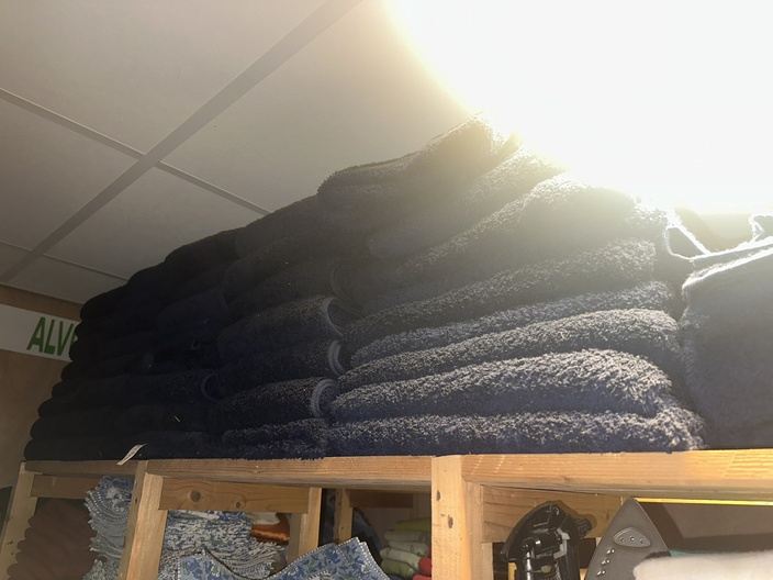 Ongeveer 30 donkerblauwe handdoeken