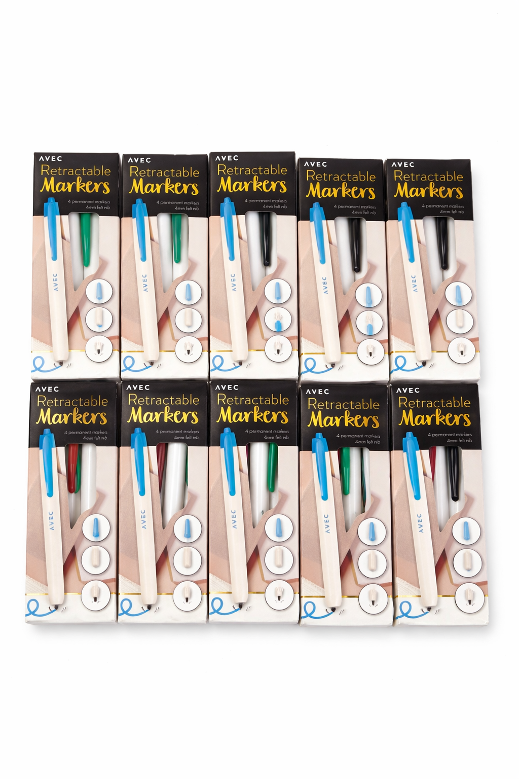 10x AVEC Retractable Markers – Permanente Markers