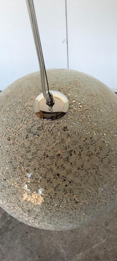 Mozaïek bal 40 cm dia, met kleine stukjes glas ingelegd, 1 x 27 max 40w, hoogte 40cm……130cm.