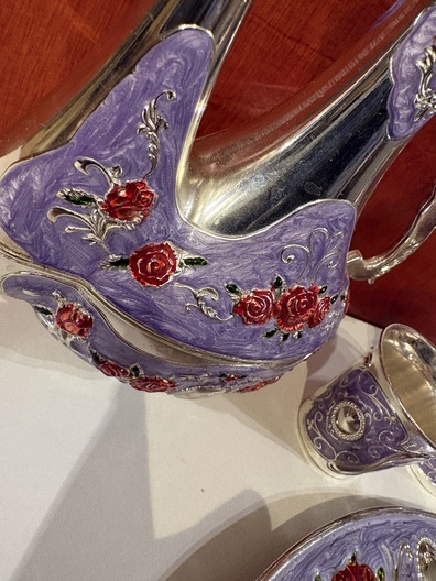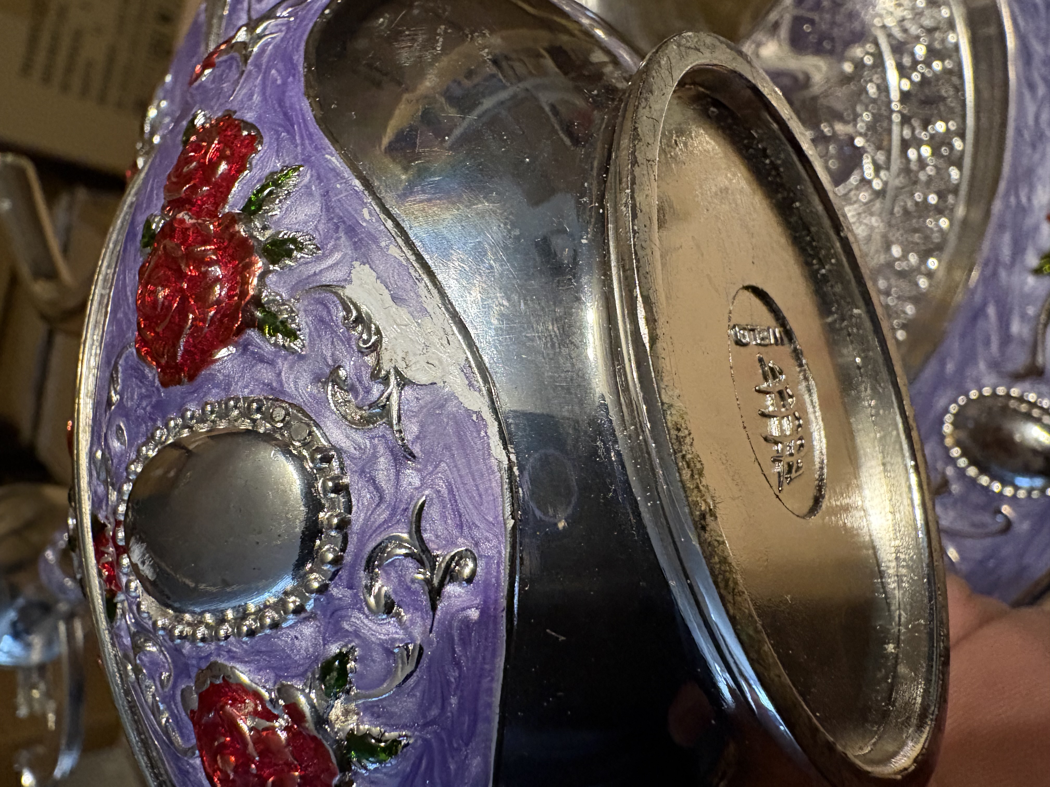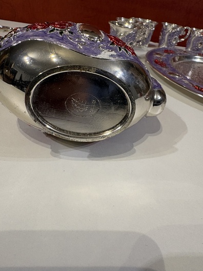 Afgewerkt met zilver en emaille ook verf