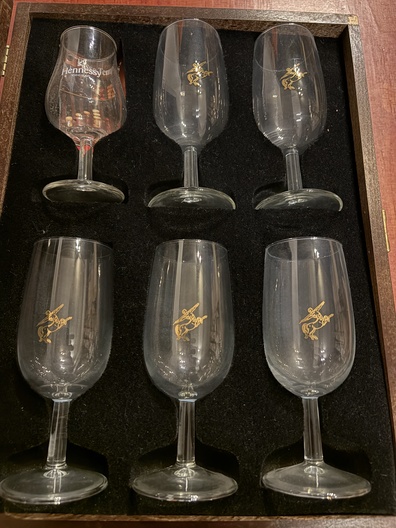 Remy Martin doos met 5 glazen en 1 Hennessy glas
