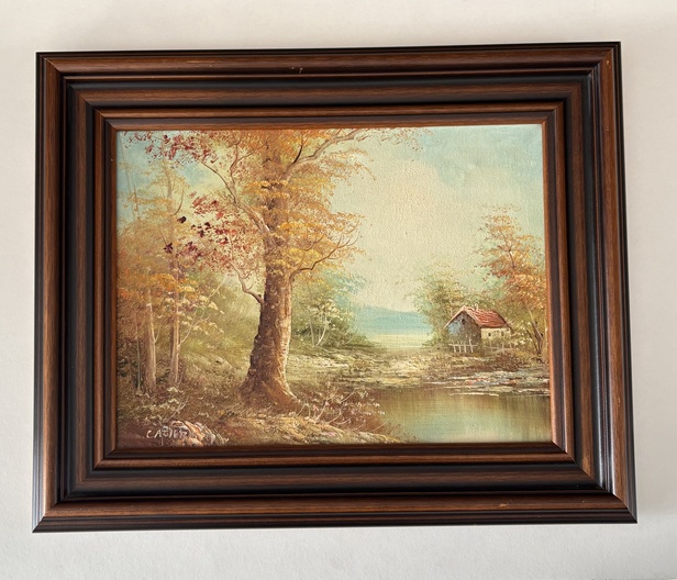 Olieverf schilderij Rivierlandschap van J.Carter