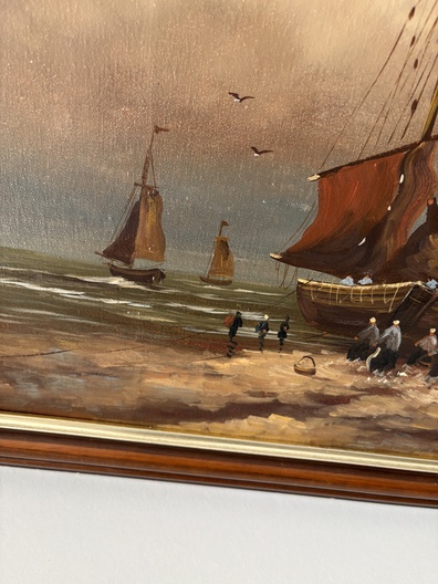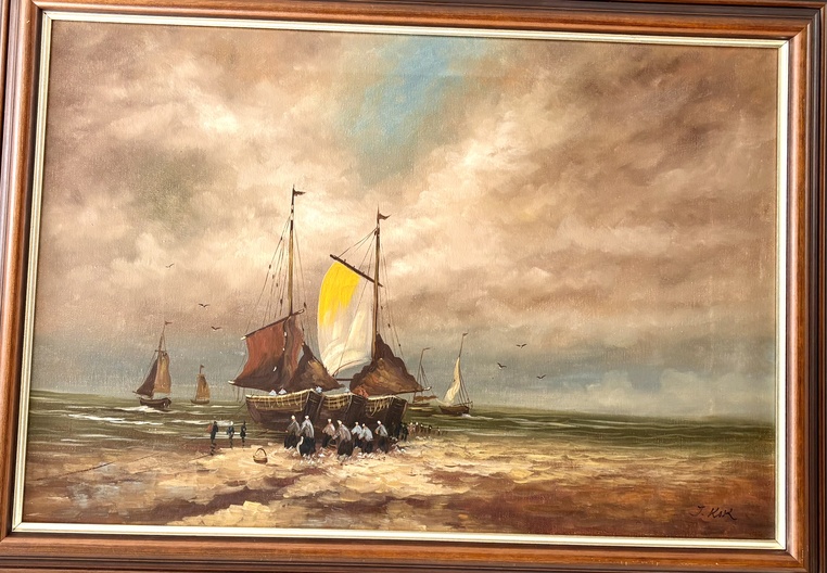 Zeegezicht met vissersboten" gesignaleerd J.Kok