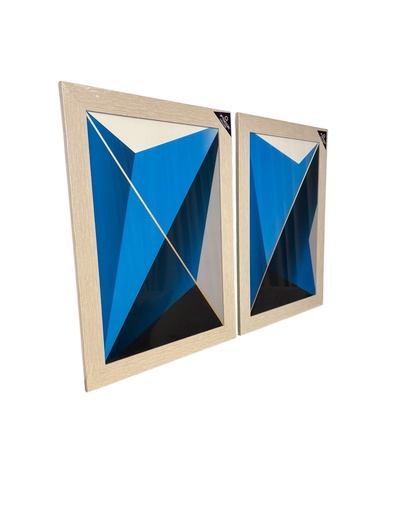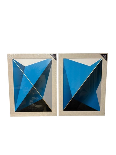 Blauwe geometrische schilderij modern in lijst