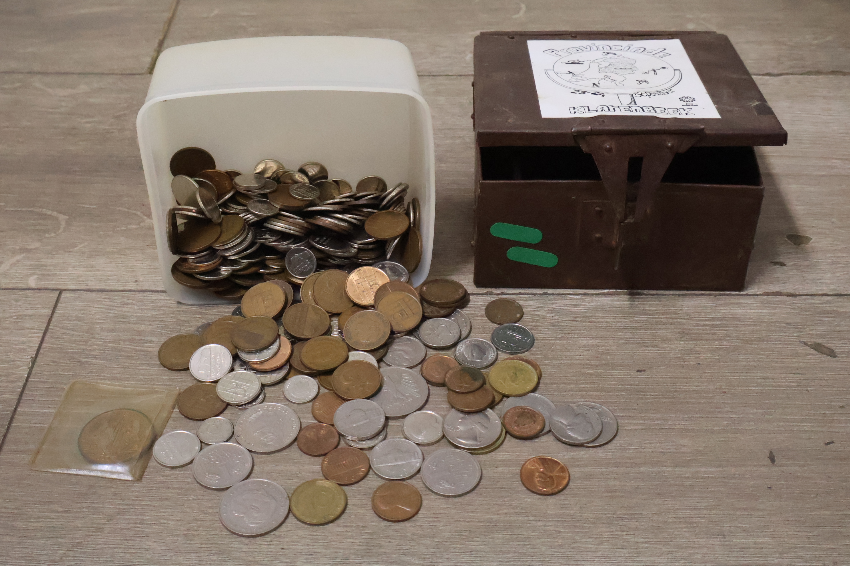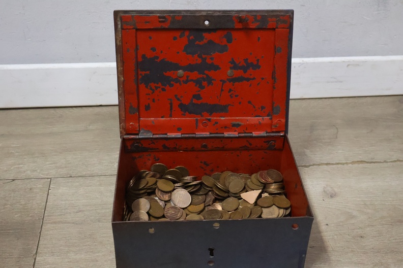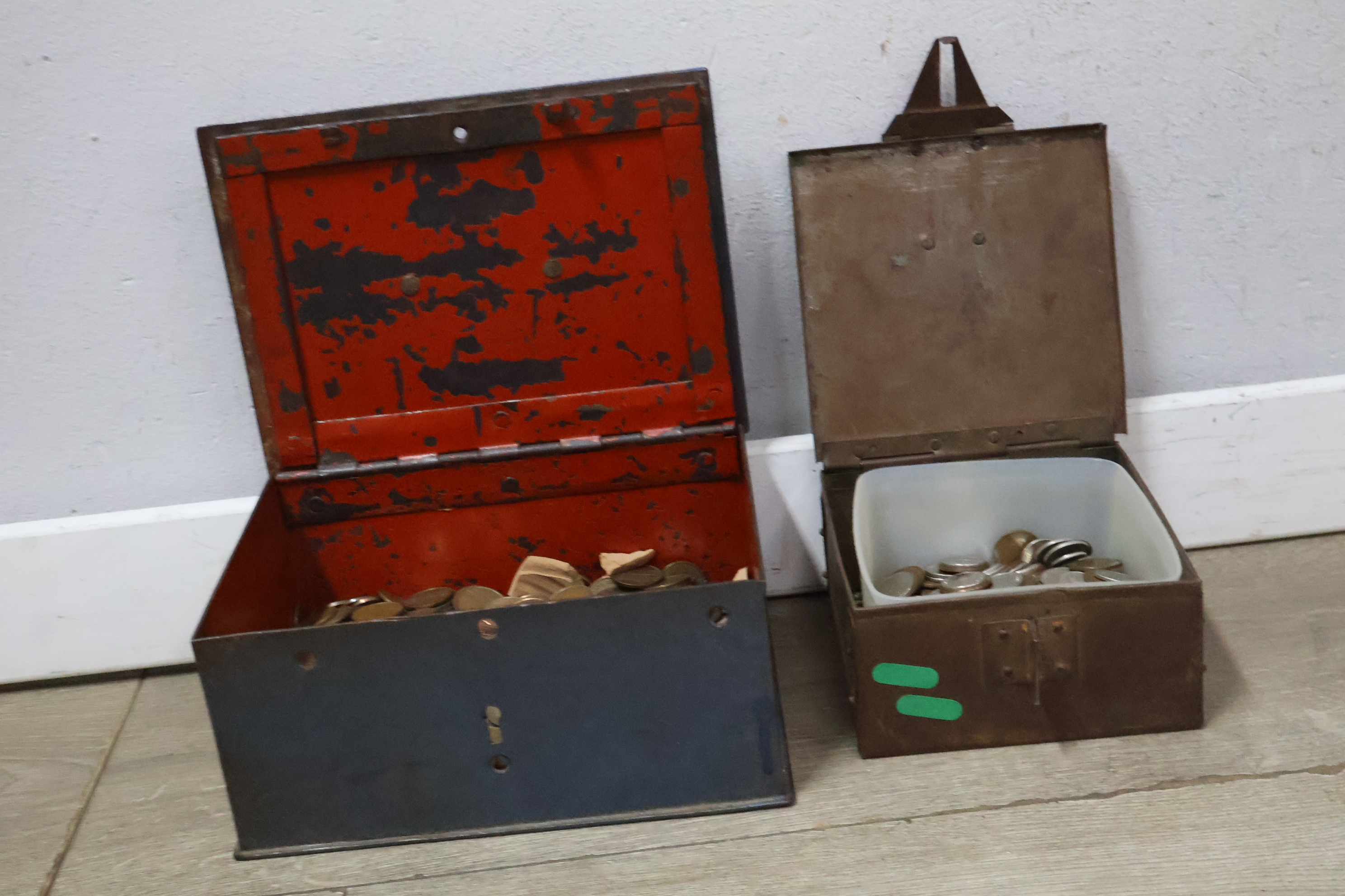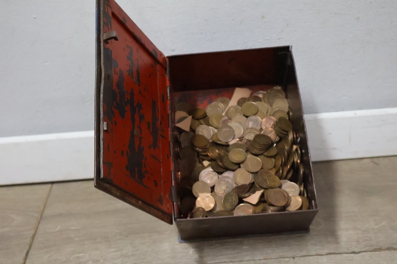 Metalen geldkistjes 2 stuks met oude munten