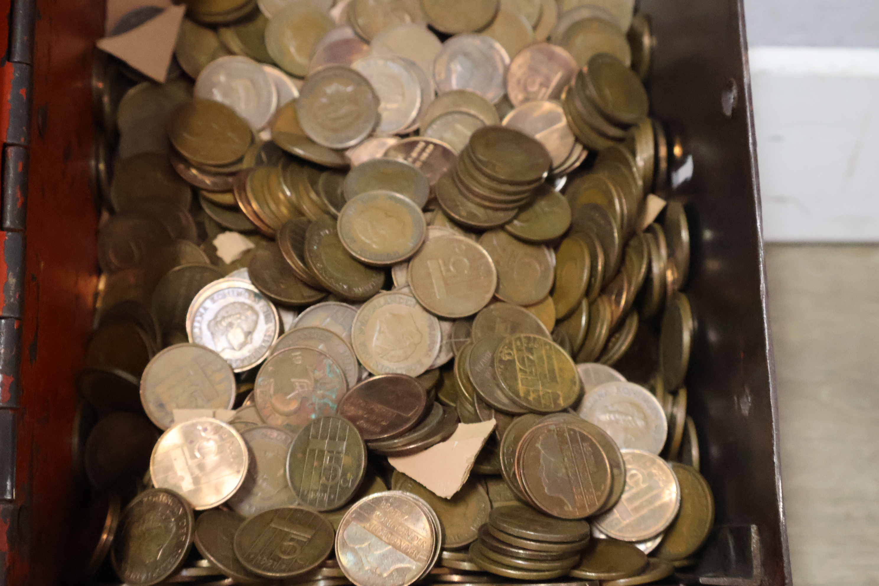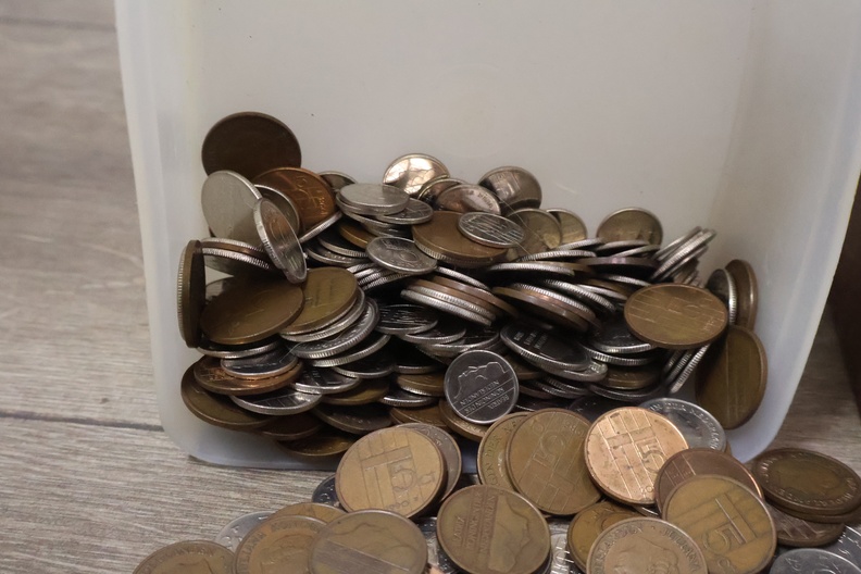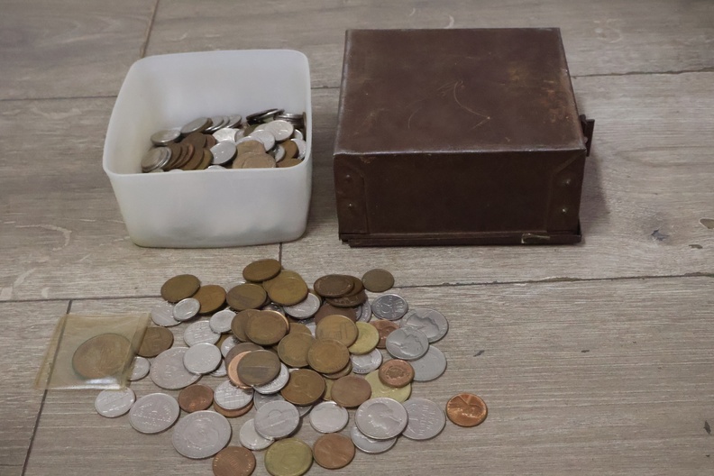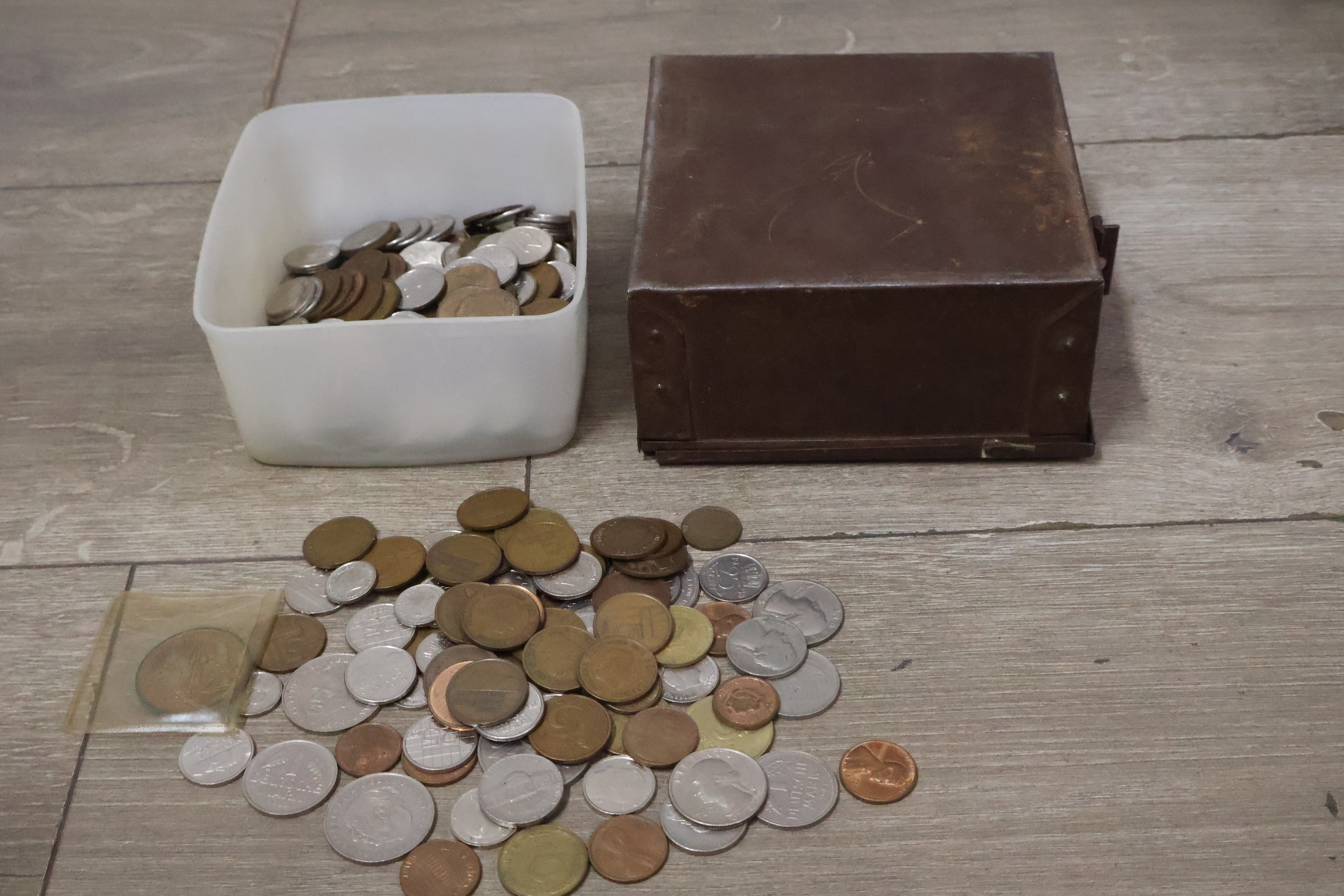 Metalen geldkistjes 2 stuks met oude munten
