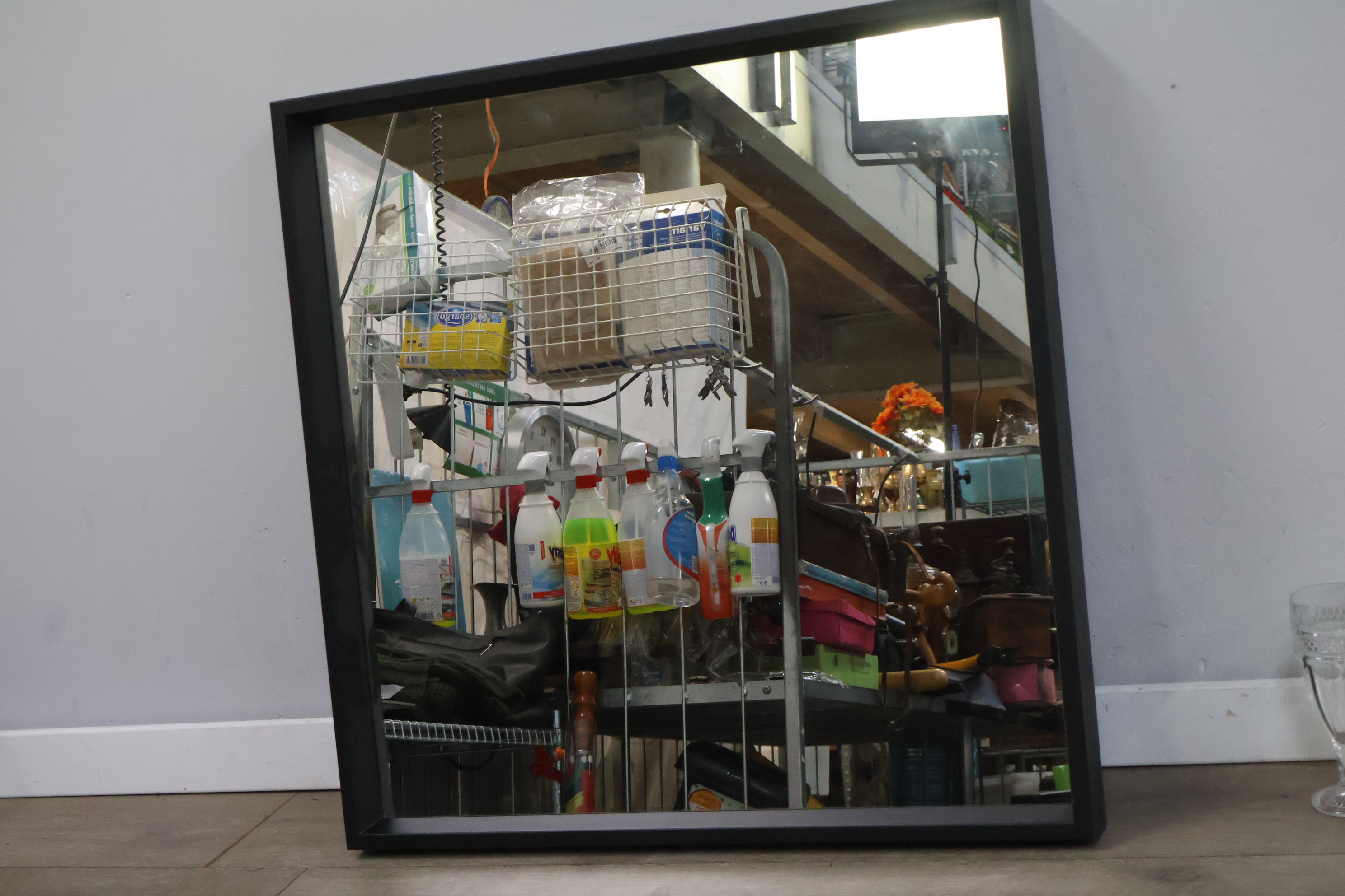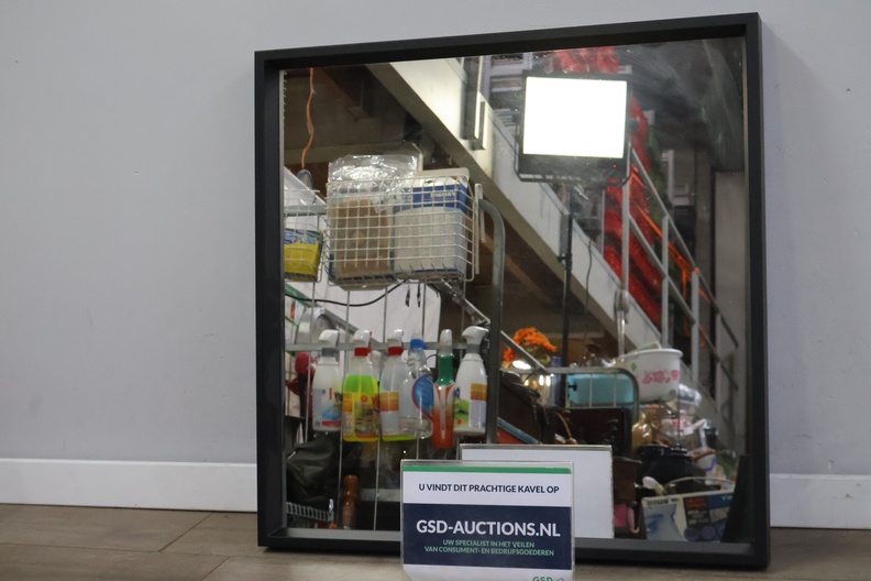 Vierkanten wandspiegel met zwarte lijst