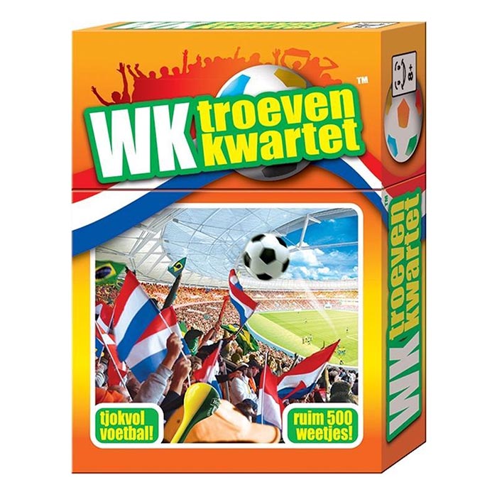 Het WK Troevenkwartet is niet alleen een leuk kwartetspel over de 32 landen die aan het WK voetbal 2014 deelnemen. Het is tevens een troevenspel, waarbij je elkaar met de voetbalfeiten op de kaarten probeert af te troeven. En daarmee is het meer dan alleen een spel, maar dus ook een uniek overzicht van het WK met een schat aan voetbalweetjes.