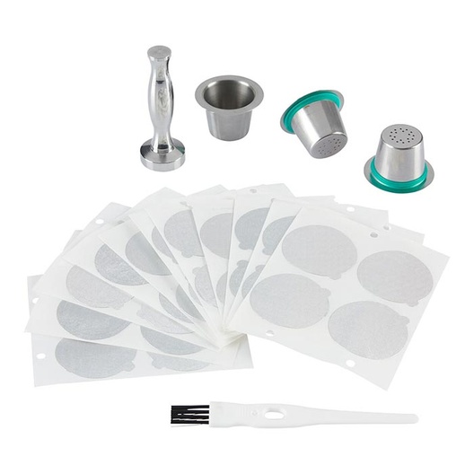 Met deze herbruikbare koffiecapsule kunt u ook koffie zetten voor uw partner of bezoekers, geheel naar hun eigen smaak en gewenste sterkte. Doe de koffie in de capsule, druk deze aan met de stamper en sluit de capsule af met het zelfklevende aluminium deksel.