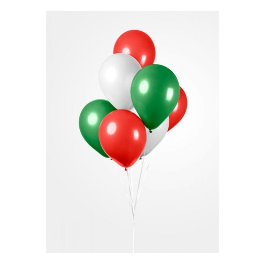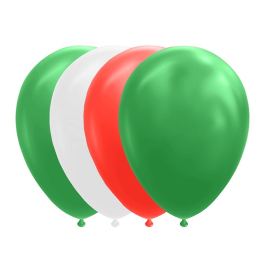 Rood/groen/wit ballonnen 10 stuks. Het formaat van de ballonnen is 30 cm.
