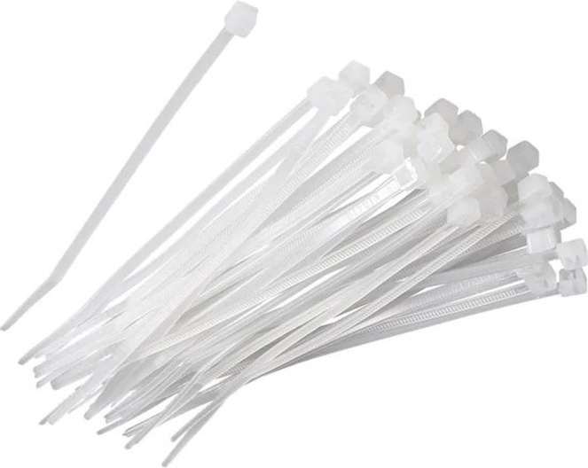 Tyraps TRANSPARANT zitten per 100 stuks verpakt in een zakje. Tie wraps worden gebruikt als flexibele kabelbinders waarmee je kan bundelen, vastzetten of afsluiten. Veelal worden transparante tyraps gebruikt om stroomkabels, elekticiteitskabels of snoeren mee te bundelen en vast te zetten. Deze tie wraps zijn transparant van kleur en gemaakt van hoogwaardig polyamide dat UV-bestendig is en bestand tegen olie, water, vetten, zout en zuren. Dankzij de hoogwaardige kwaliteit zijn de transparante tie wraps bestand tegen temperaturen tussen de -35°C tot 85°C.