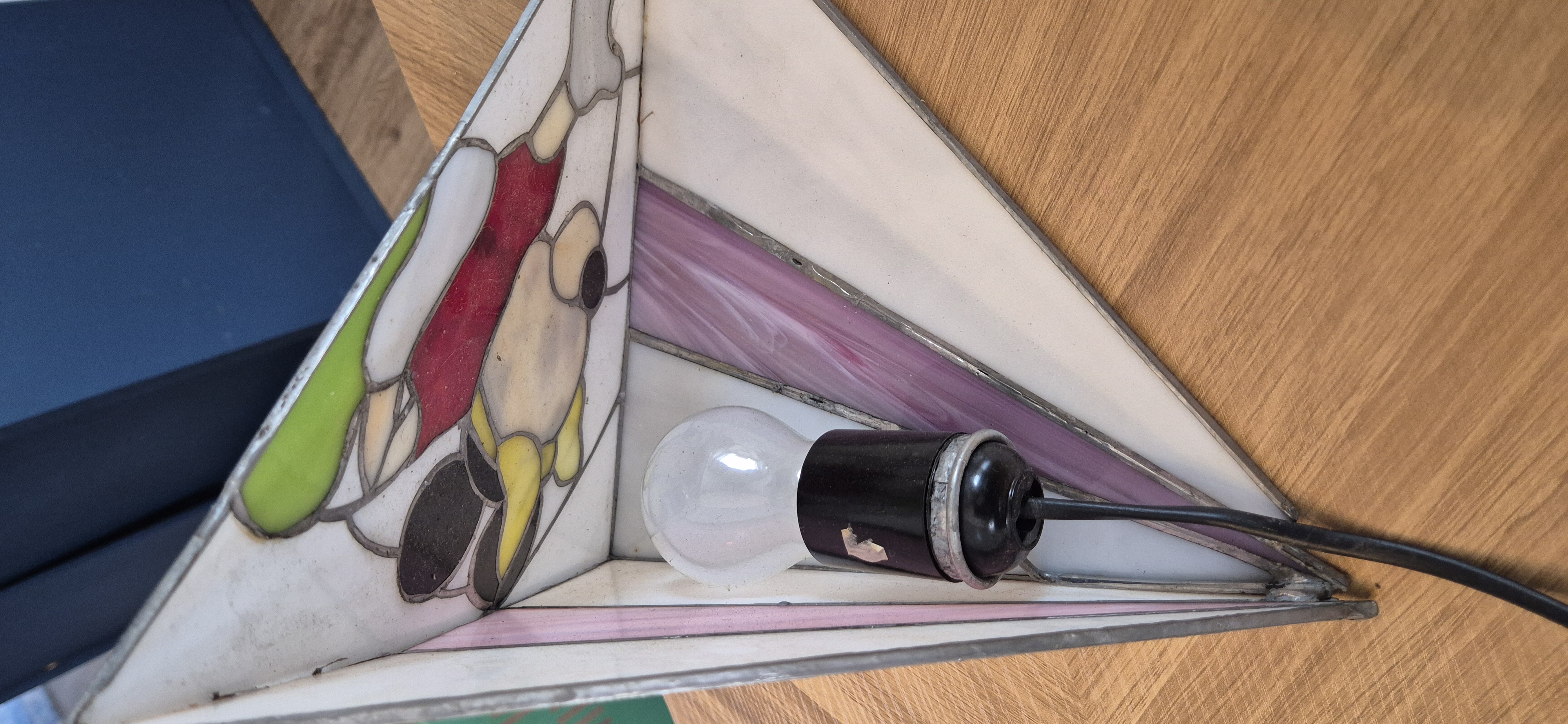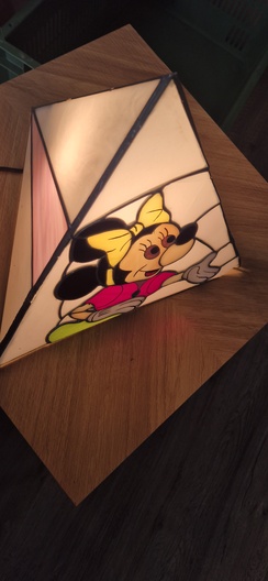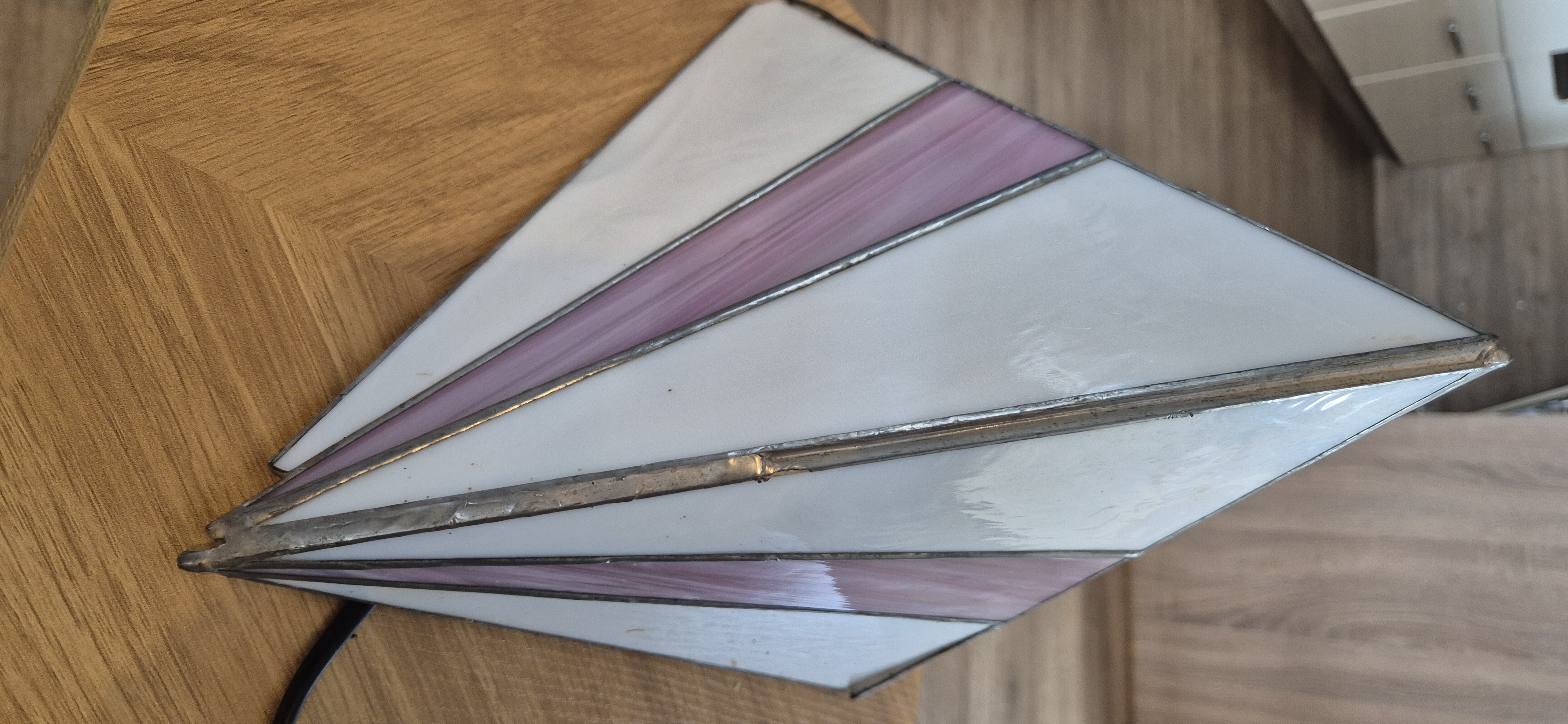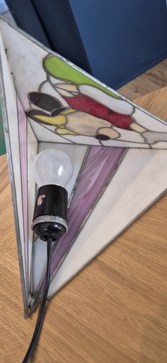 Mini mousse lamp met glas in lood effect Driehoekige Plexigla panelen die samen een piramide vormen