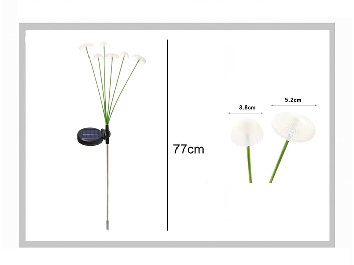 Verpakkingslijst: 1x paddenstoel prikker op zonne-energie (met 6 leds)
