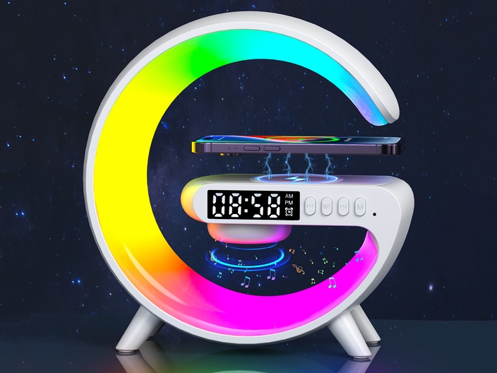 Multifunctionele wekker - met speaker, led verlichting en oplaadstation