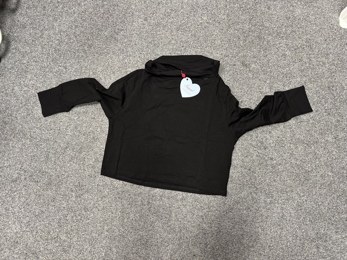 Mooi zwart dames shirt met col (hoge kraag) in maat XL.