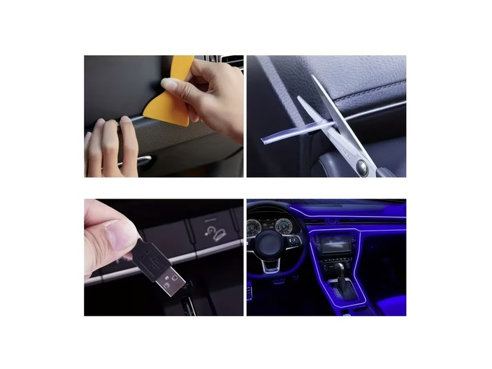 Dankzij de handige USB-aansluiting sluit je de strip moeiteloos aan op een powerbank, USB-poort in de auto of autolader. De flexibele en eenvoudig te installeren strip kan op maat worden geplaatst en bevestigd, zodat hij perfect in jouw interieur past.