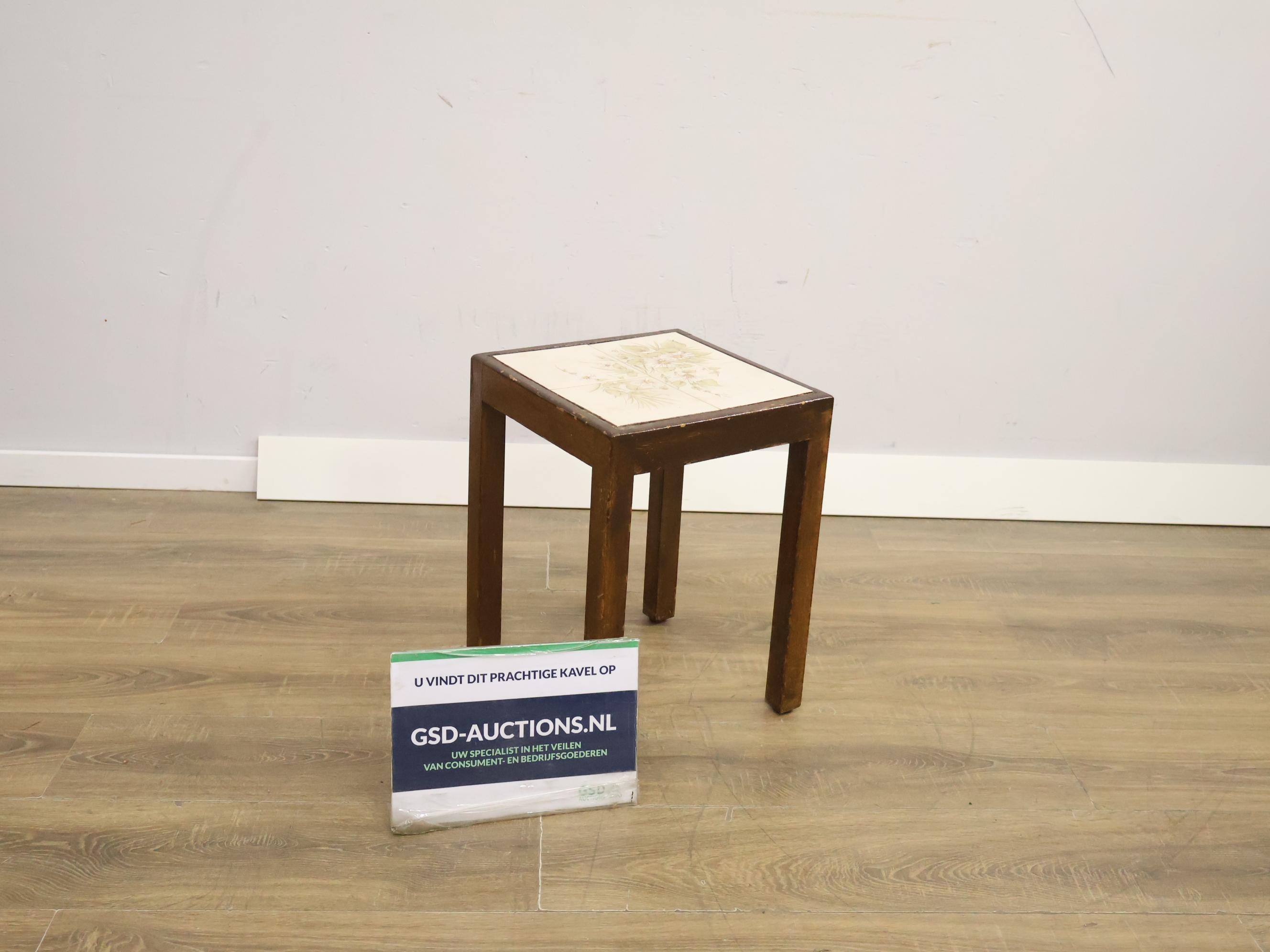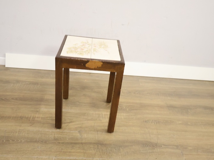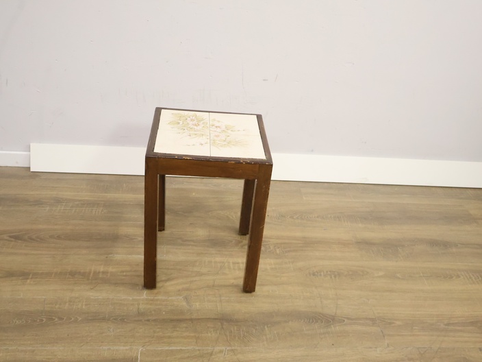 Antiek Houten Bijzettafel met Keramiek Blad'