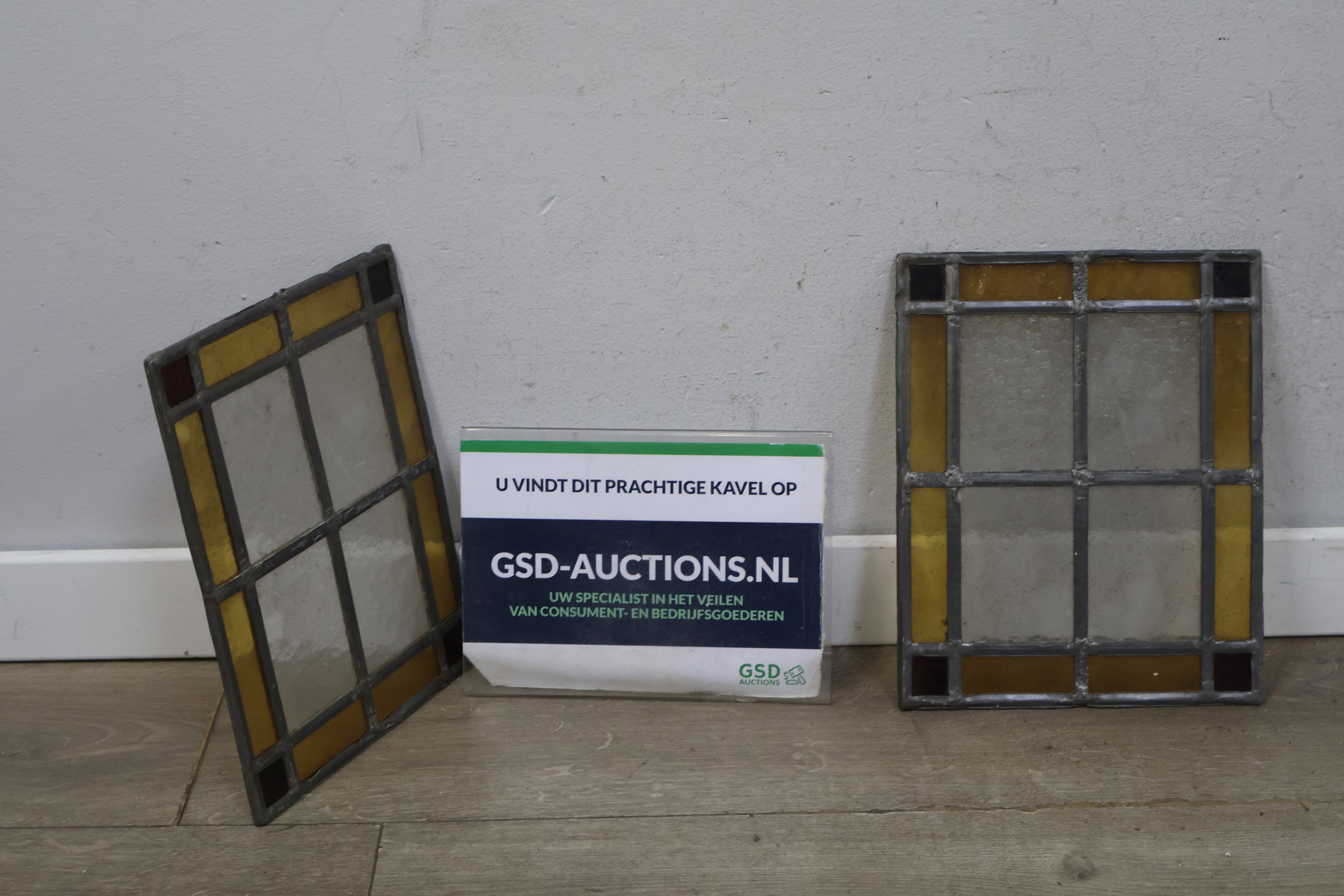 Set van 2 Vintage Glas-In-Lood Raampjes