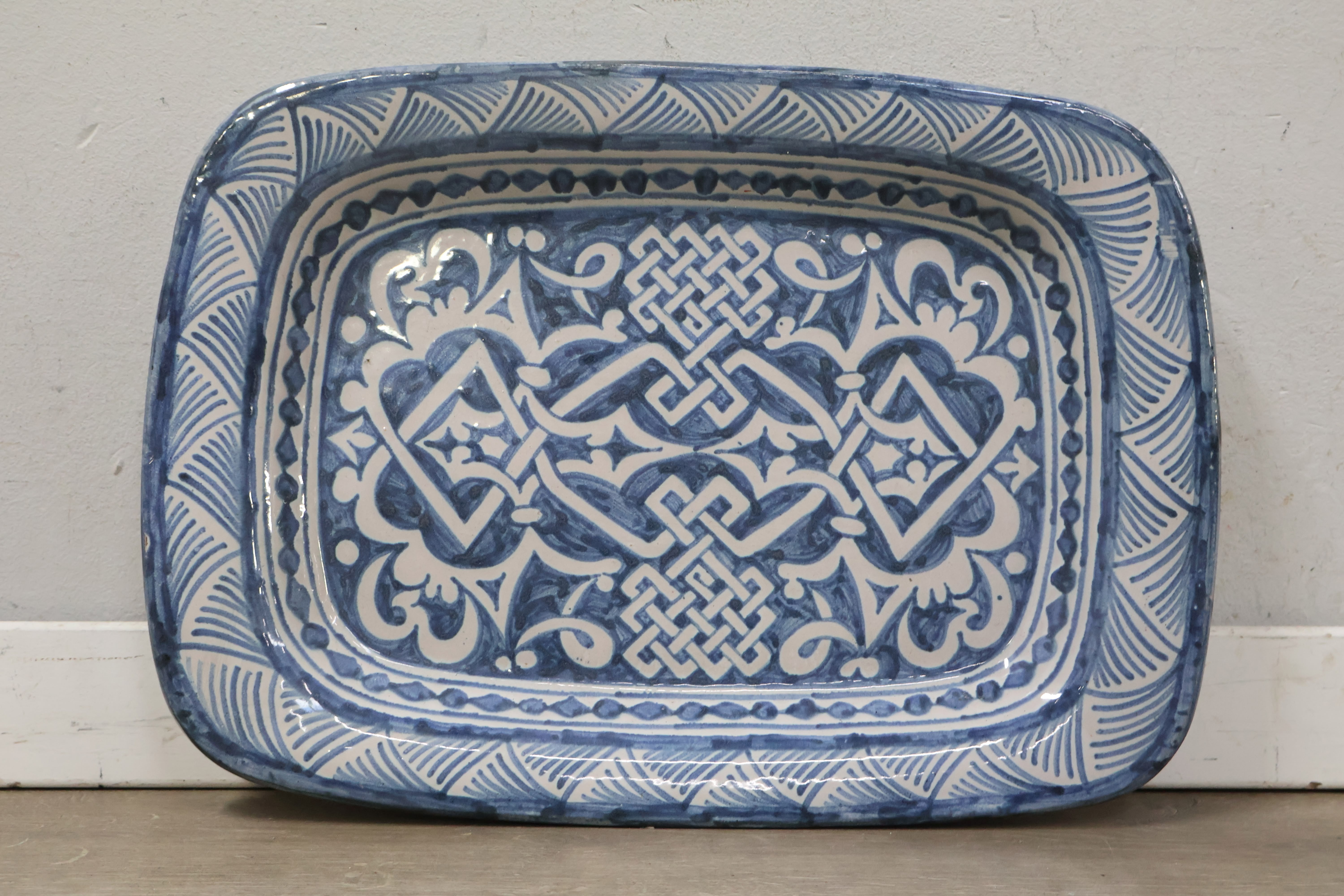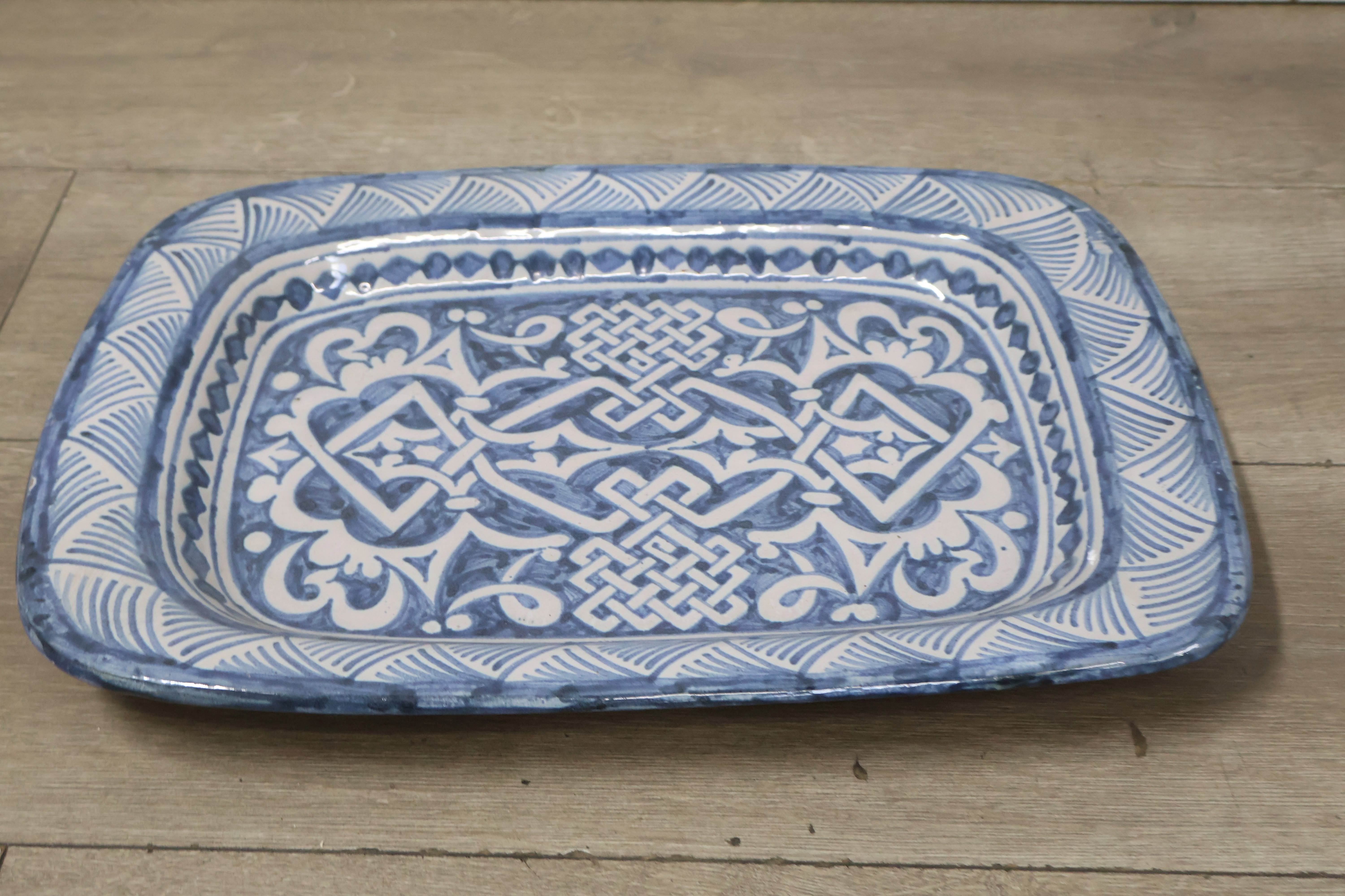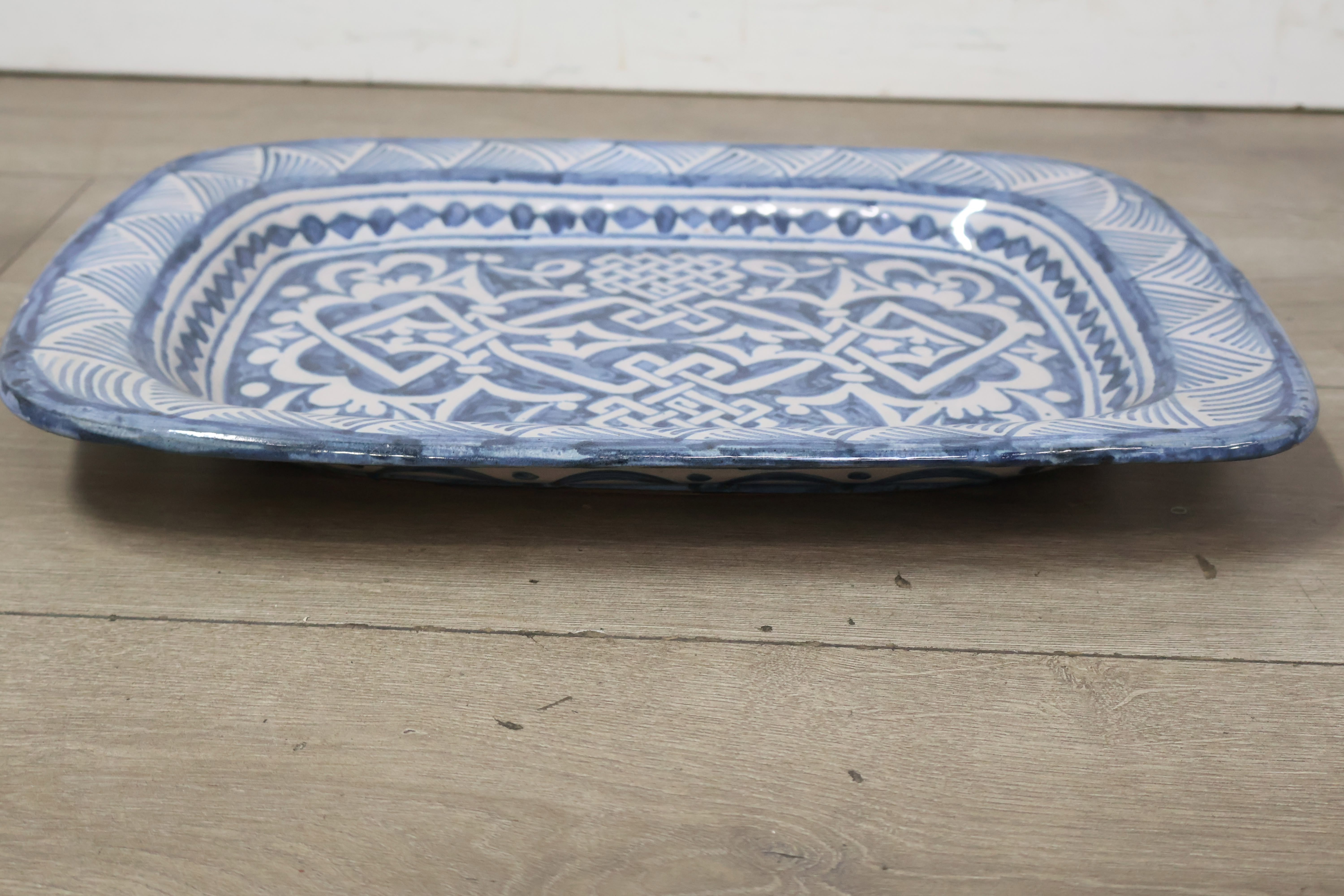 Blauw/Wit Handbeschilderde Schaal