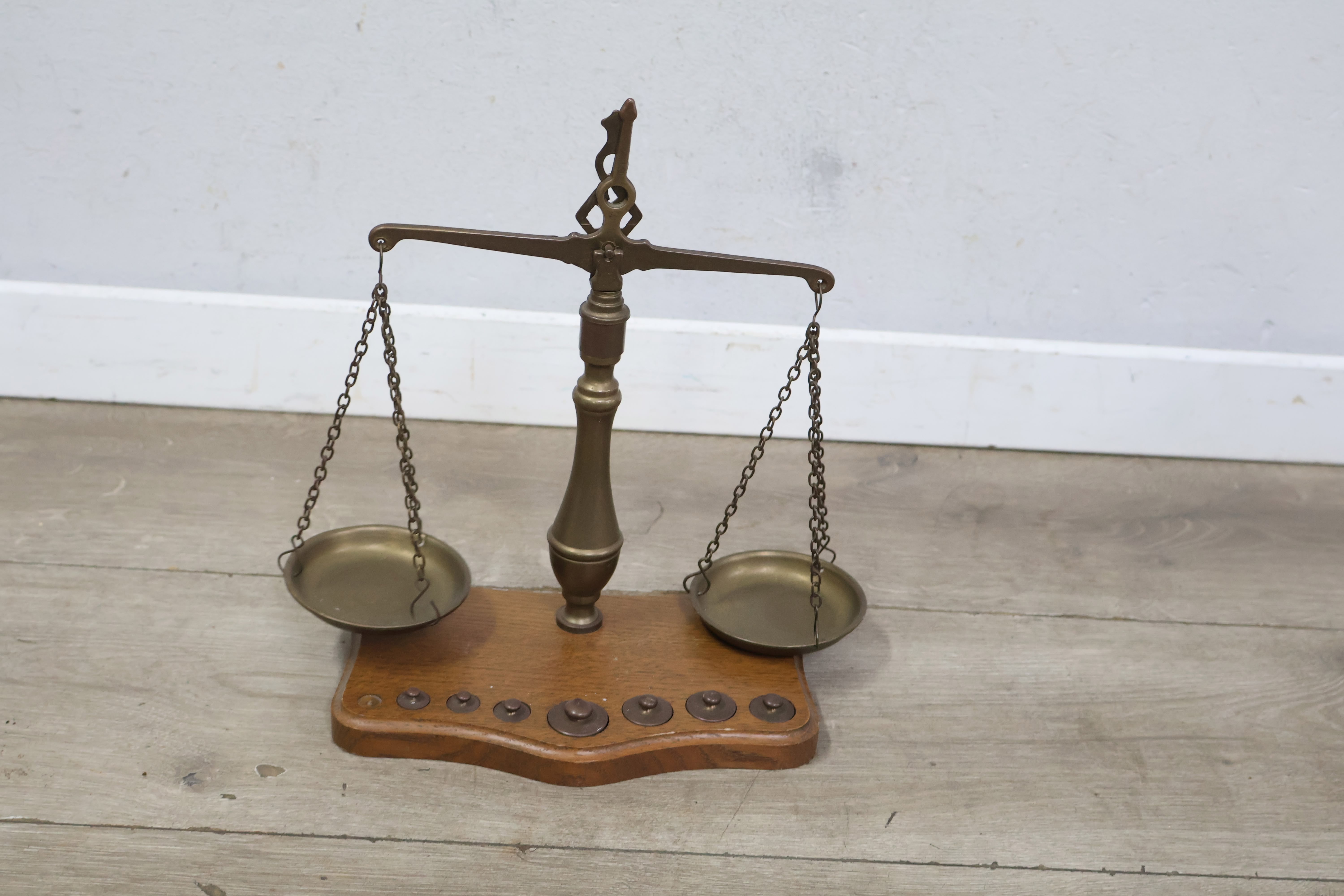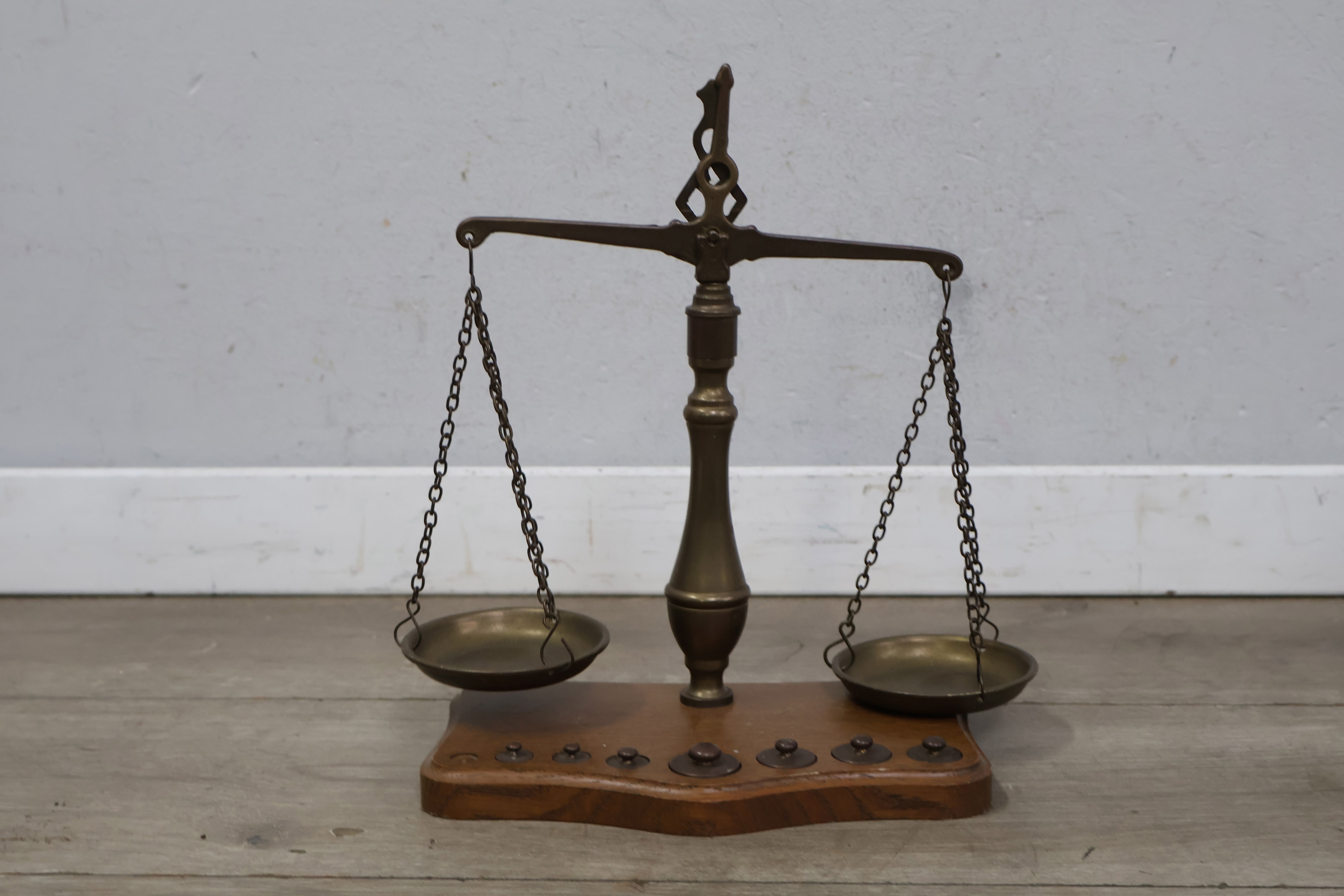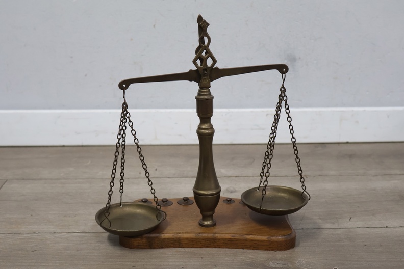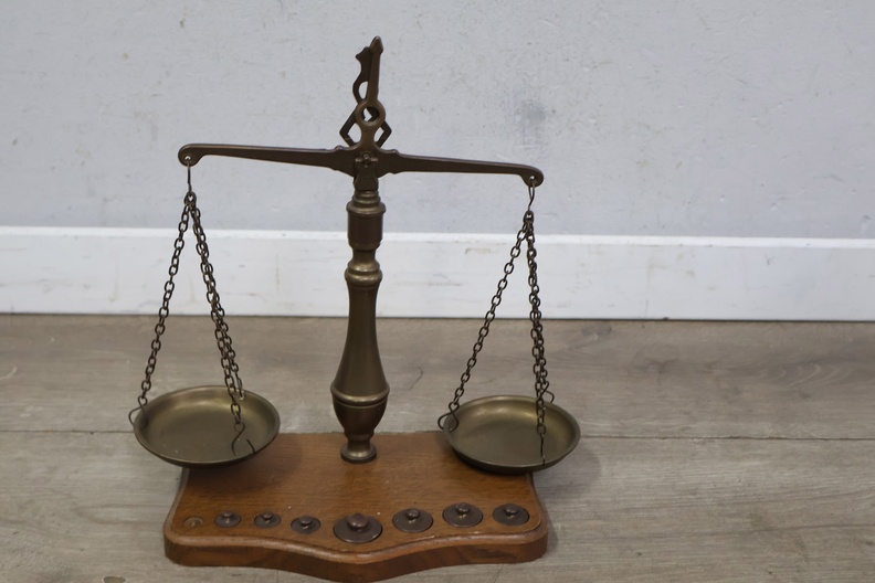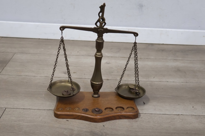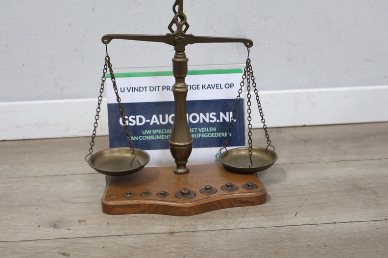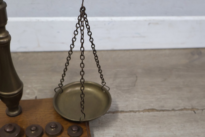 Antiek Koperen Weegschaal met Gewichtjes
