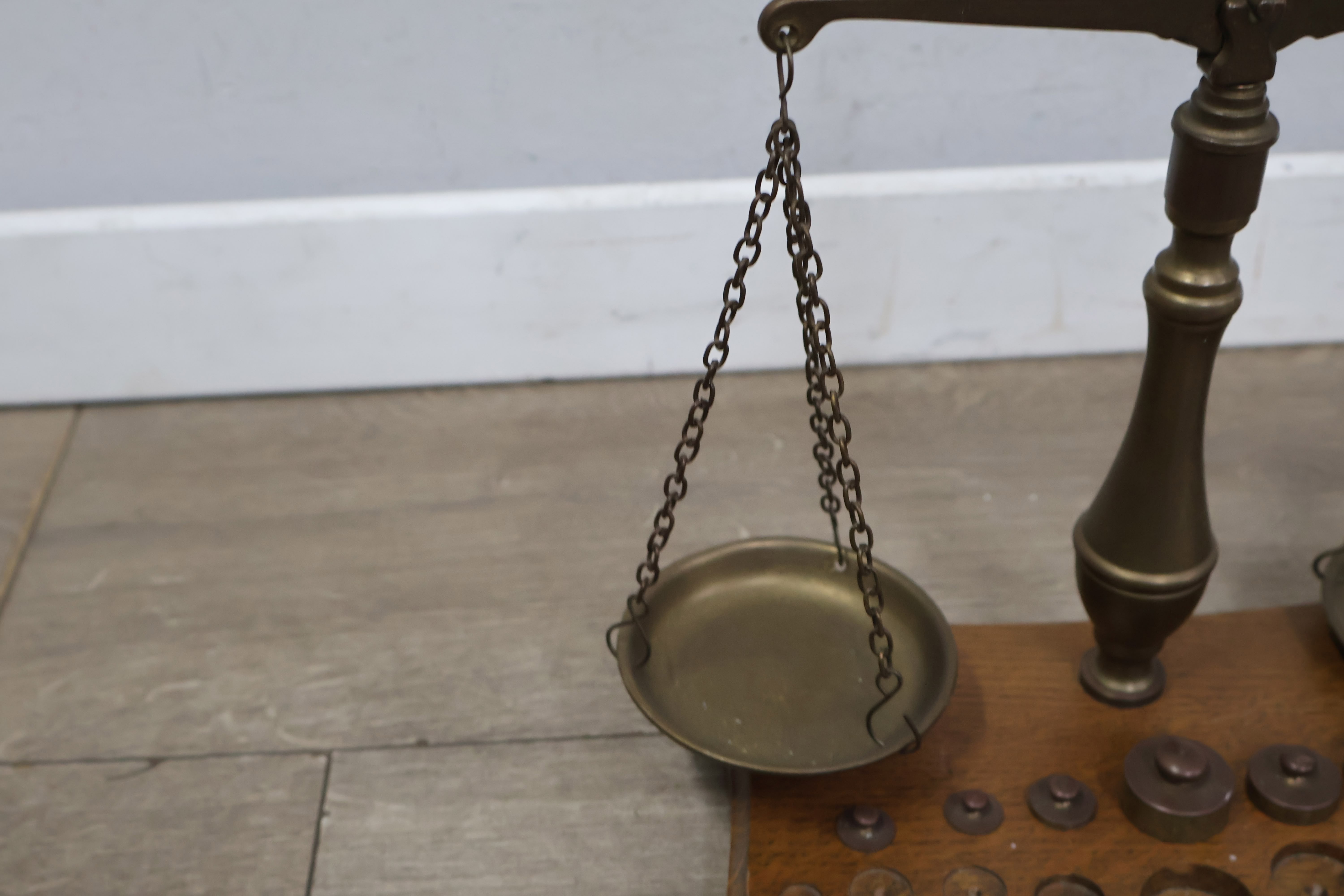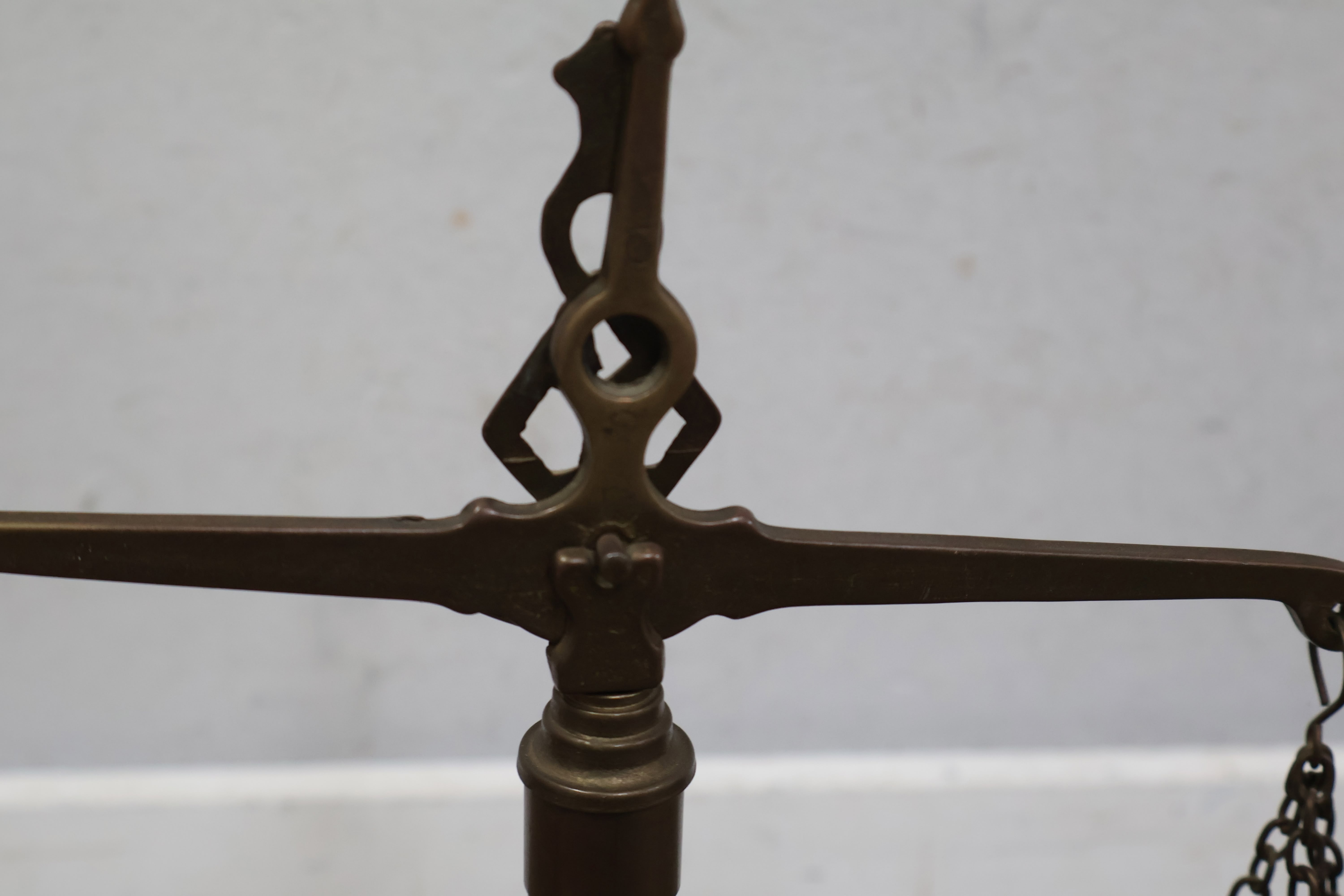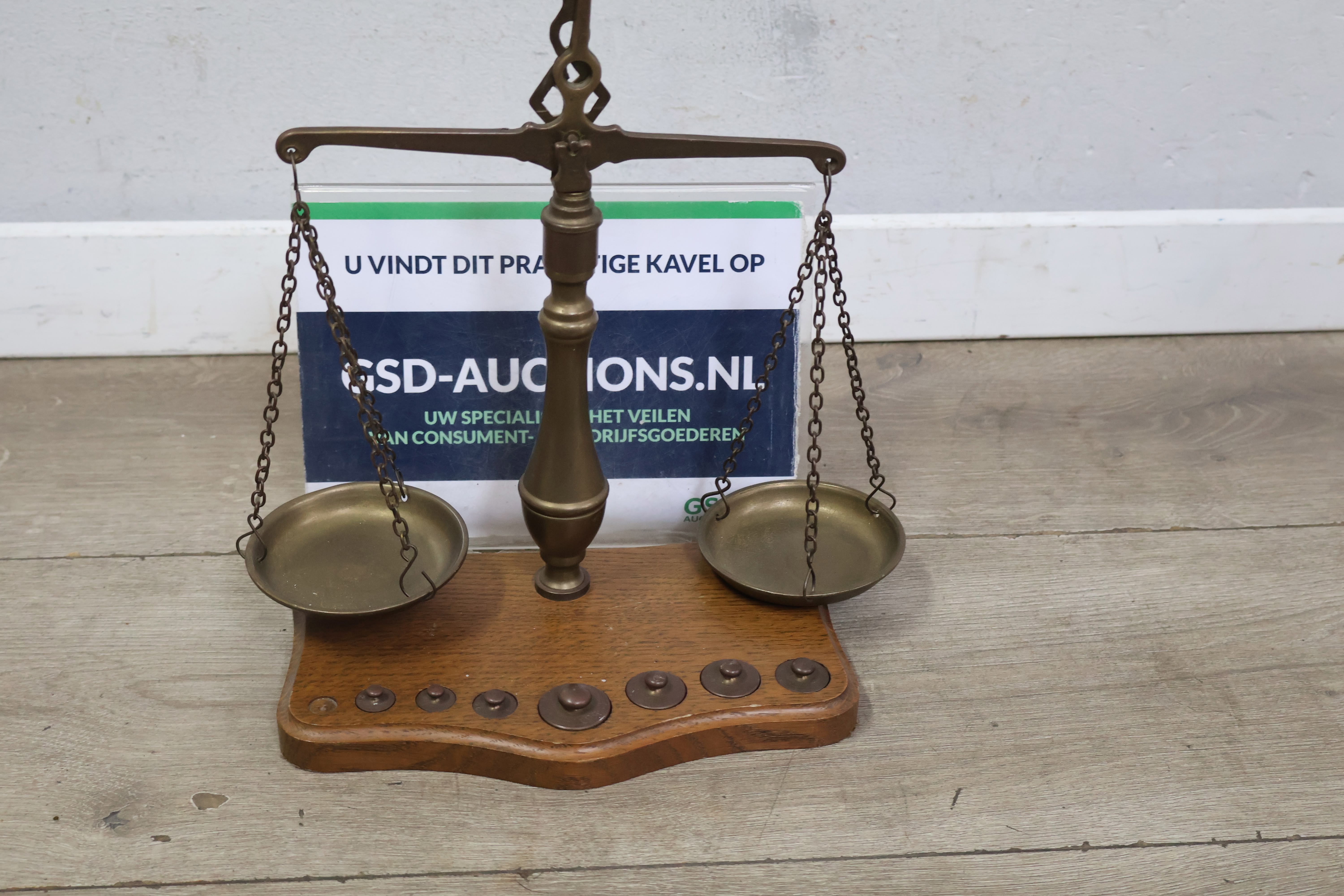 Antiek Koperen Weegschaal met Gewichtjes