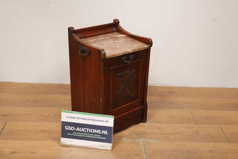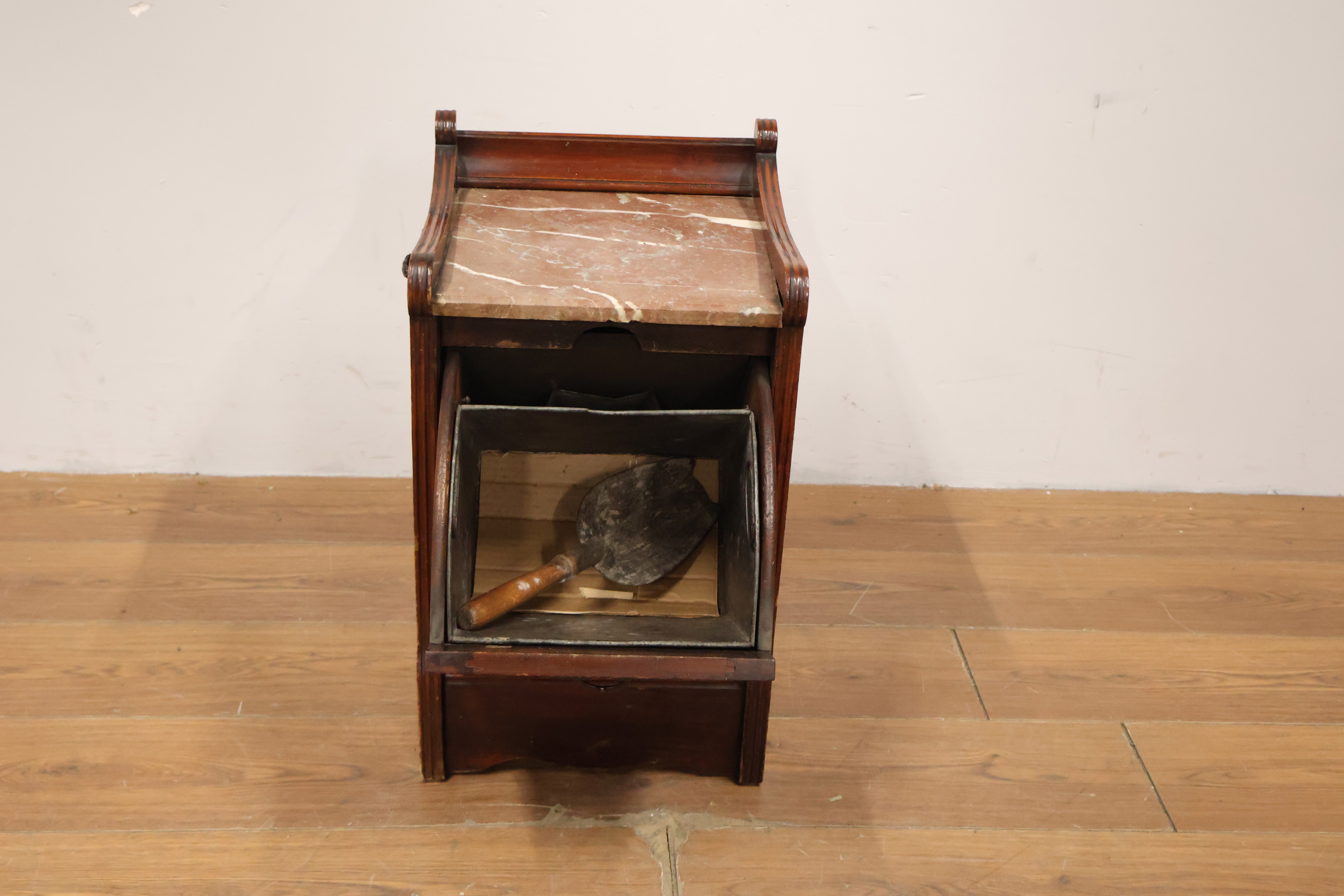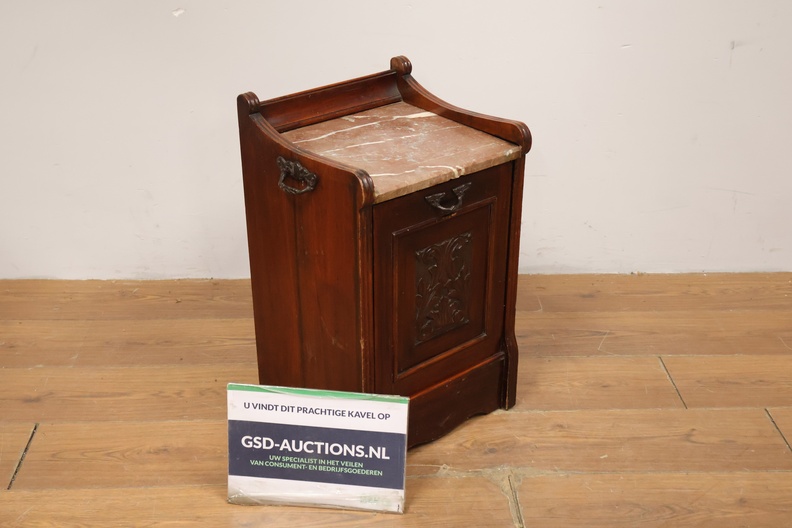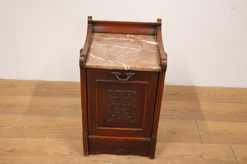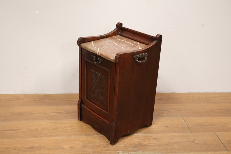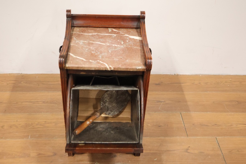 Antieke Kolenkittafel met Marmeren Blad & Metalen Binnenbak