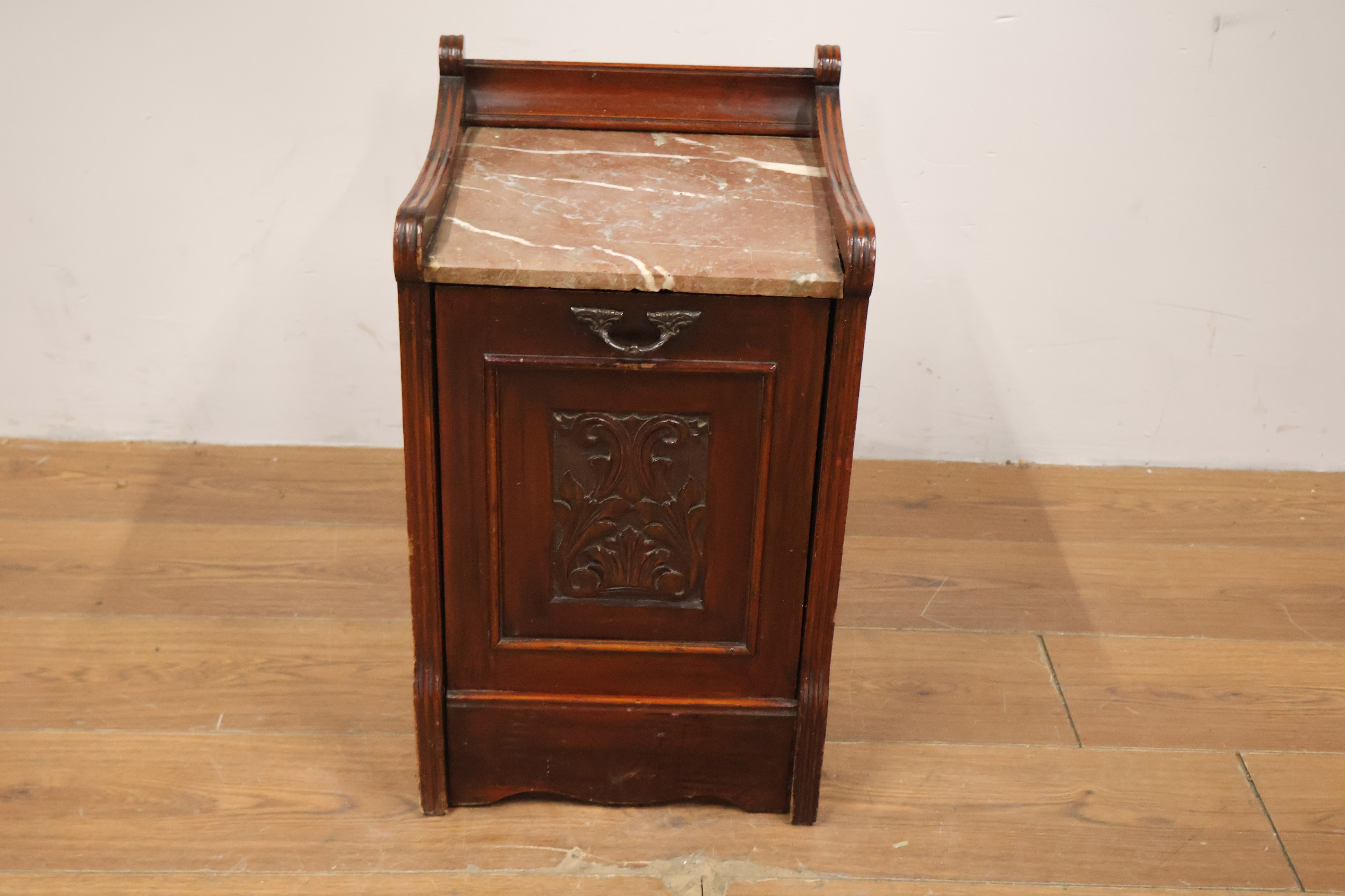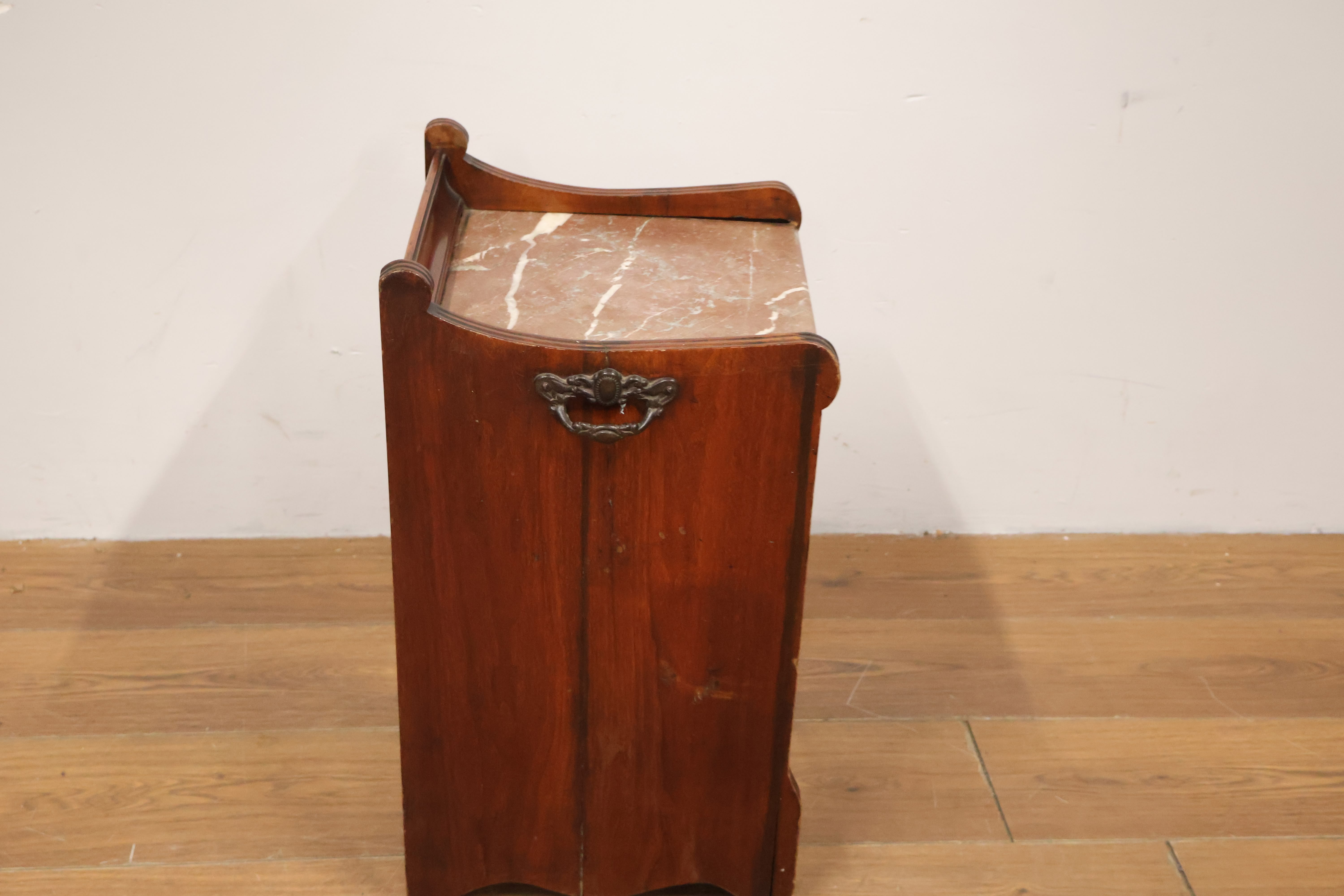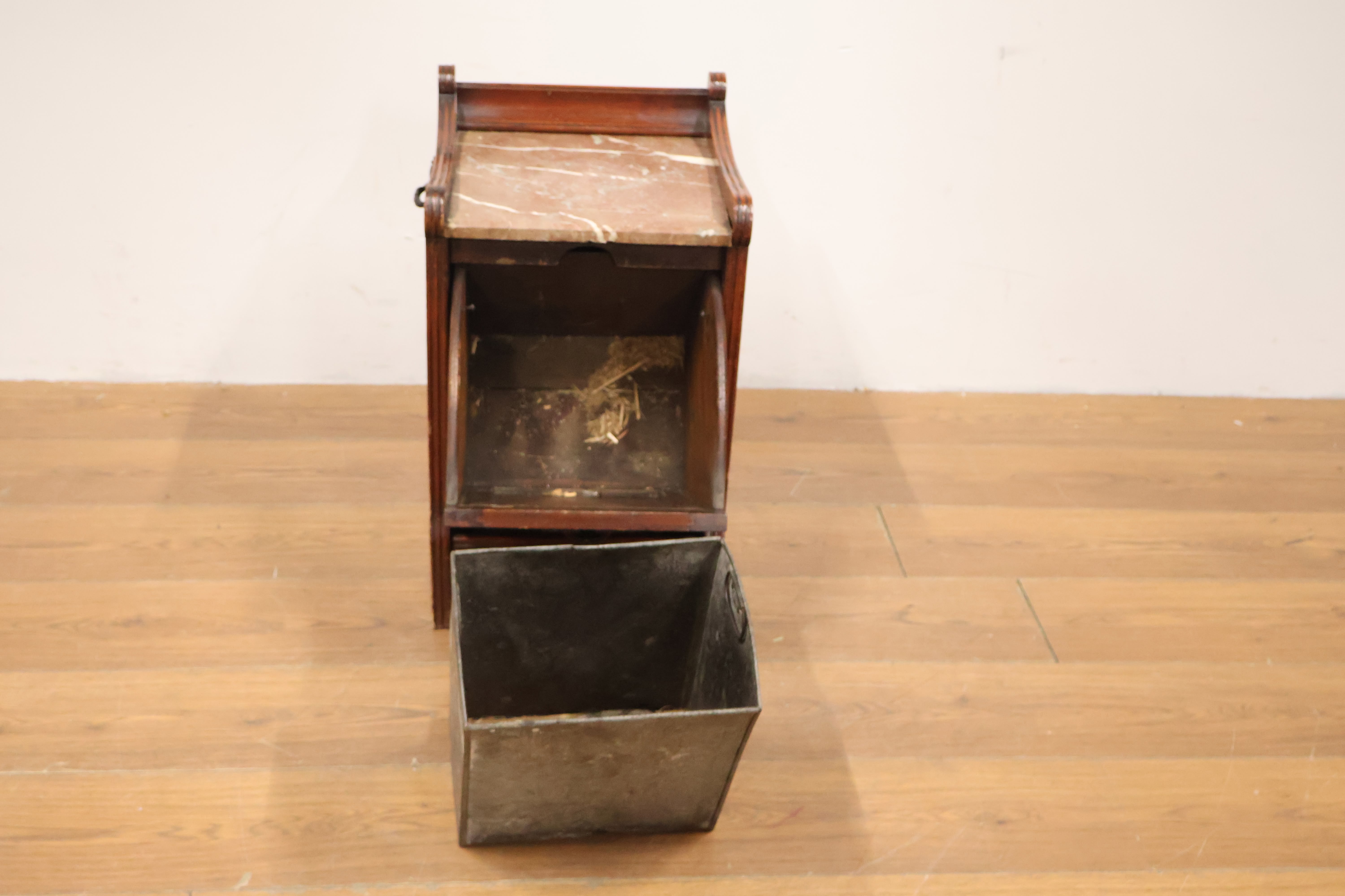 Antieke Kolenkittafel met Marmeren Blad & Metalen Binnenbak