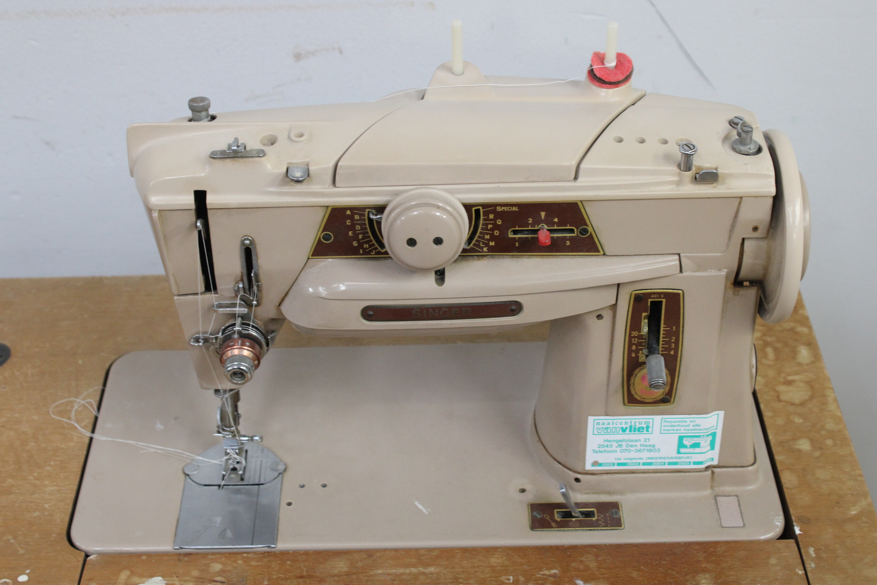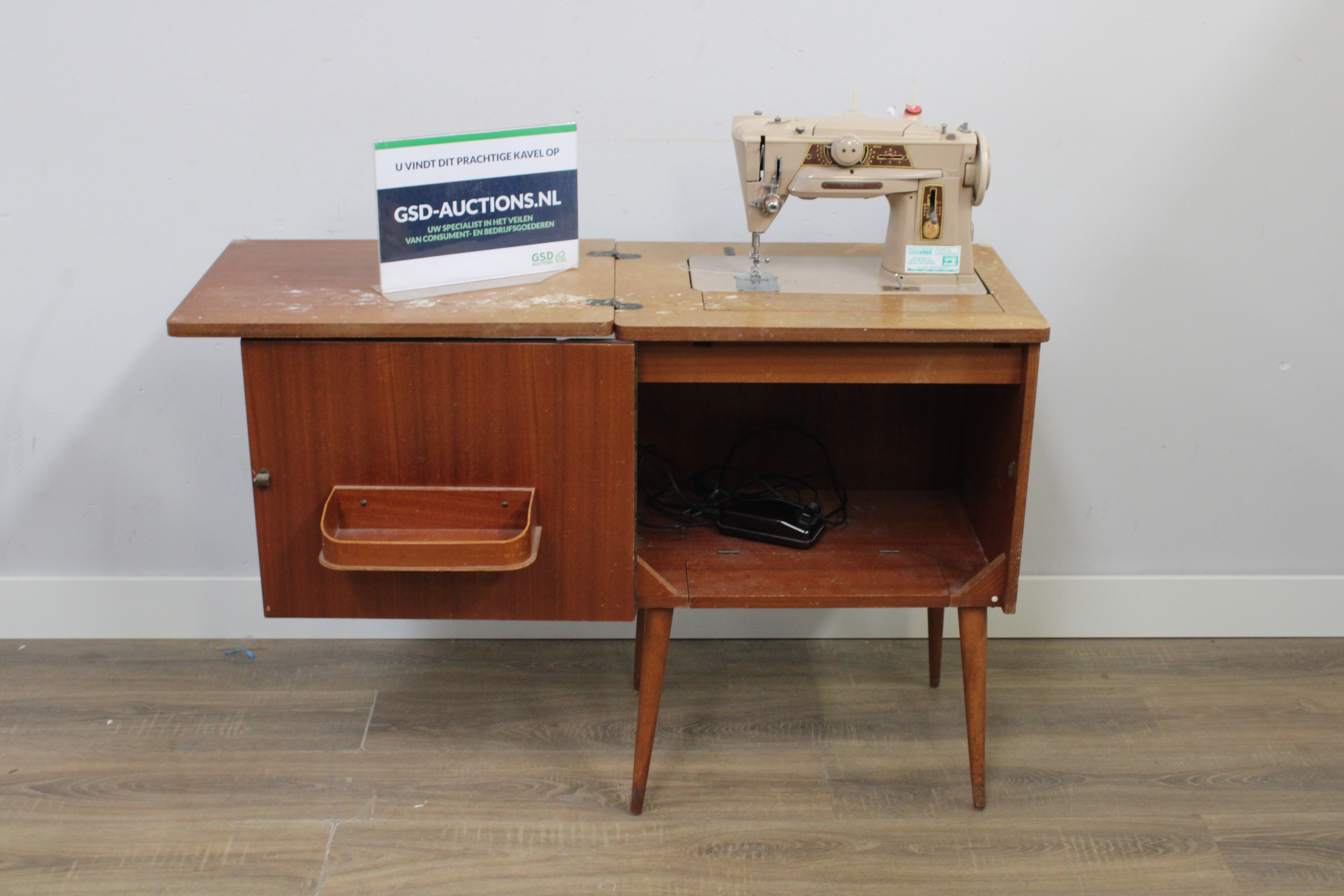 Vintage Houten Singer Naaitafel inclusief Naaimachine