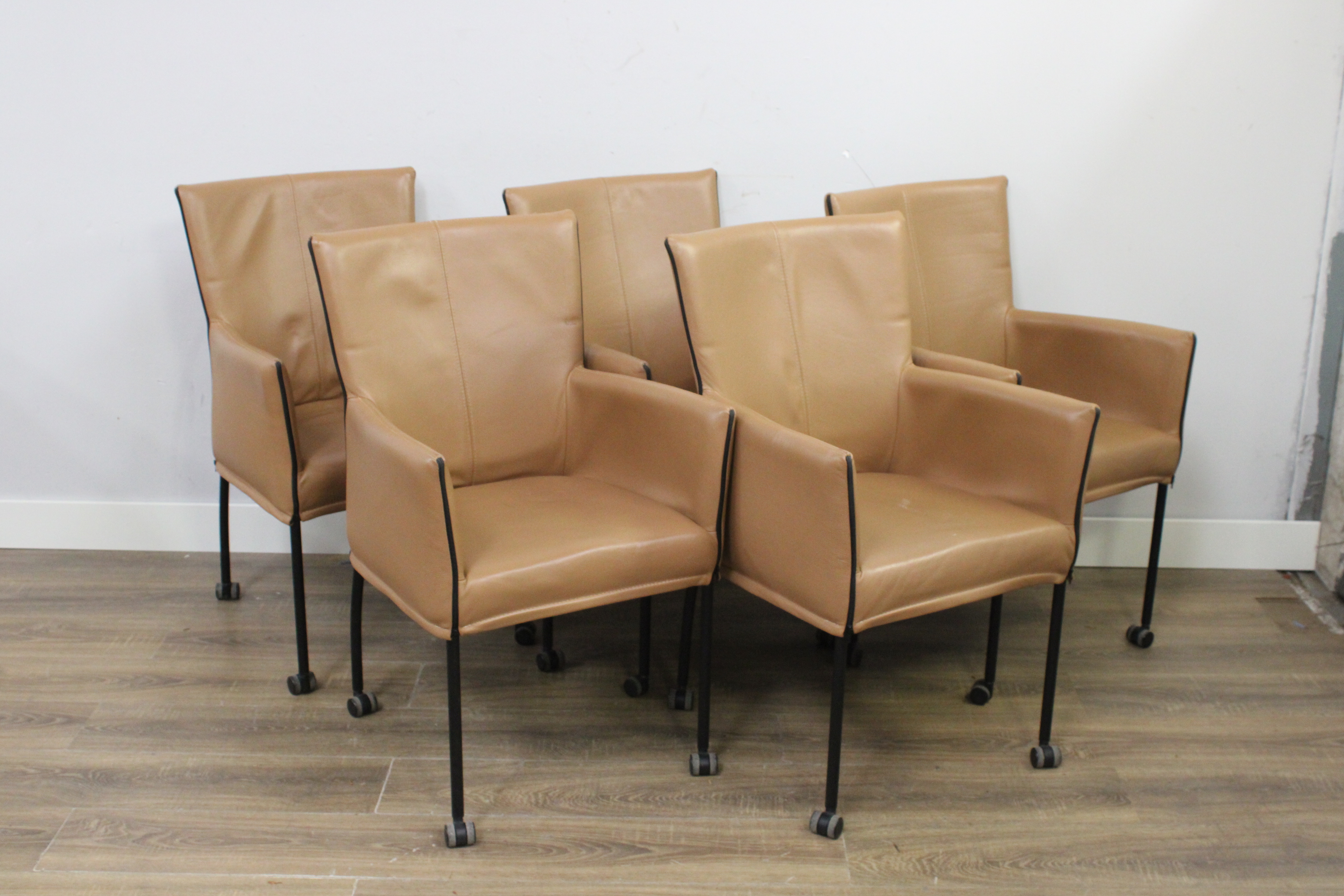 Set van 5 Bruin Leren Goossens Funk Eetkamerstoelen''