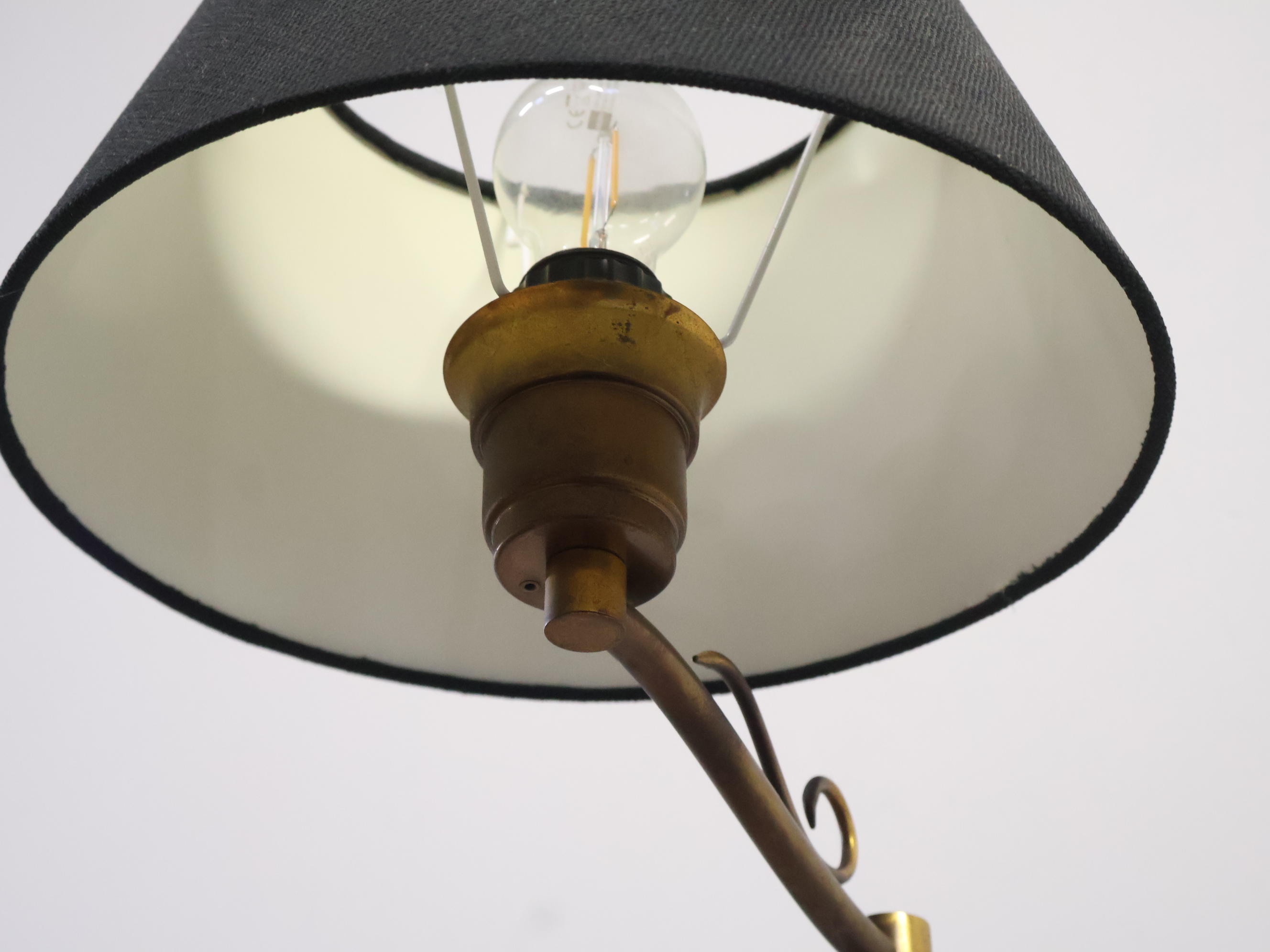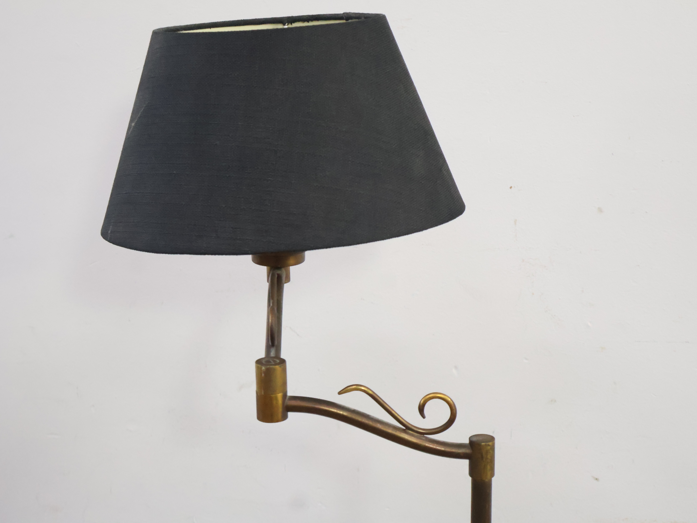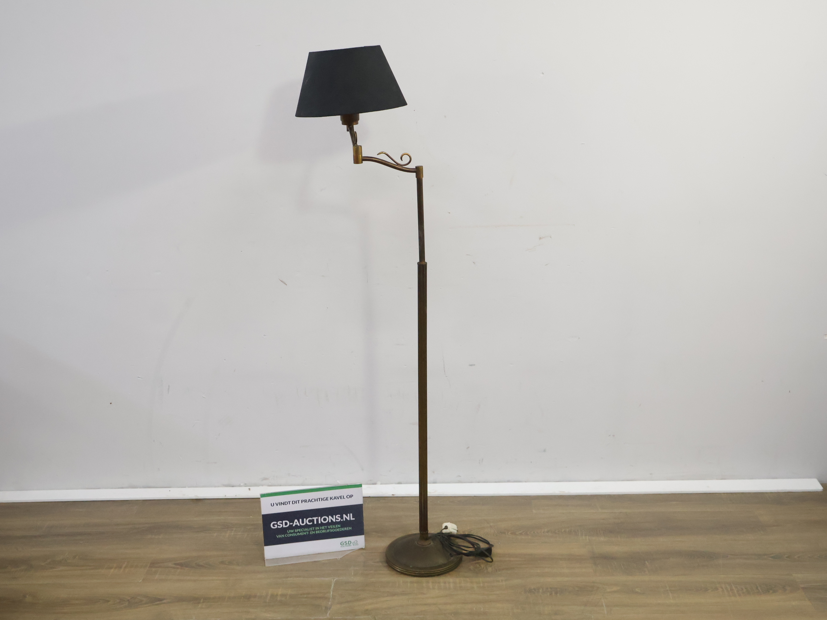 Messing/Koperen Vloerlamp met Zwarte Kap