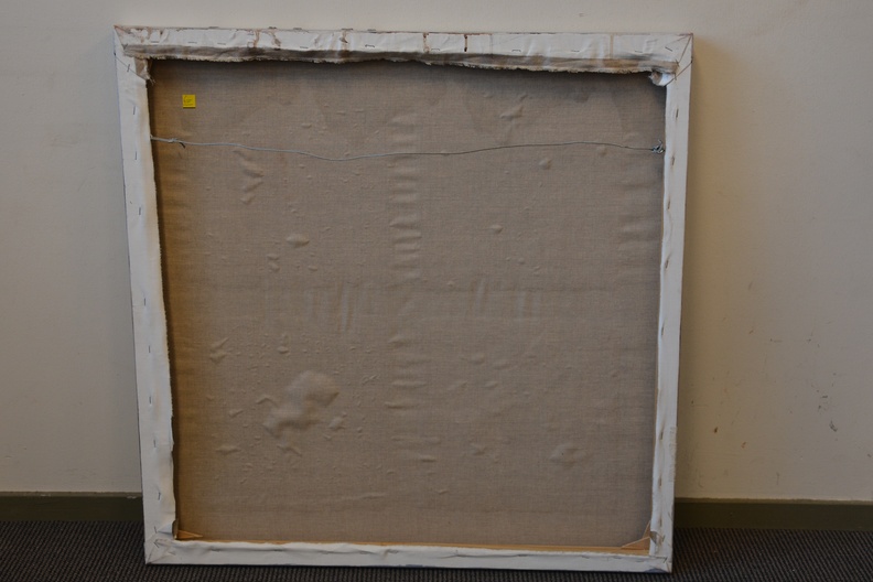 Jeanne Beenakkers (Bavel 1946-2012), was een bekend kunstenares. Ze werkte veel met acryl op canvas, dit werk is gemaakt met gemengde technieken: jute, acryl op doek. Dit werk is zonder titel. Achterzijde is wat gebobbeld, waarschijnlijk ontstaan door de opplaktechnieken. Niet zichtbaar aan de voorzijde.