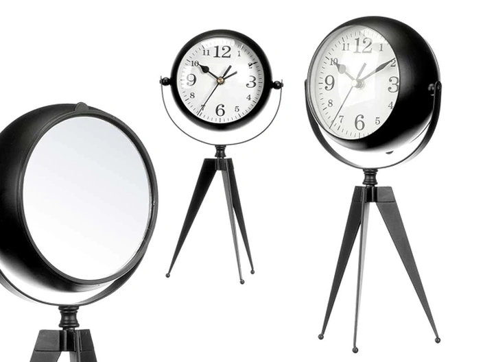 smeedijzeren klok ovale bol spiegel zwart 32cm