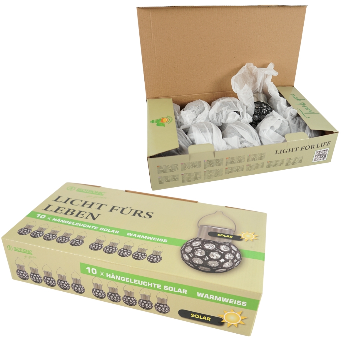 Isotronic Solar lantaarn bol 8 cm set van 10 stuks , snoerloos dus makkelijk overal te hangen of leggen