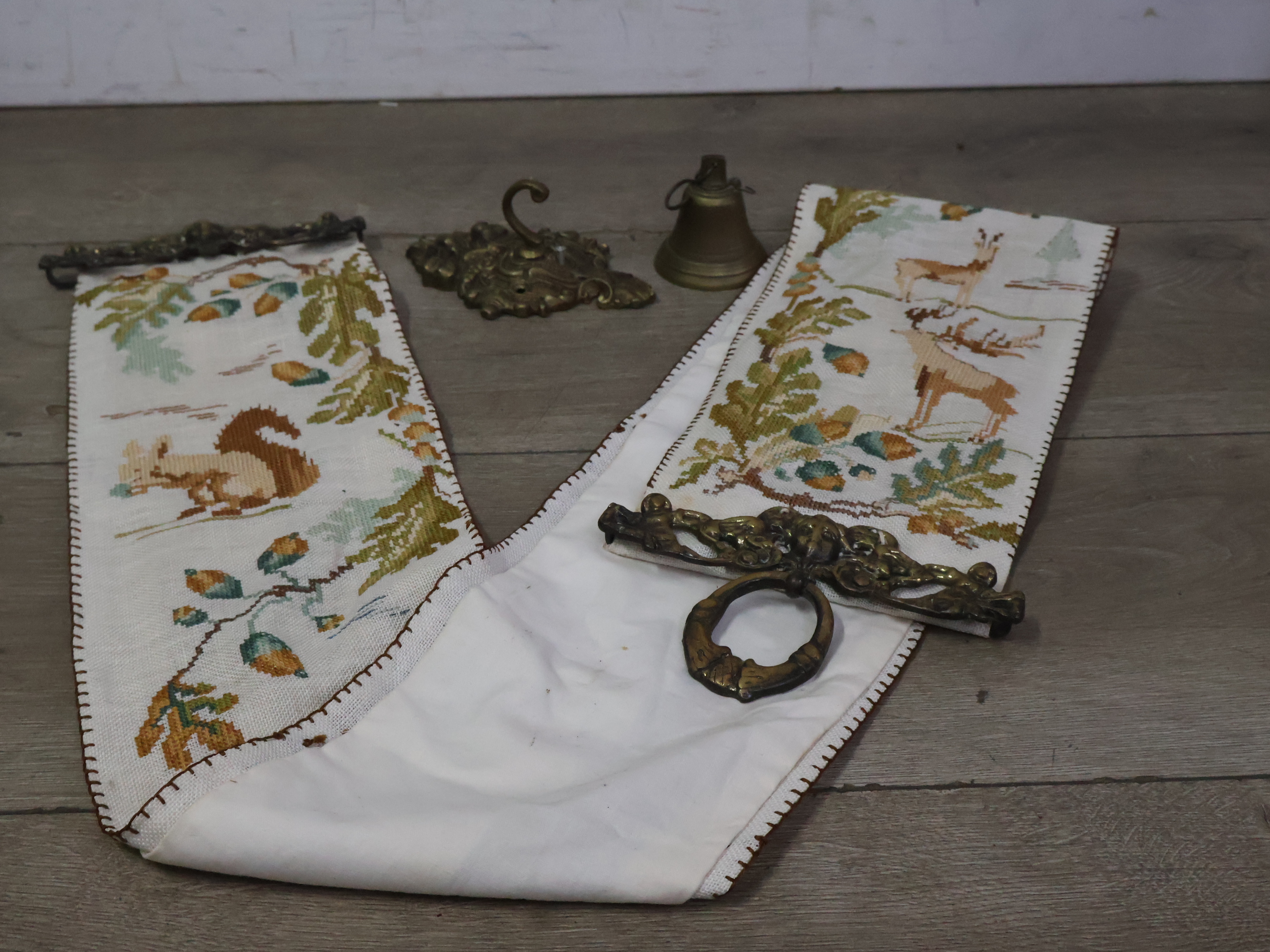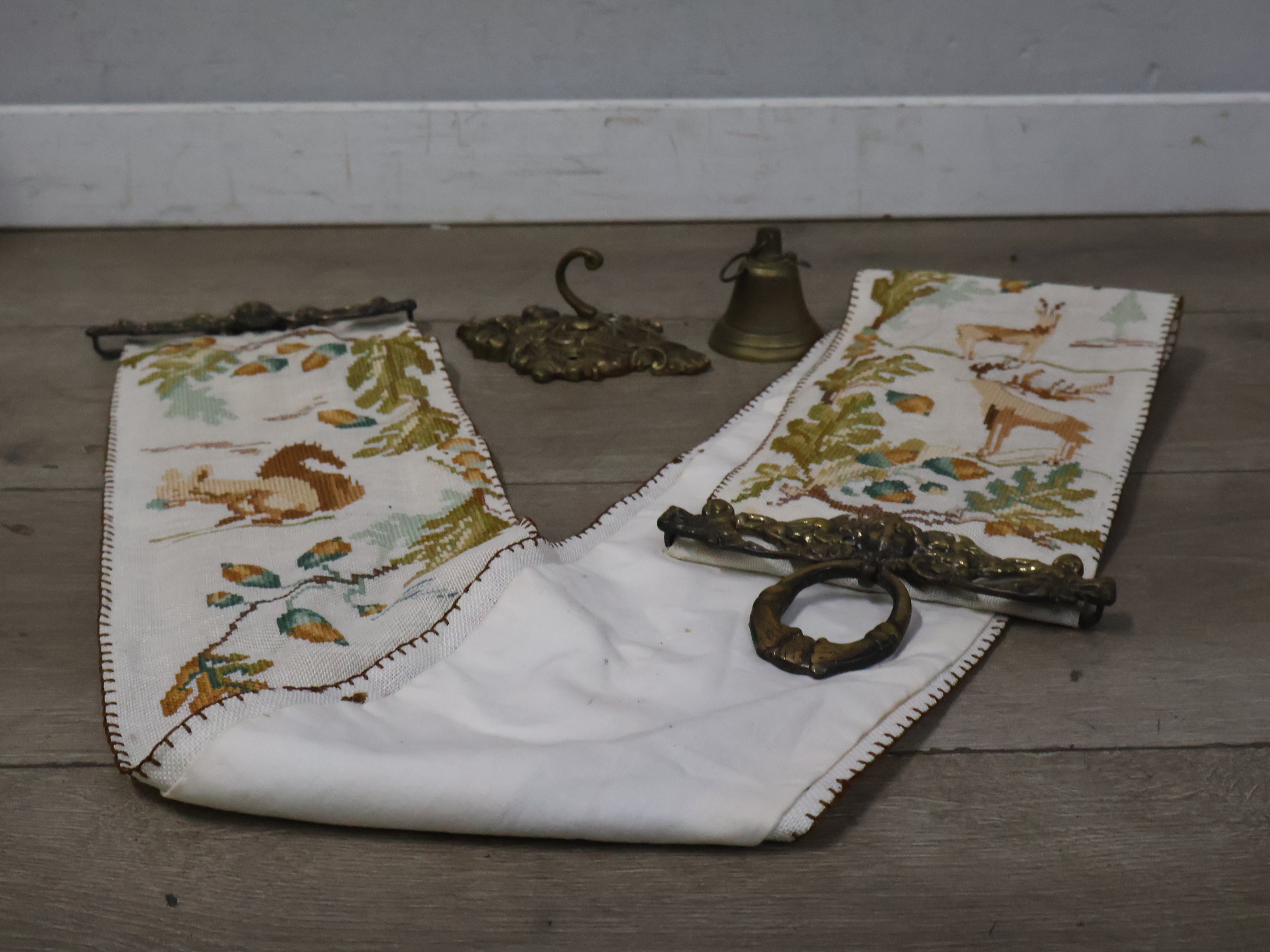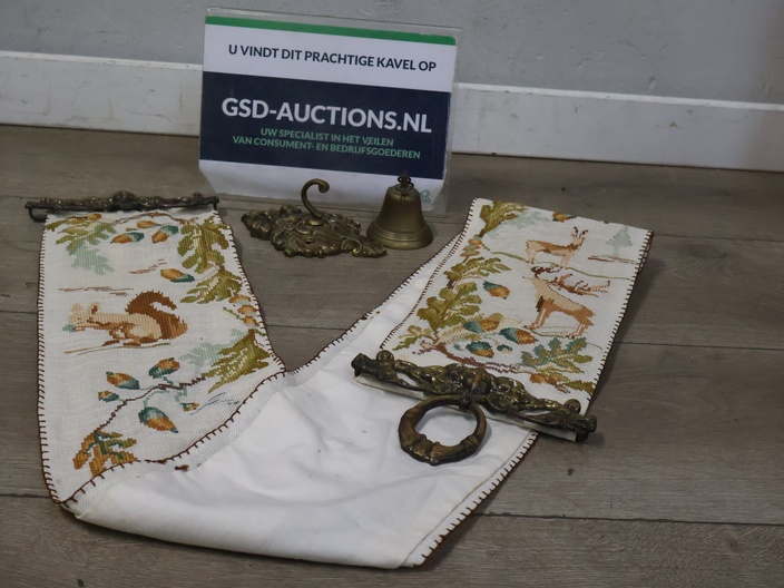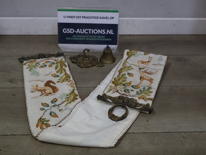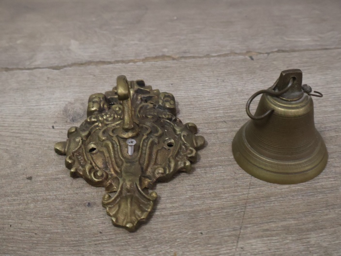 Antiek messing schellekoord met bel
