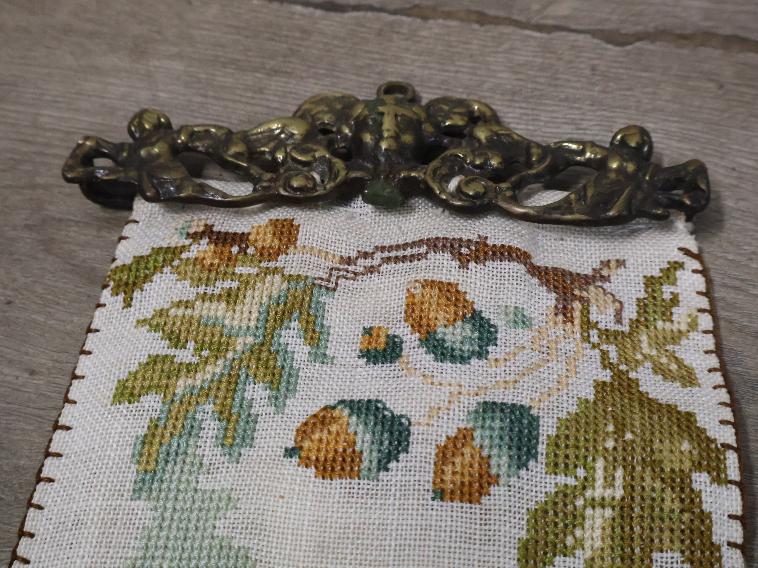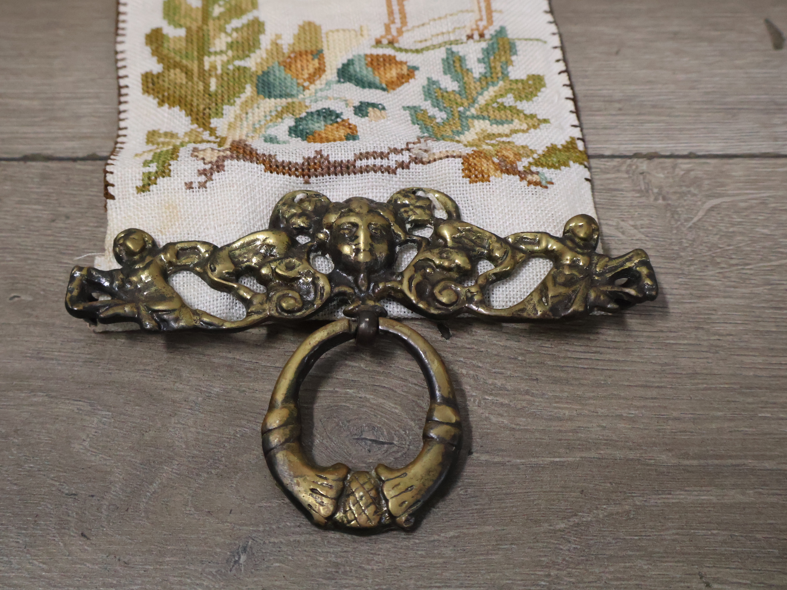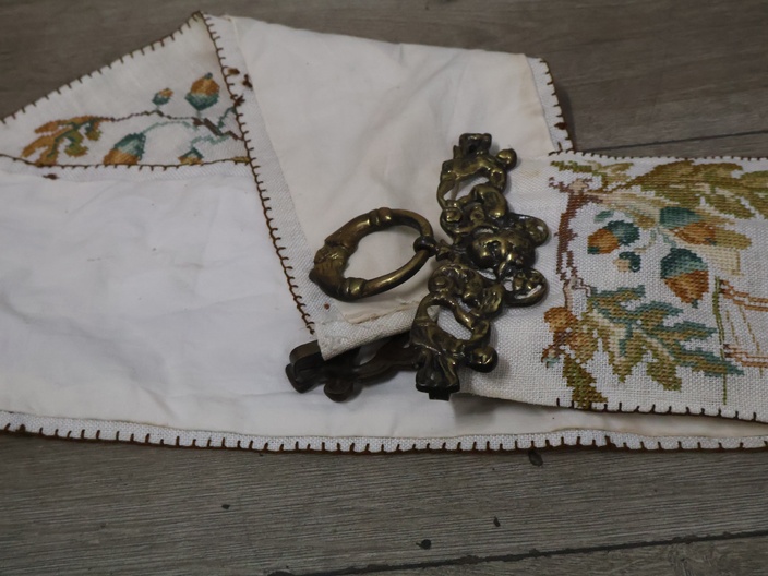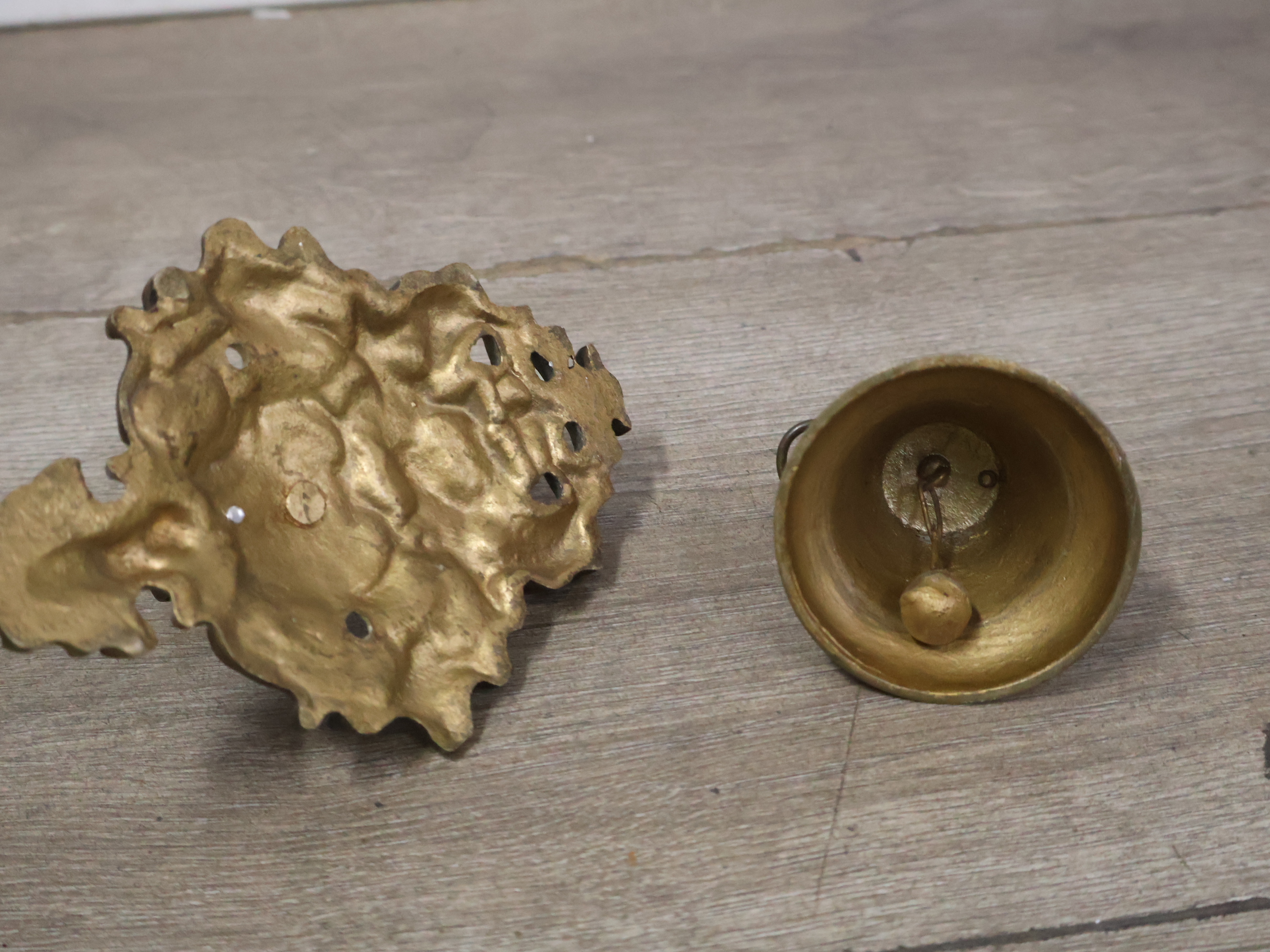 Antiek messing schellekoord met bel