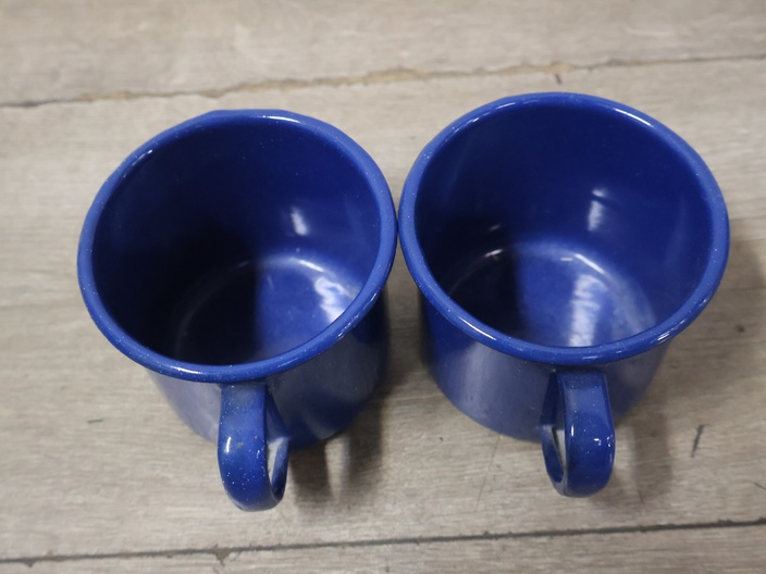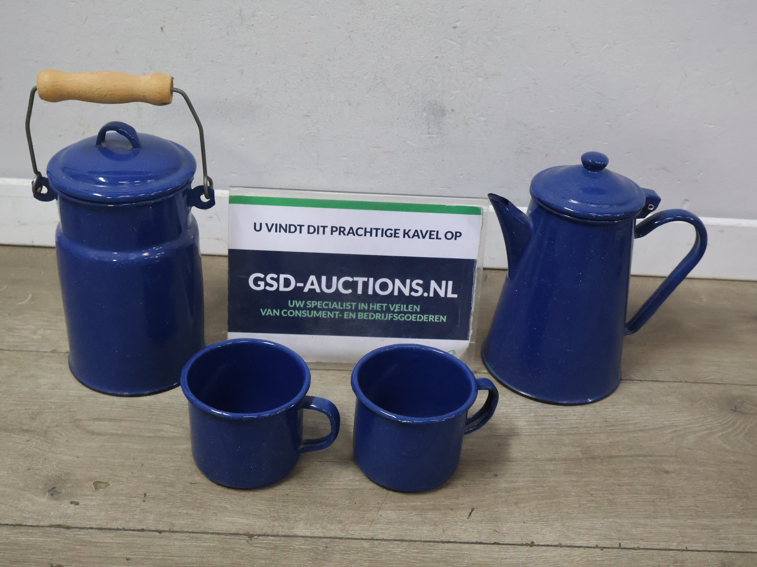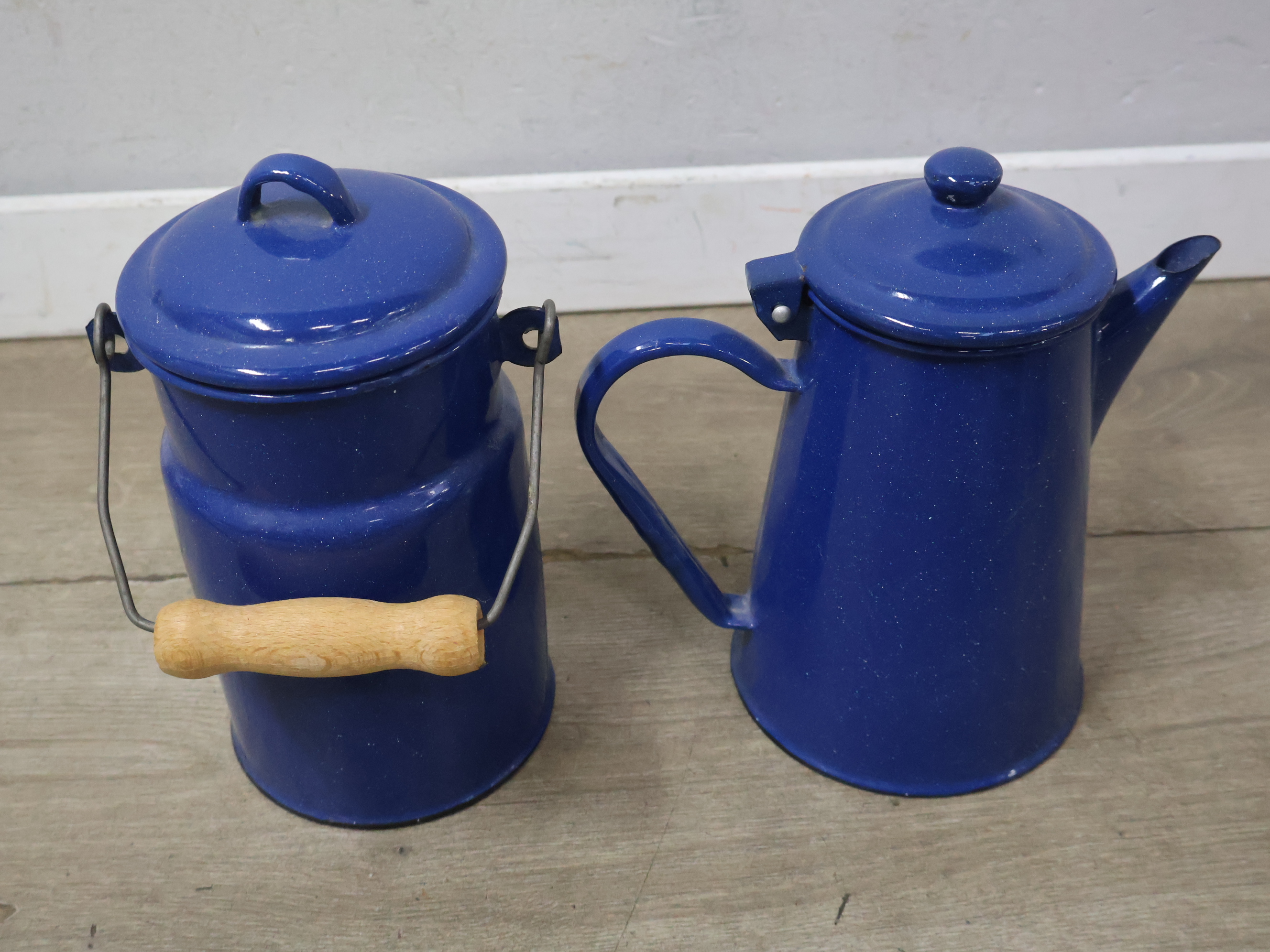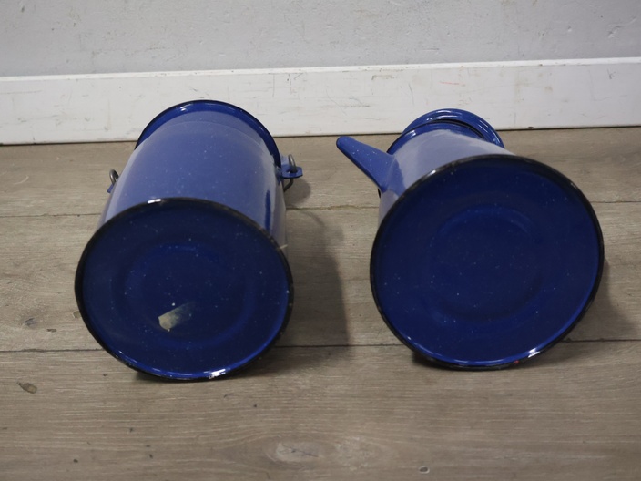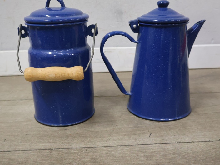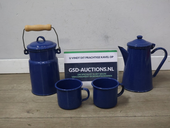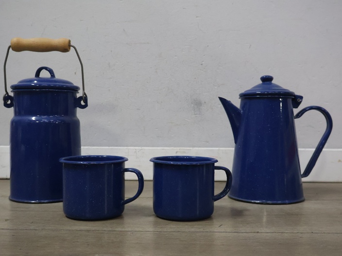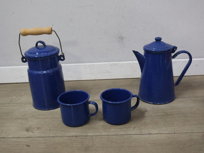 Vintage emaille melkbus, koffiekan en 2 mokken