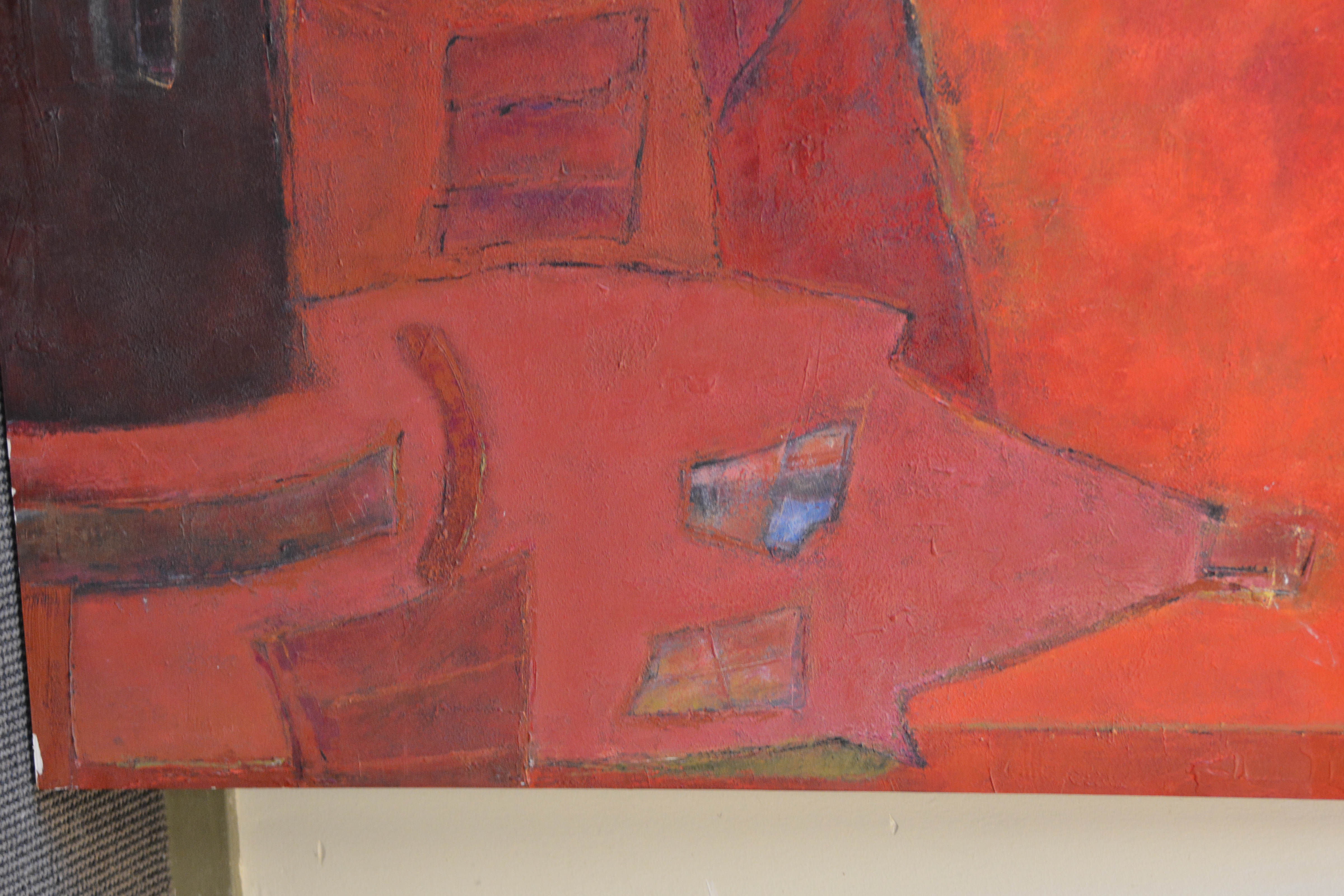Acrylschilderij van Jeanne Beenackers:'Huis'.