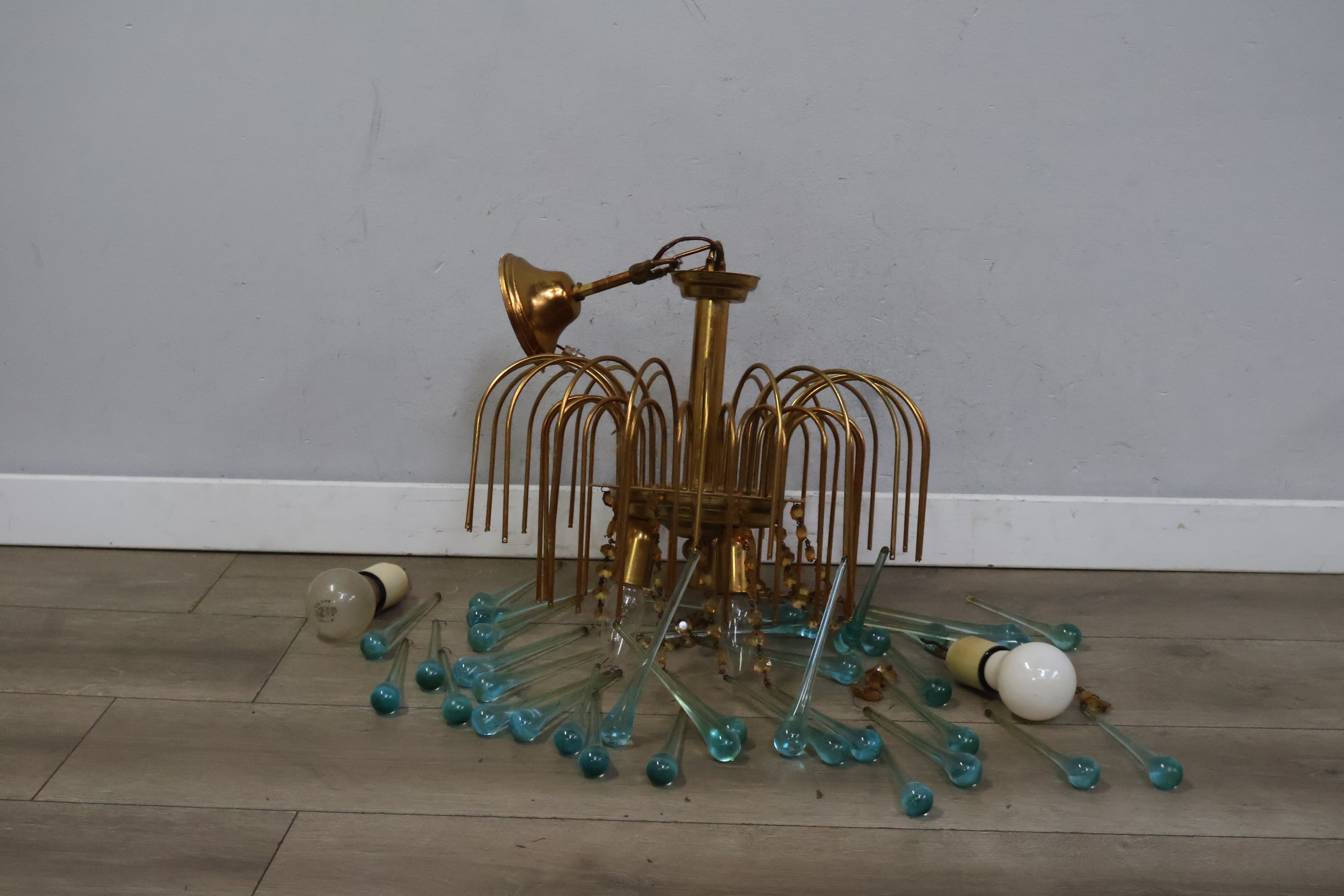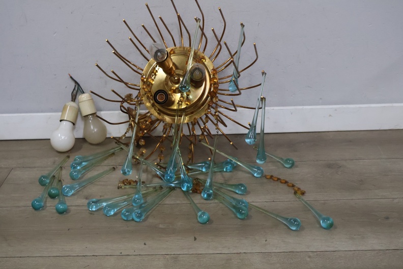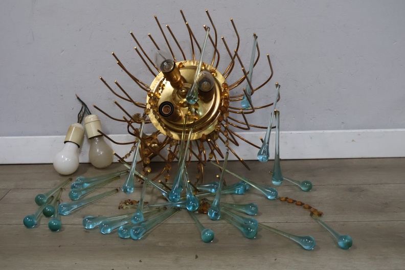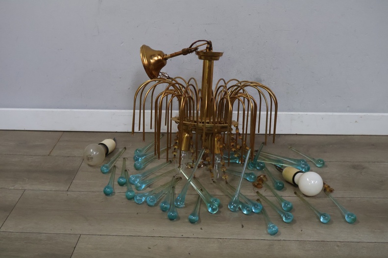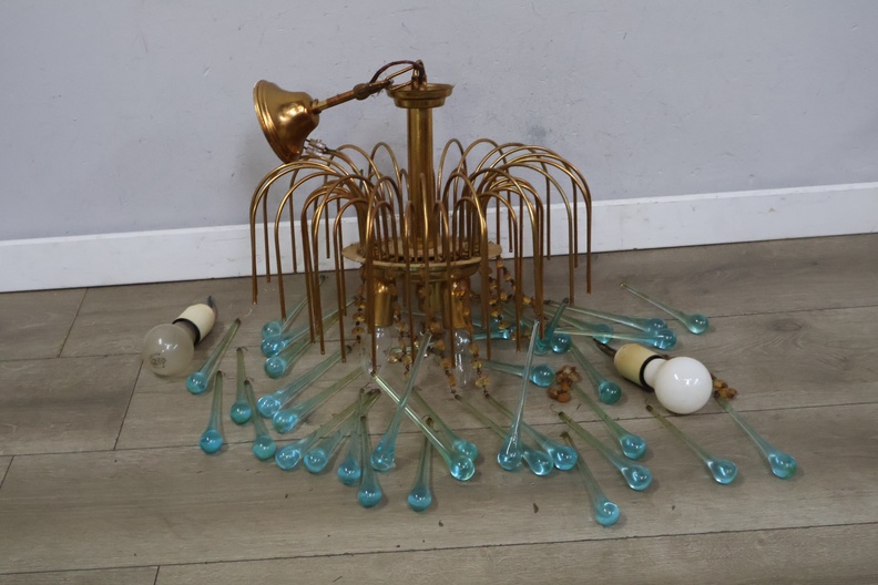 Glazen Lamp met Turquoise Glazen Ornamenten