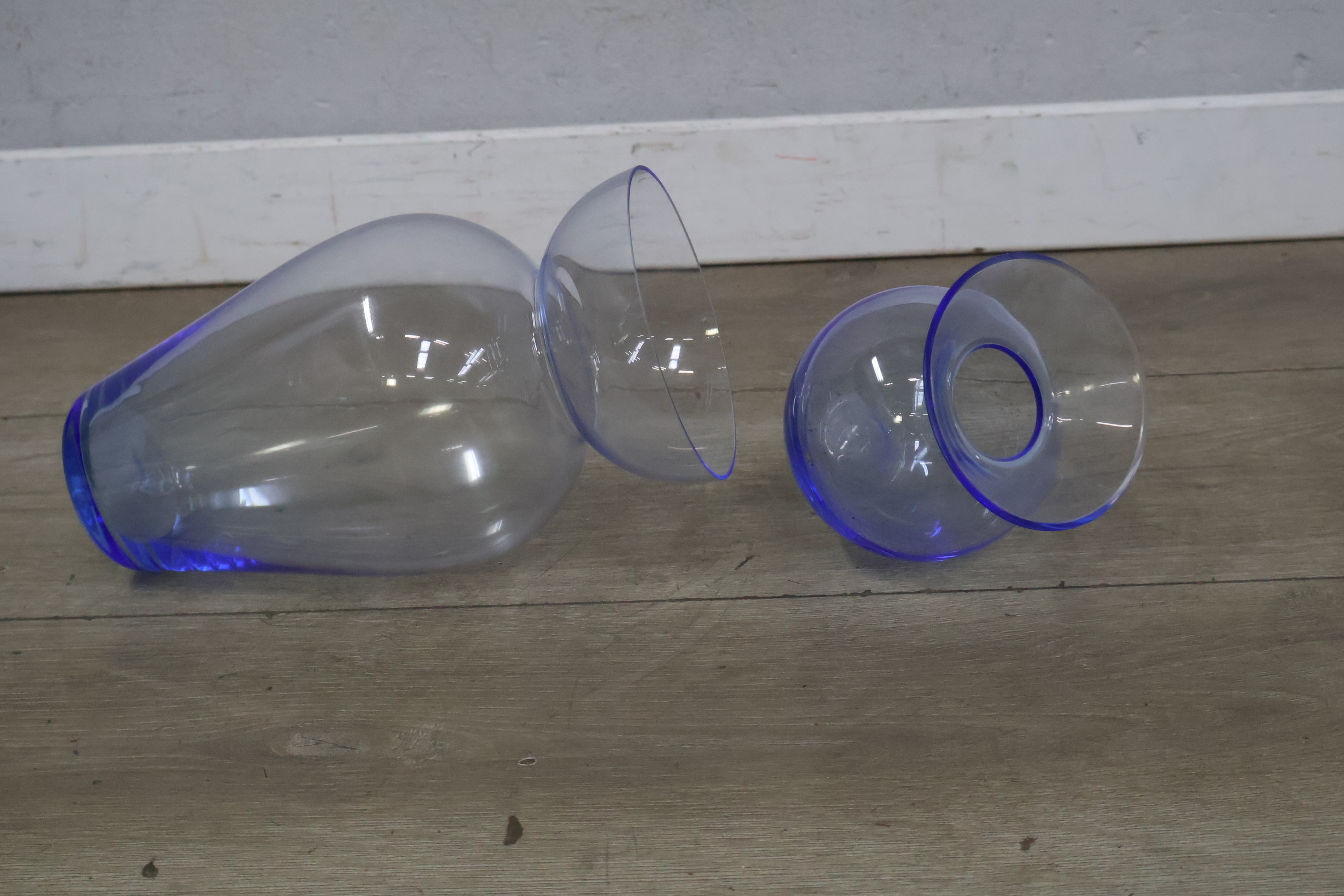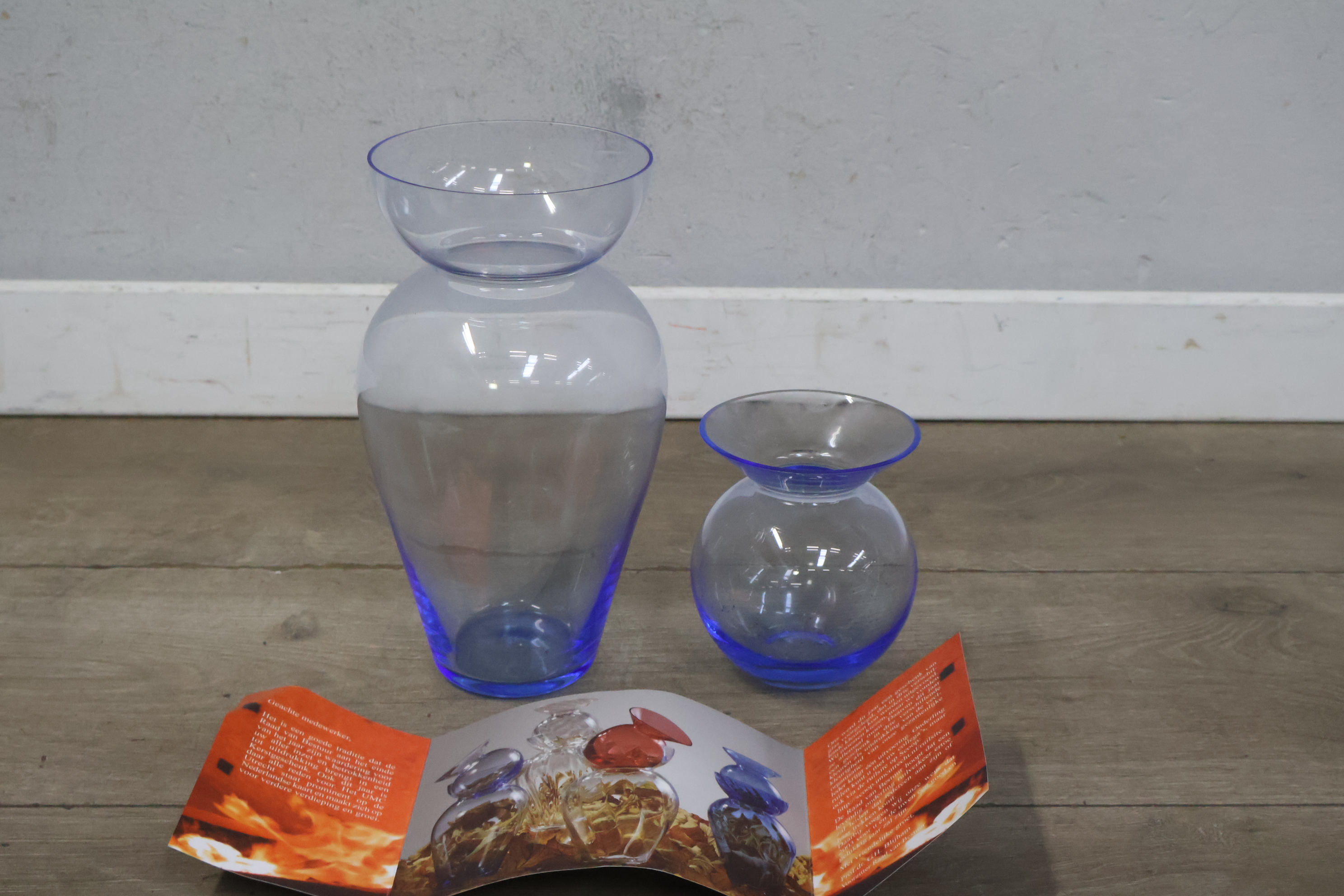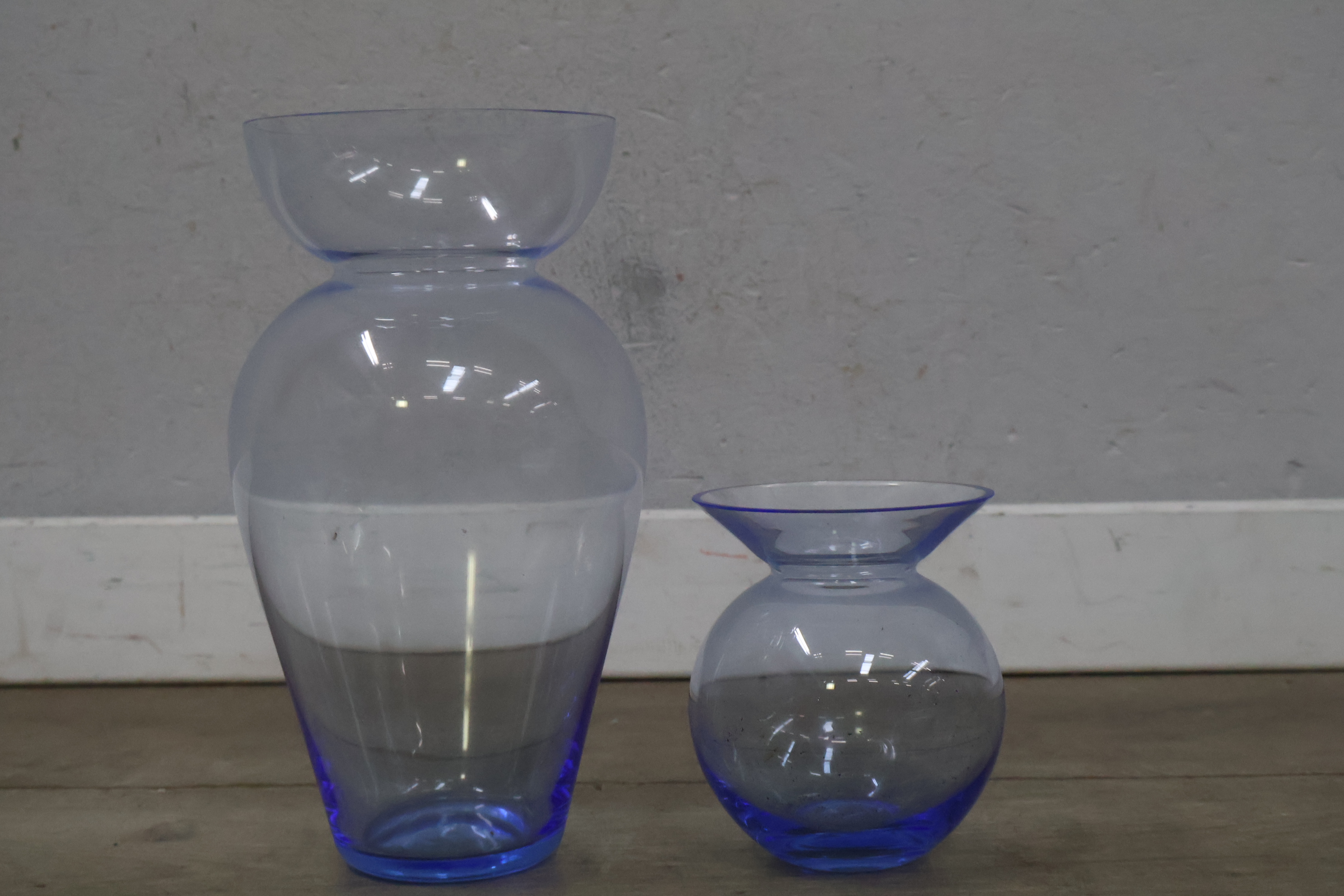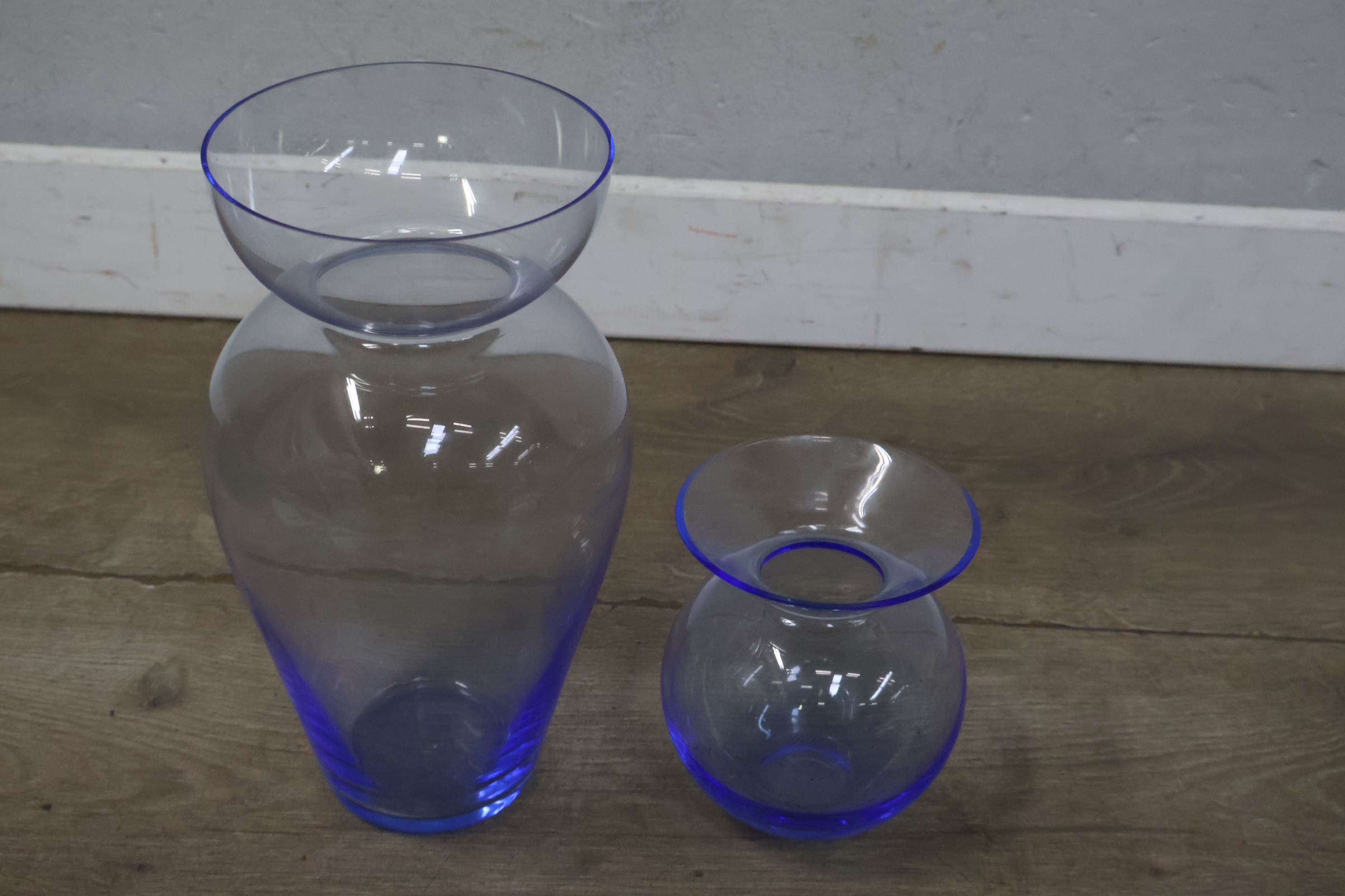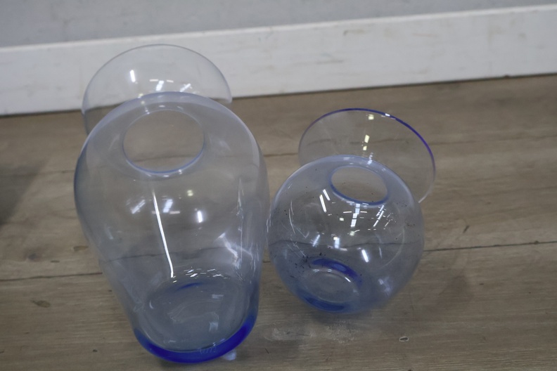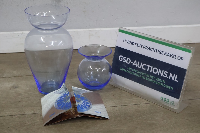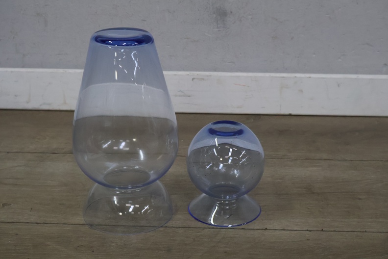 Set van 2 Blauw-Glazen Vazen