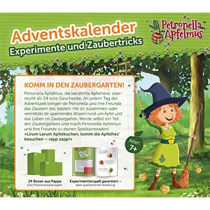 Petronella Apfelmus, die berühmte Apfelhexe, überreicht dir 24 tolle Geschenke. An jedem Tag der Adventszeit bringen dir Petronella und ihre Freunde das Zaubern bei, basteln mit dir zusammen oder vermitteln dir spannendes Wissen rund um Äpfel und das Leben im Zaubergarten. Werde selbst ein Teil des Zaubergartens und mach Petronella Apfelmus und ihre Freunde zu deinen Spielkameraden!
