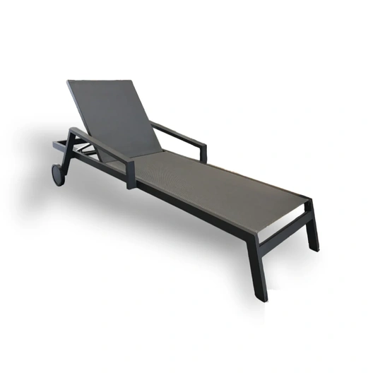 Ligbed van aluminium en hierdoor licht in gewicht en onderhoudsvriendelijk. Het liggedeelte is gemaakt van een textileen doek dat niet of nauwelijks vocht en vuiligheid opneemt. Hierdoor is kan dit ligbed met gemak buiten blijven staan en is het na een regenbui, toch nagenoeg direct klaar voor gebruik. De meegeleverde wielen aan de zijkant van het ligbed zorgen ervoor dat het bed eenvoudig te verplaatsen is.
