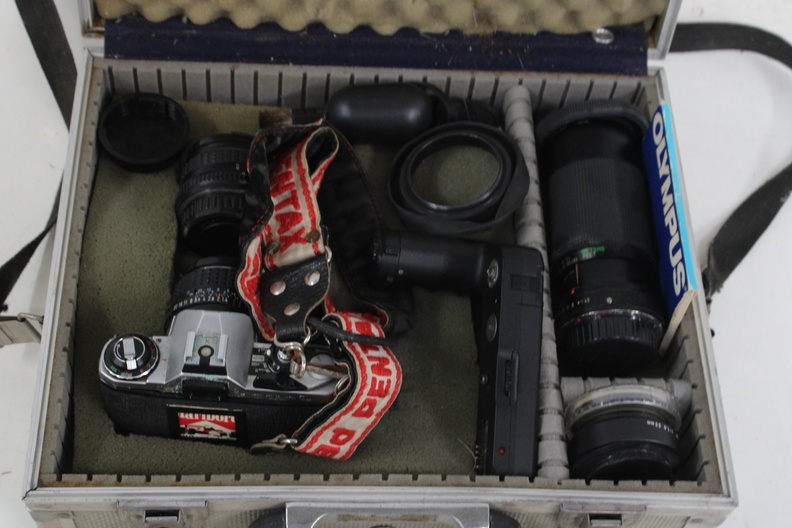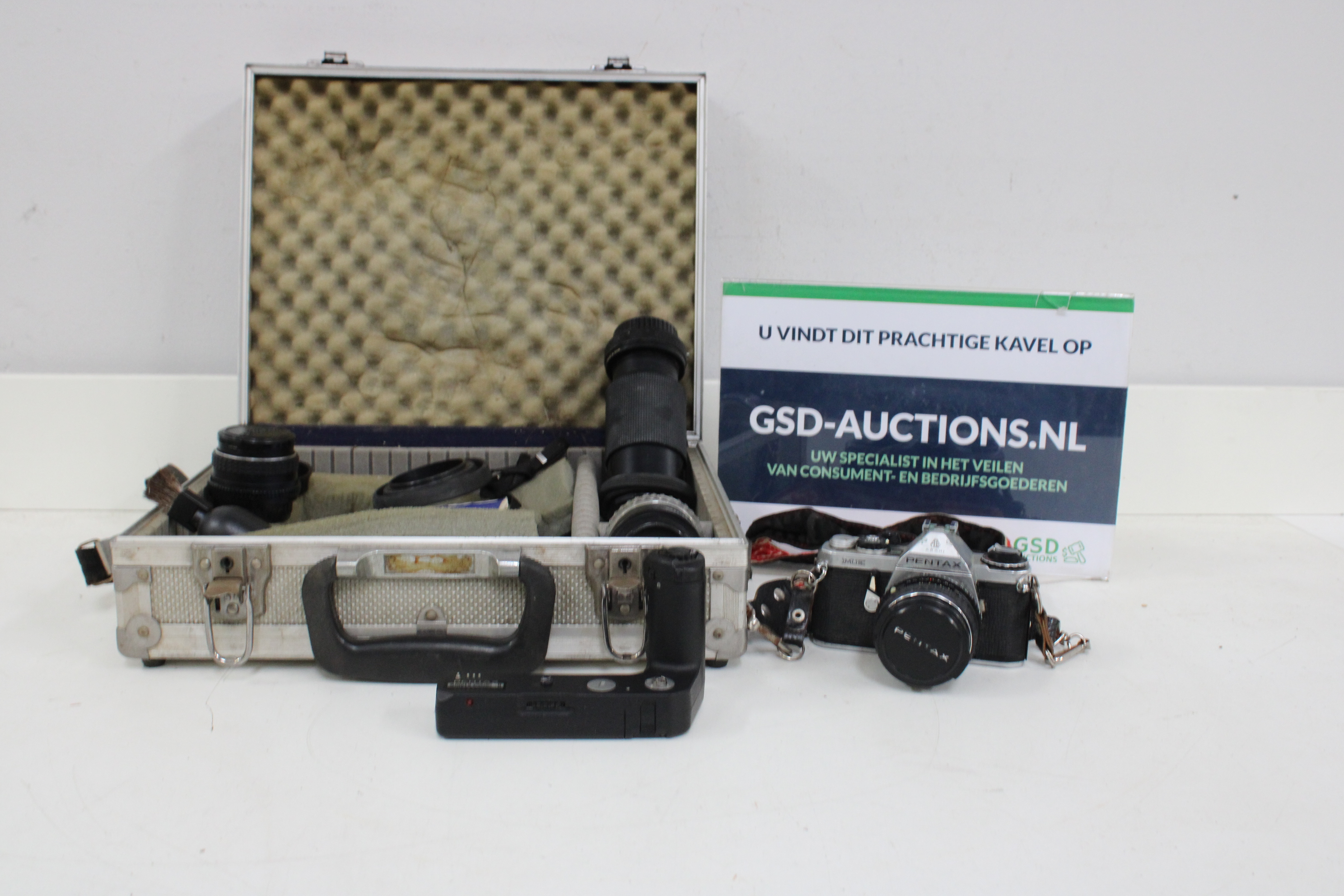 Vintage Pentax Fotocamera met Draagkoffer en Accessoires