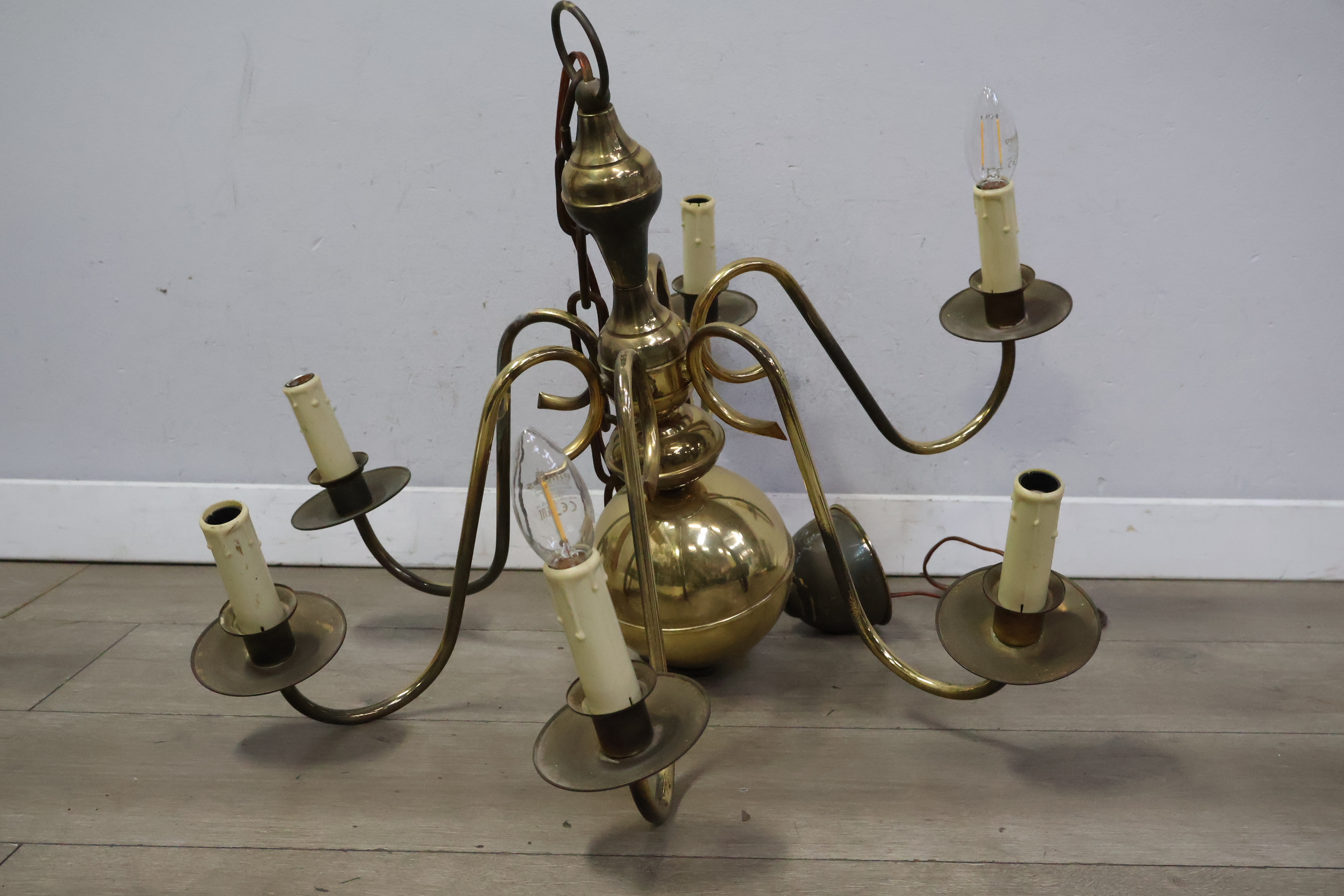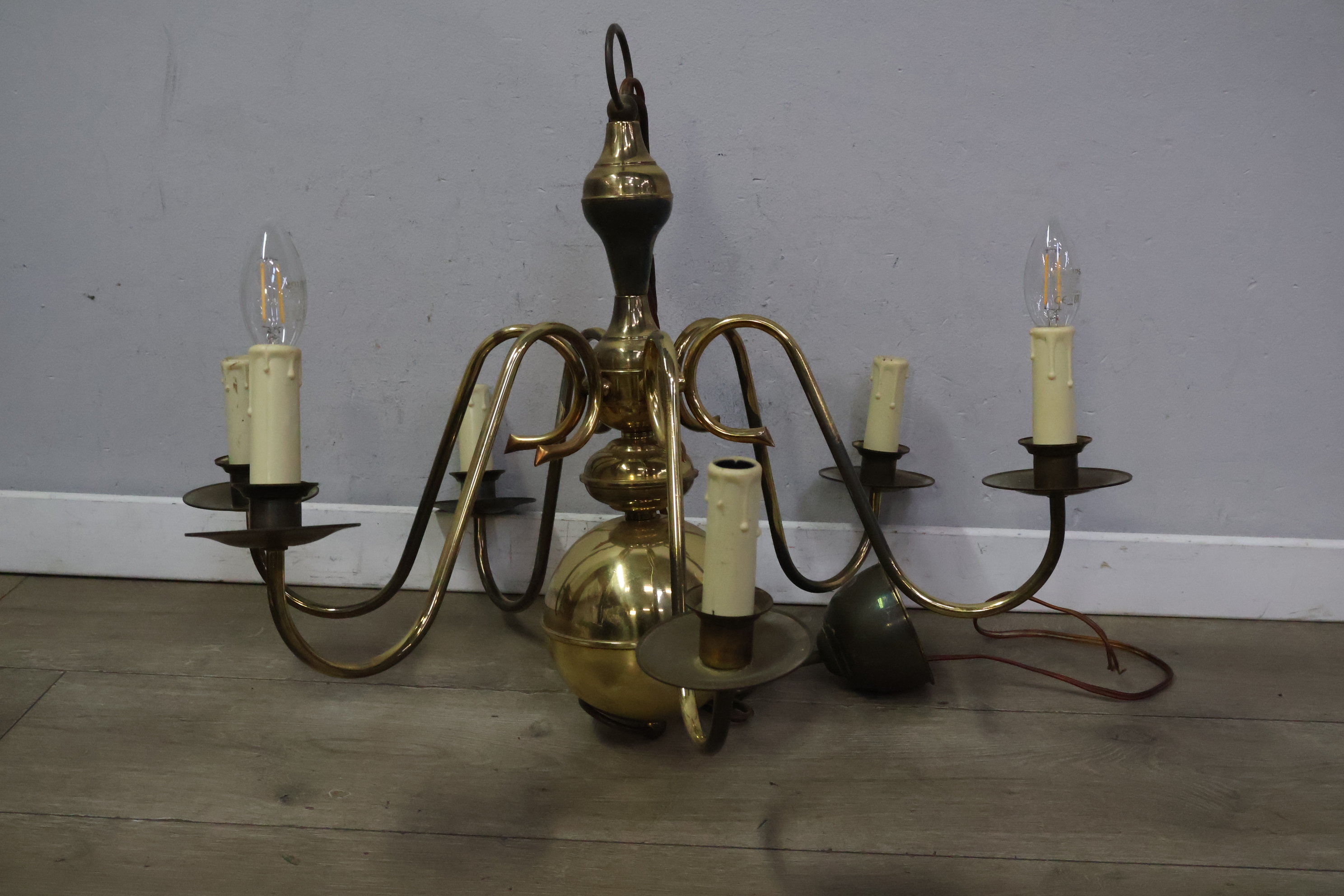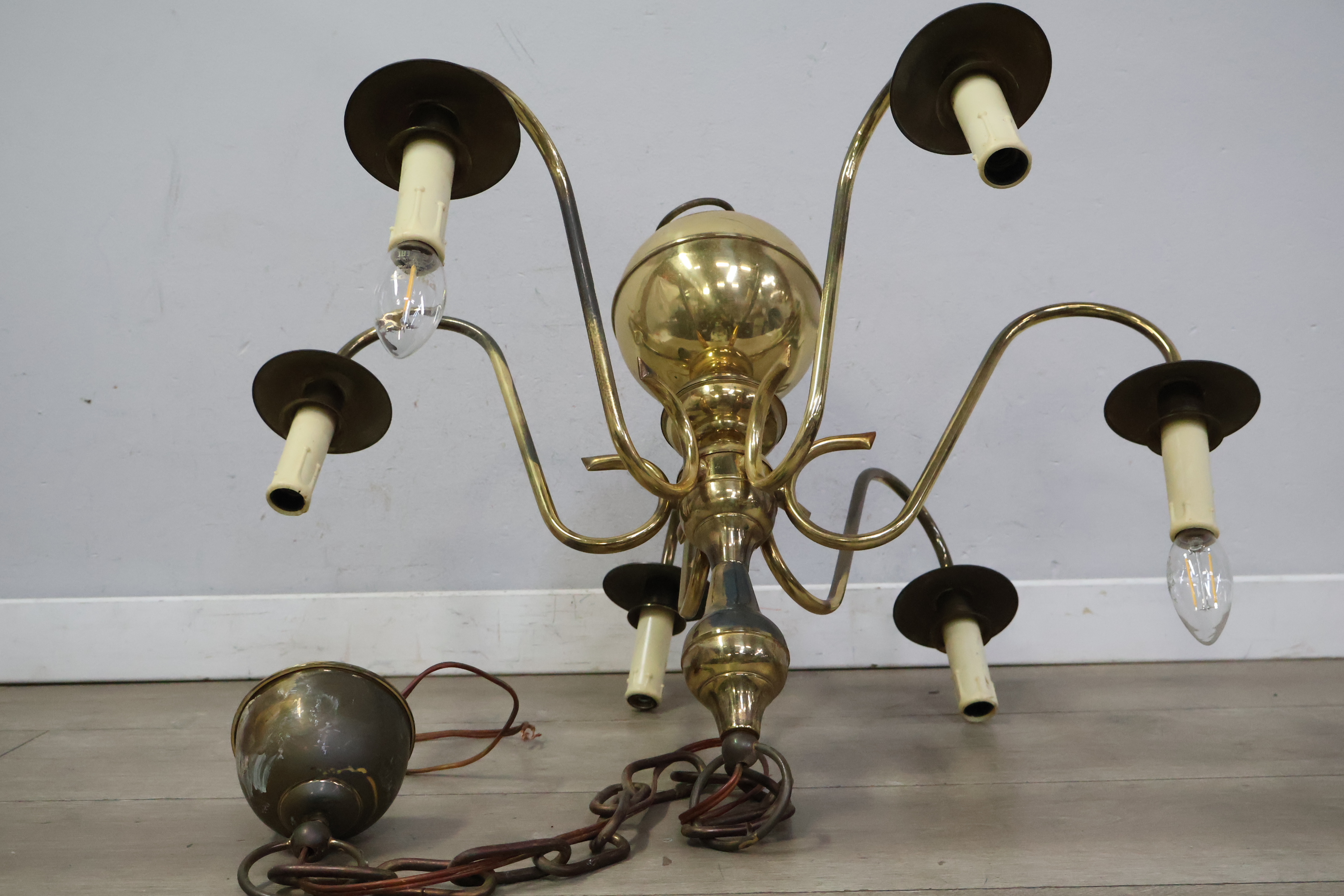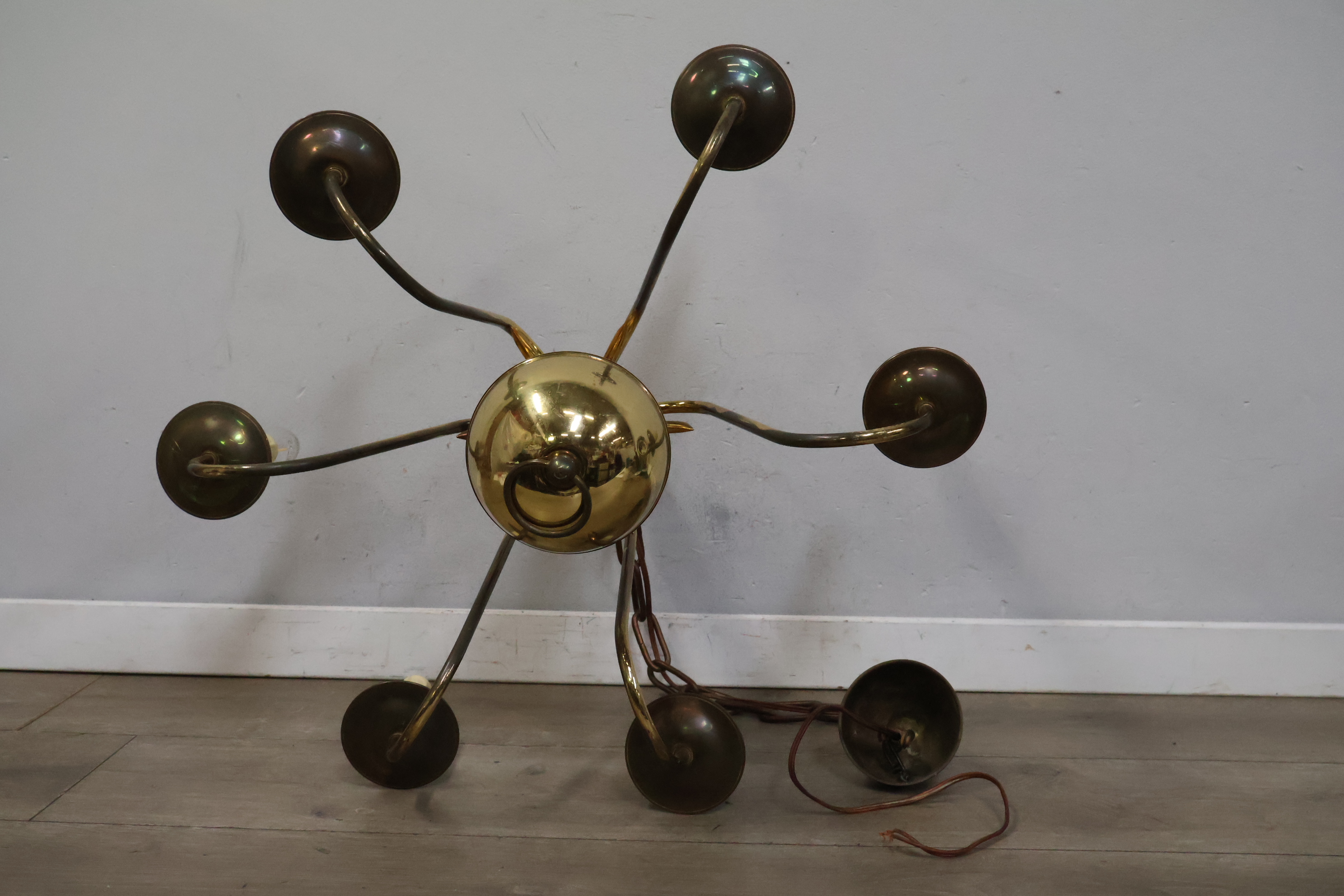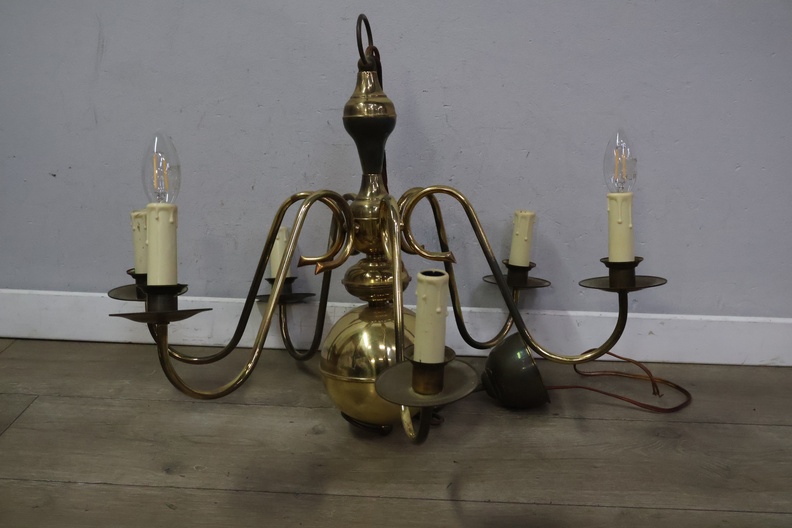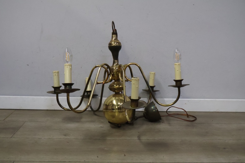 Vintage 6 armige messing kroonluchter